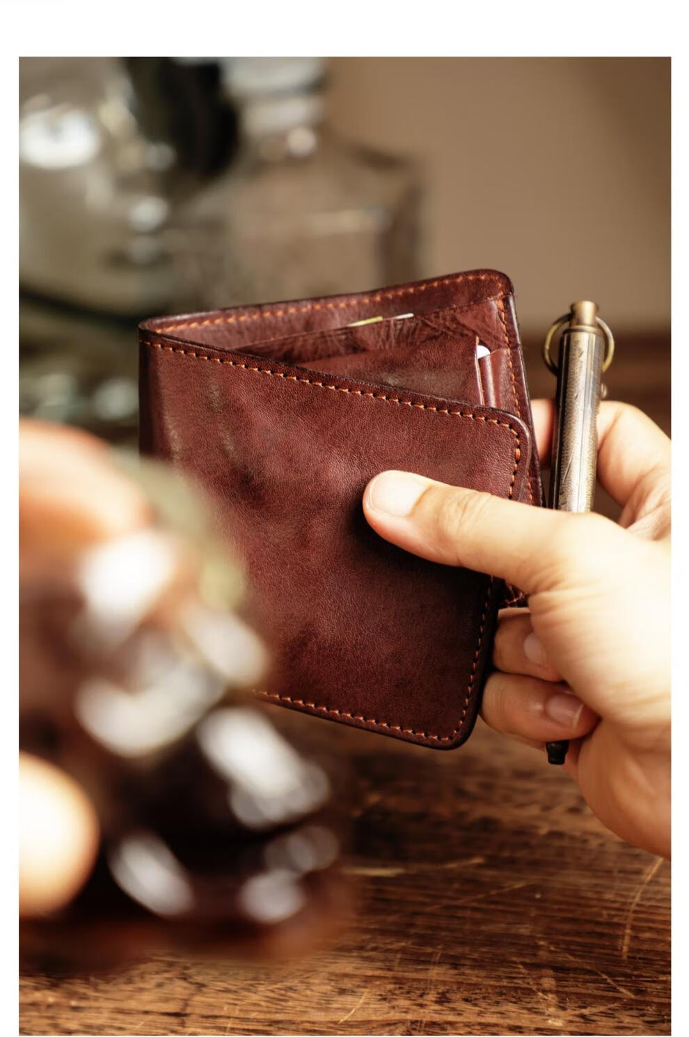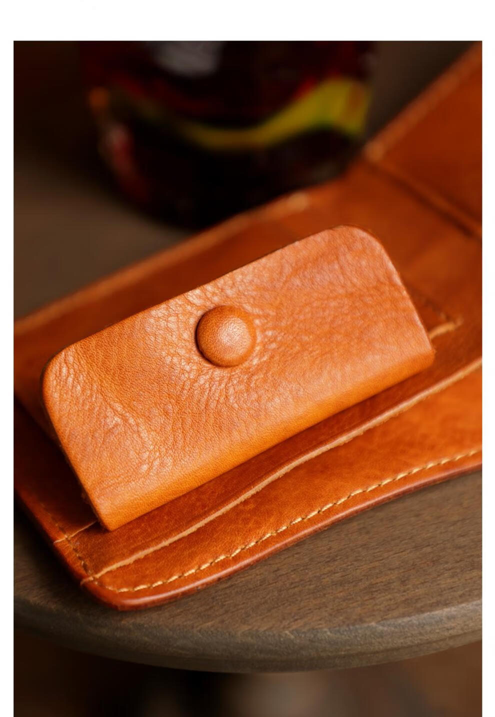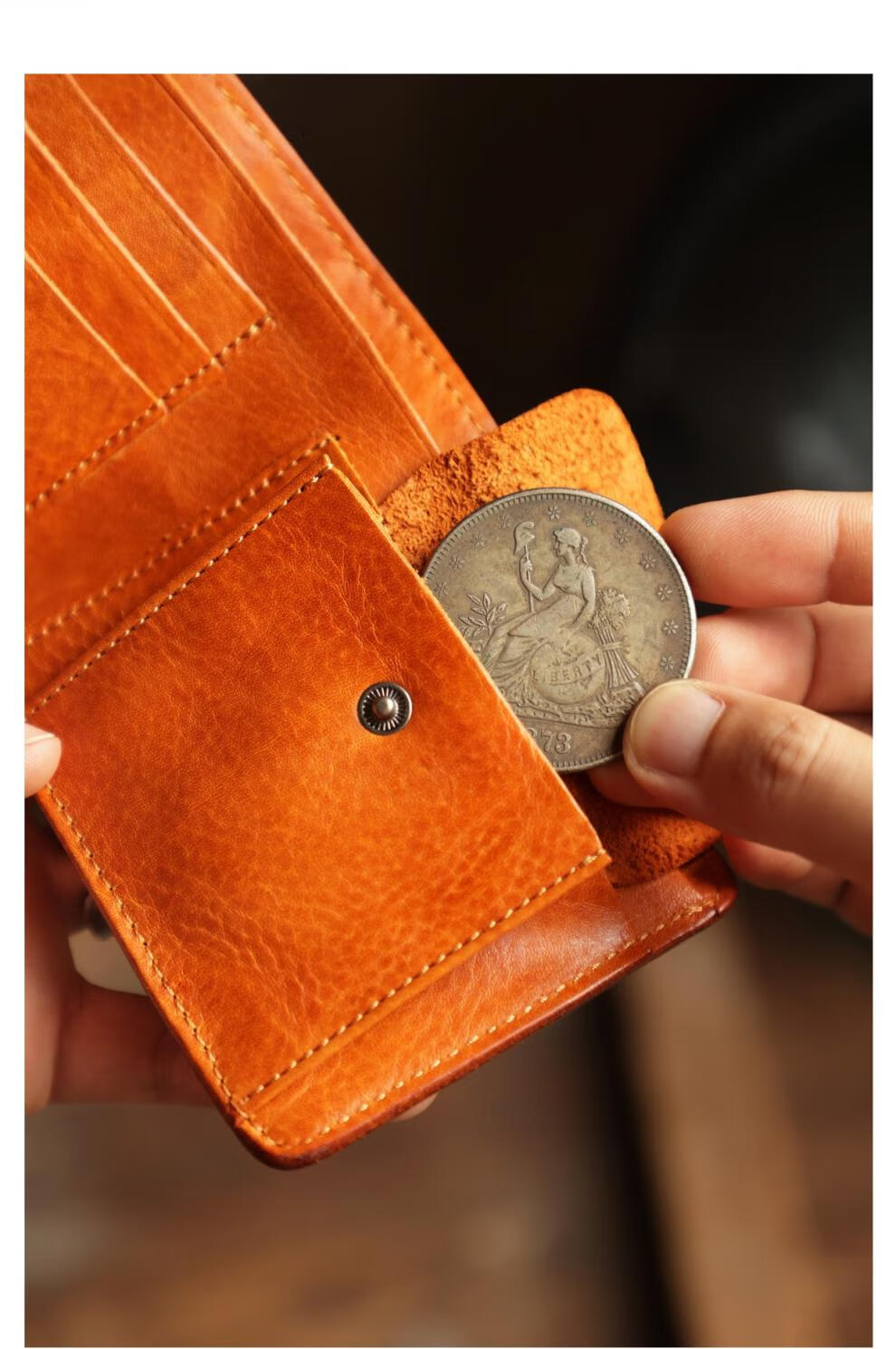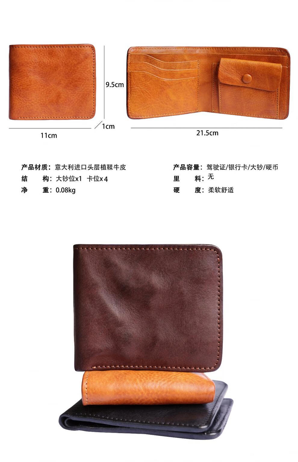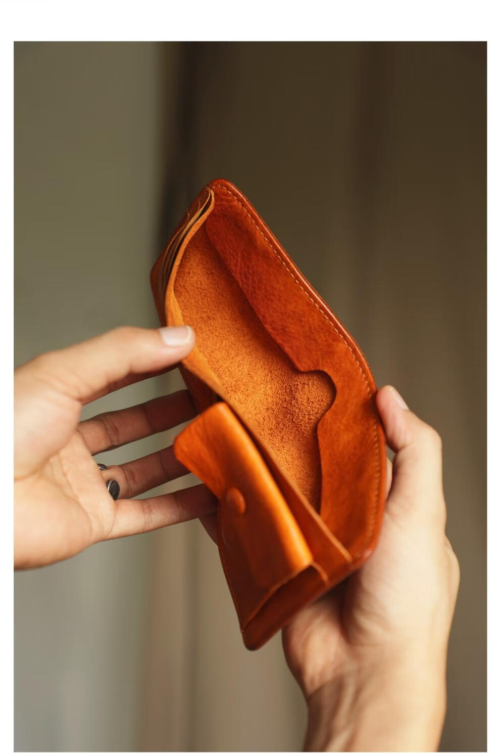 LISM international first-line brand washed top layer super soft cowhide handmade short retro wallet wallet card bag for men and women sunset yellow