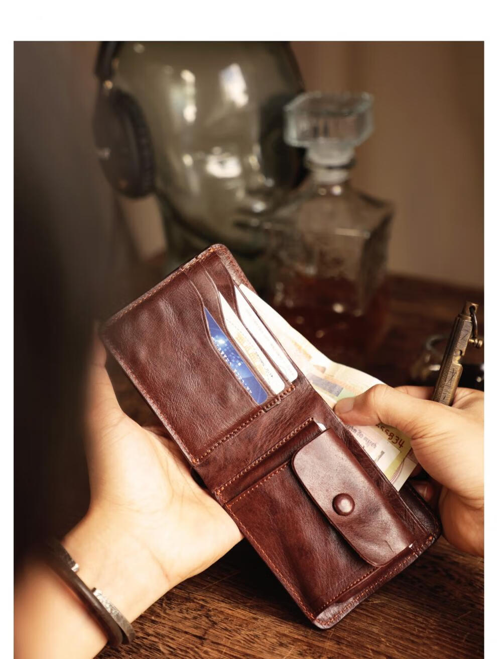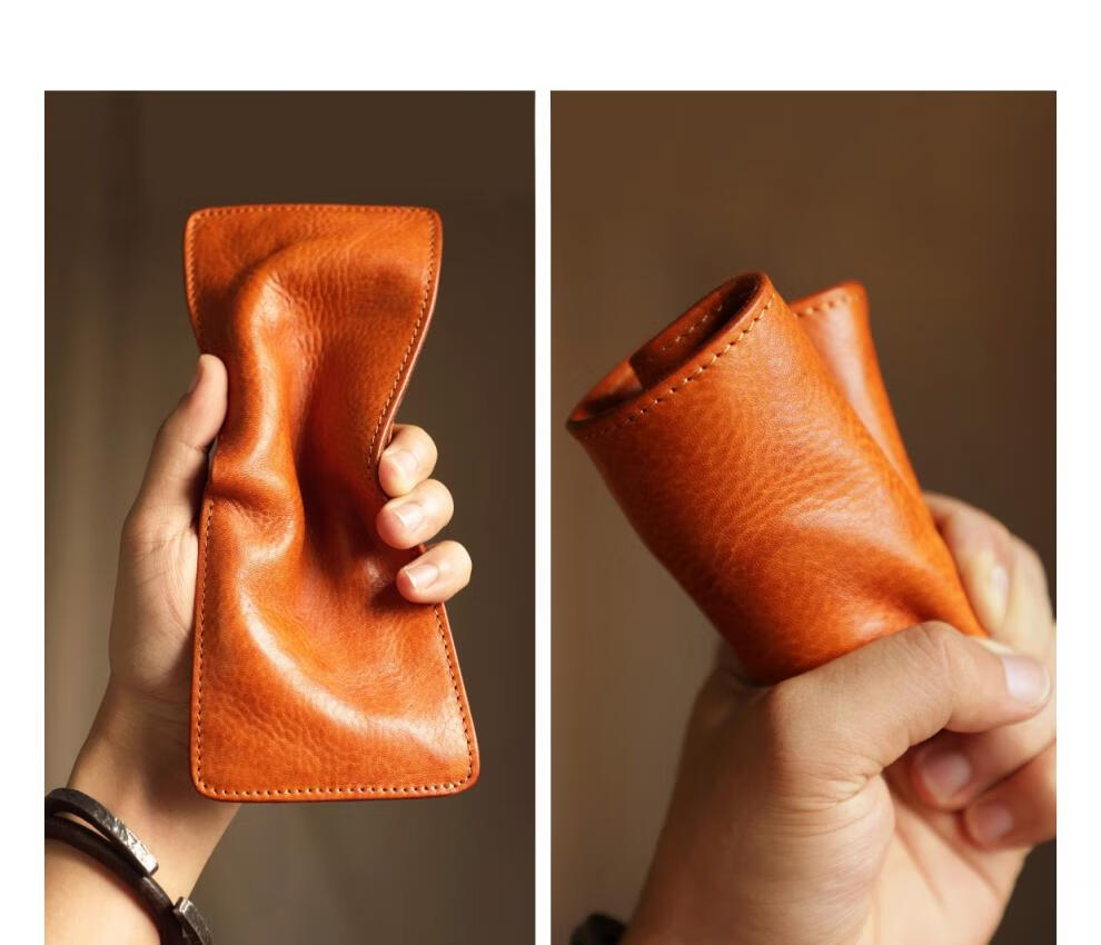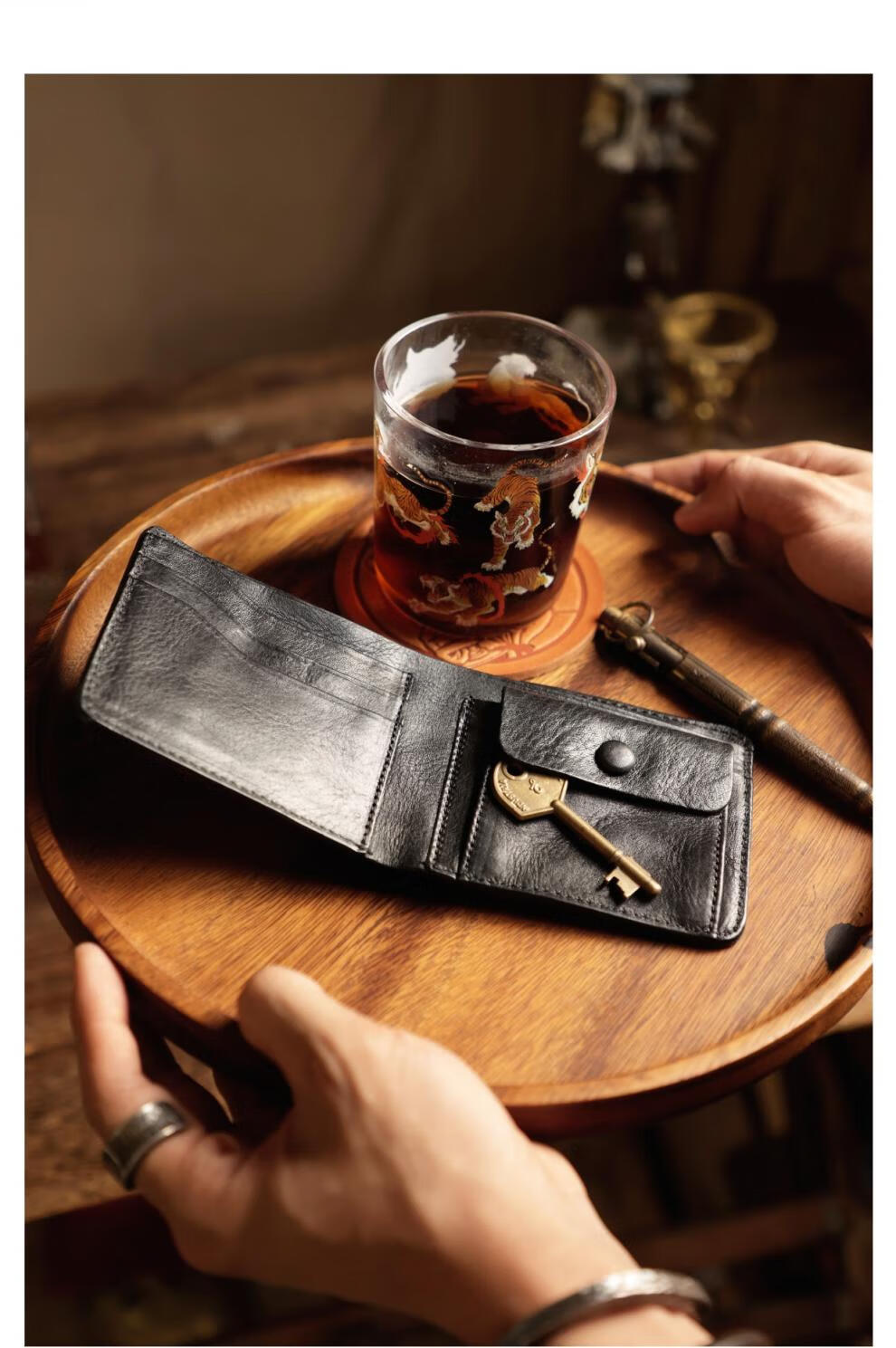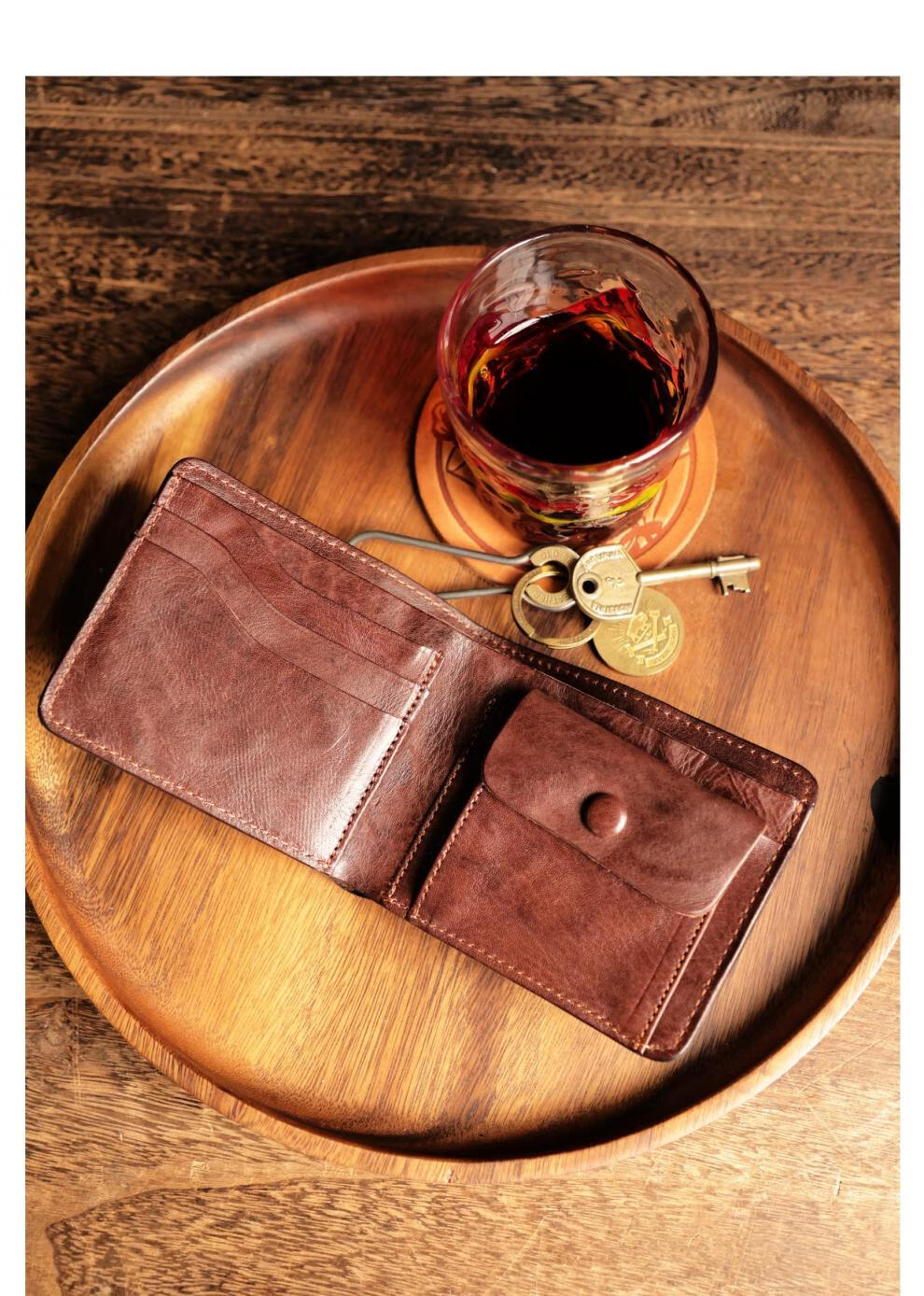 LISM international first-line brand washed top layer super soft cowhide handmade short retro wallet wallet card bag for men and women sunset yellow