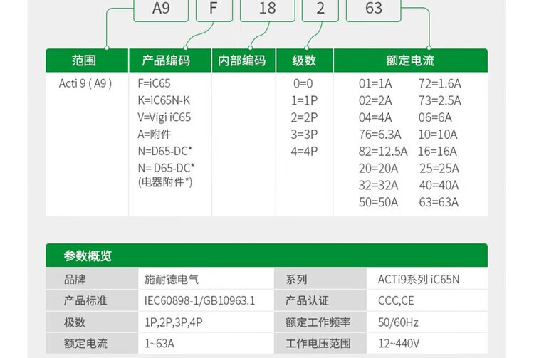 Schneider Electric iC65 miniature circuit breaker 1-4P D1-63A 230/400VAC 6kA circuit breaker batch