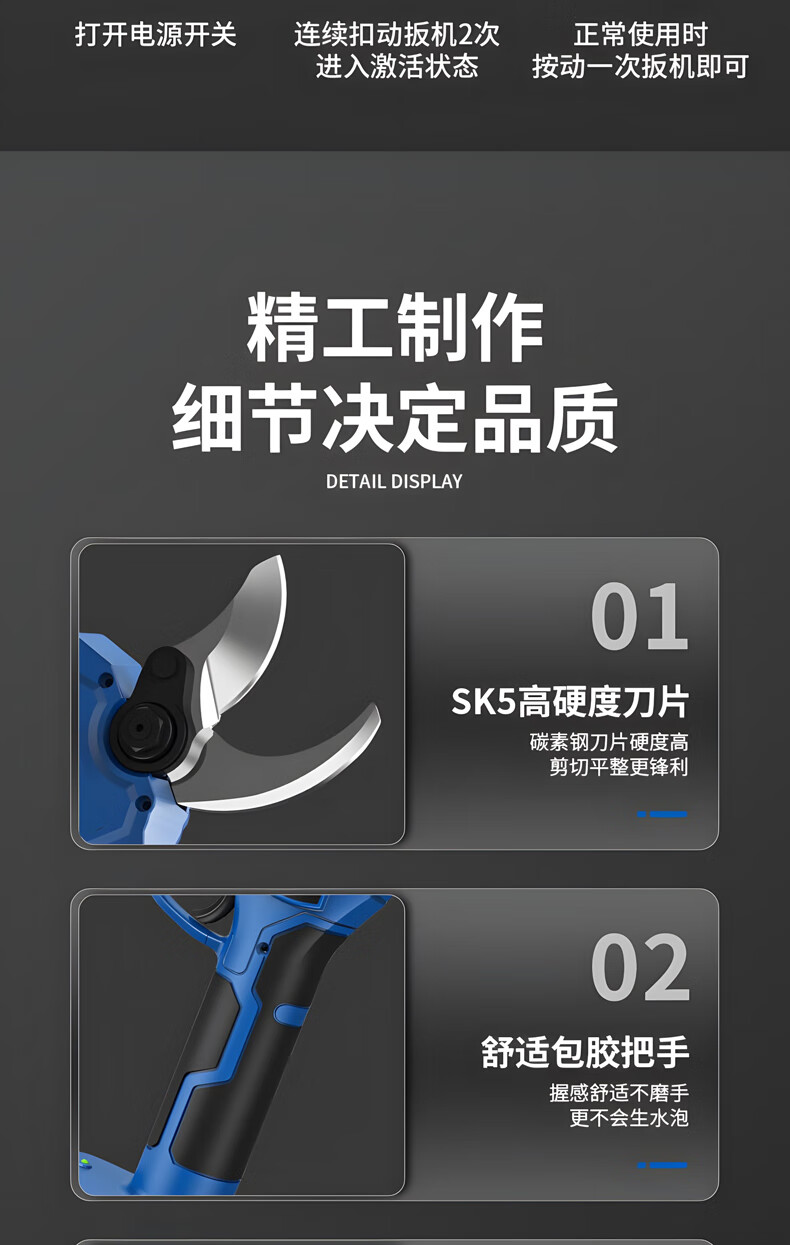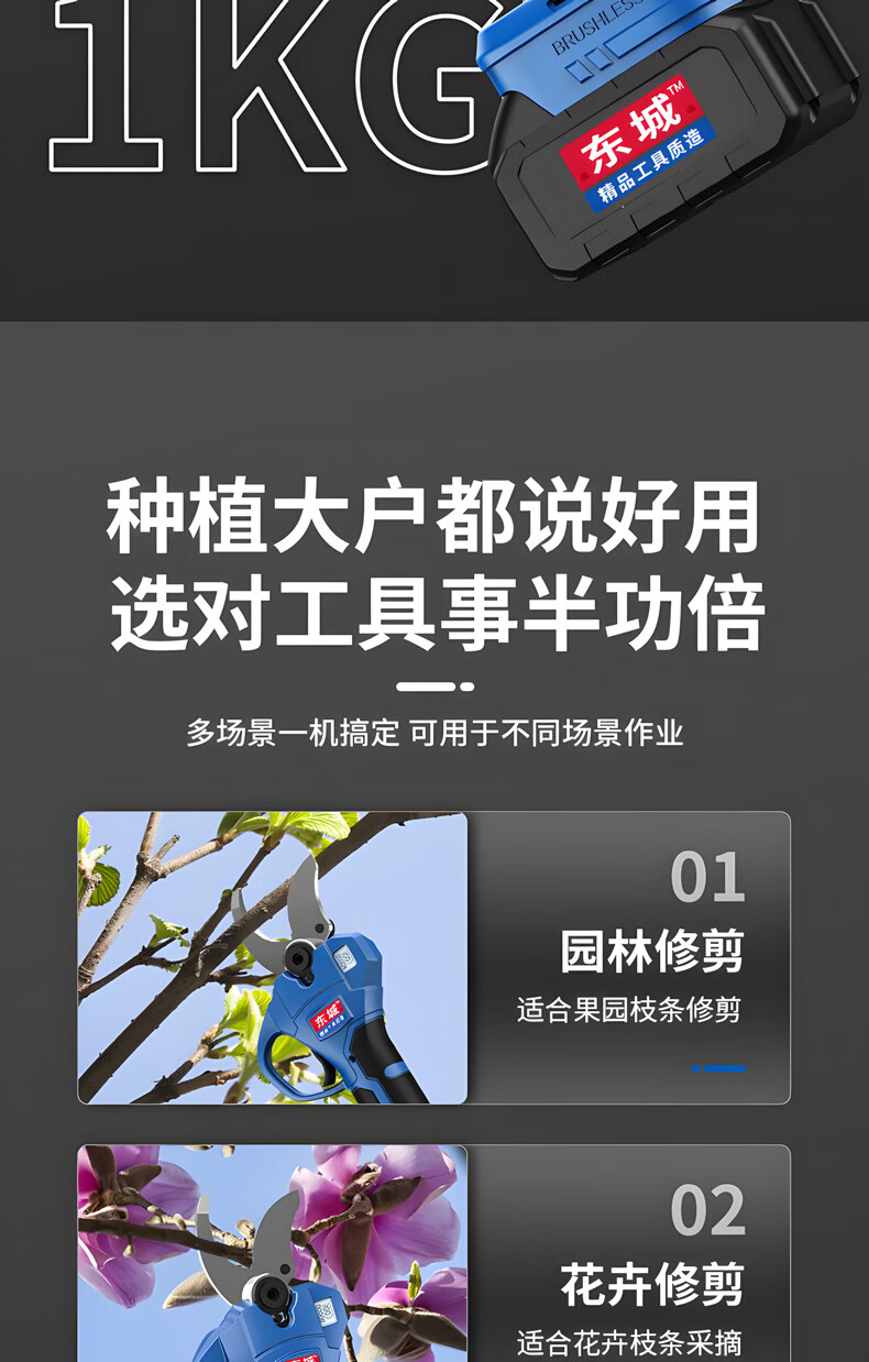 Yuanzu electric scissors, Dongcheng style electric scissors, powerful garden fruit tree pruning shears, tree lithium battery pruning branch electric shears, dual batteries 6.5 cm, free luxury plastic box gift bag
