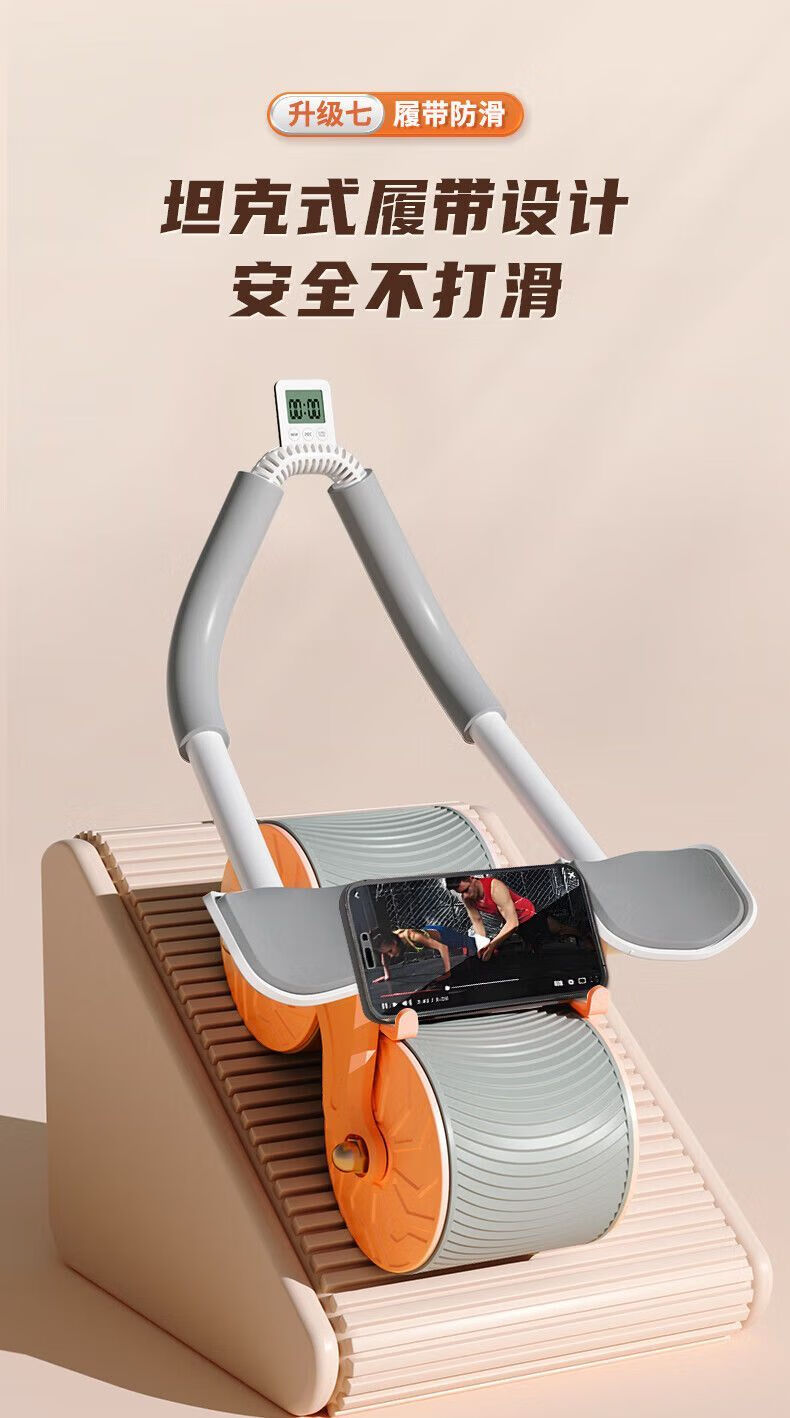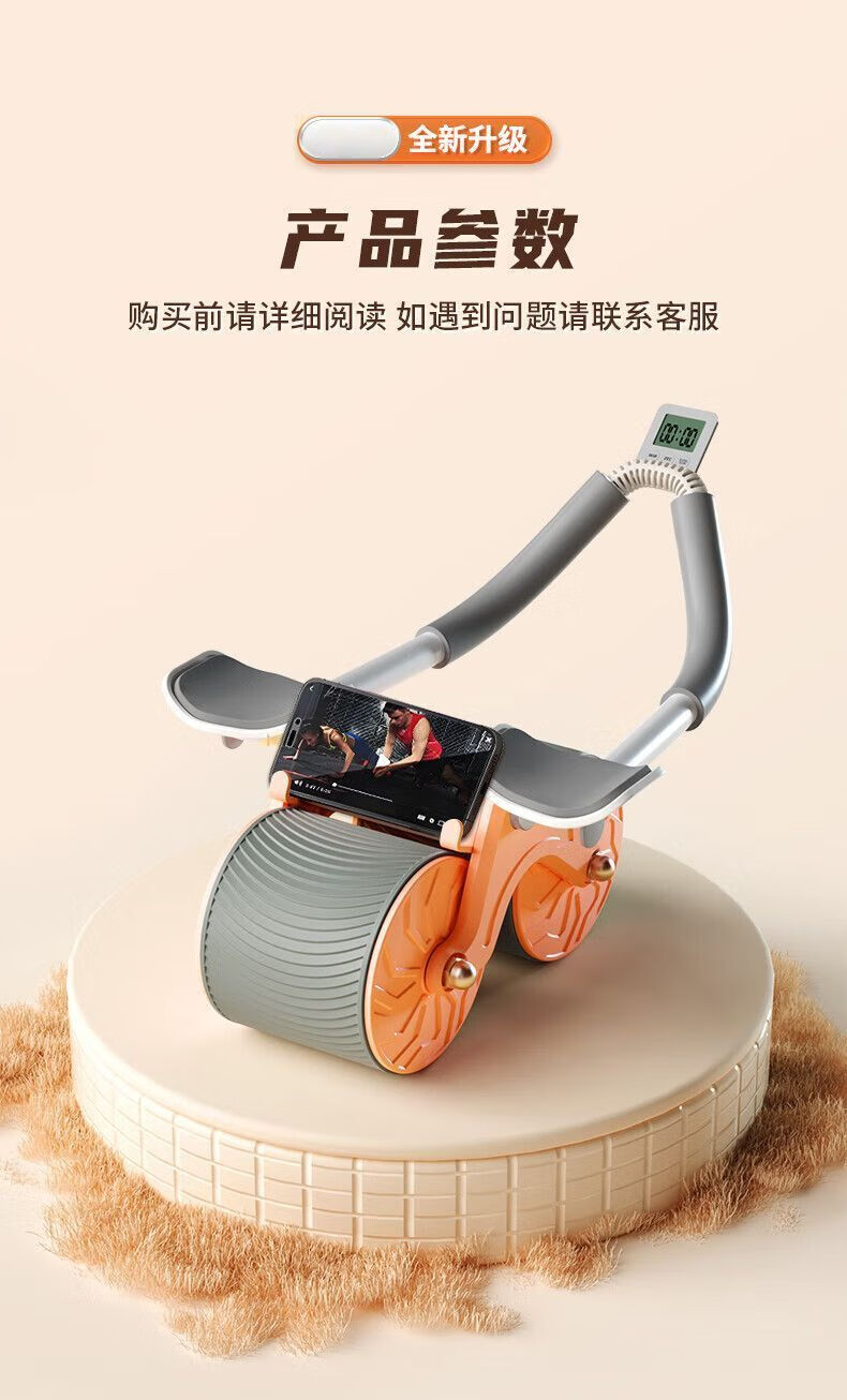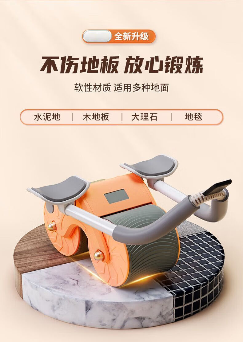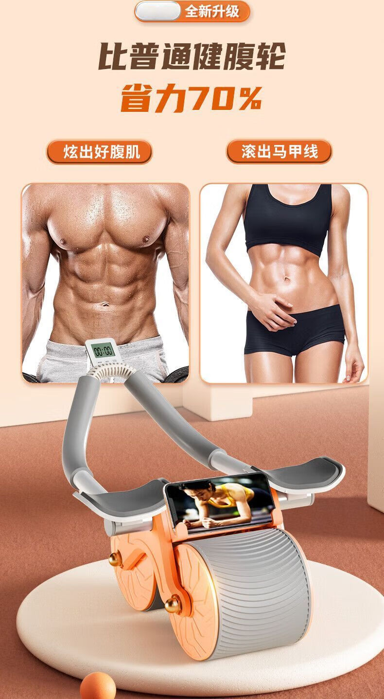 Abdominal wheel, automatic rebound, countable, unisex, abdominal curling, fitness equipment, home abdominal muscle training tool, blue and black elbow support + automatic rebound + smart timing + kneeling pad