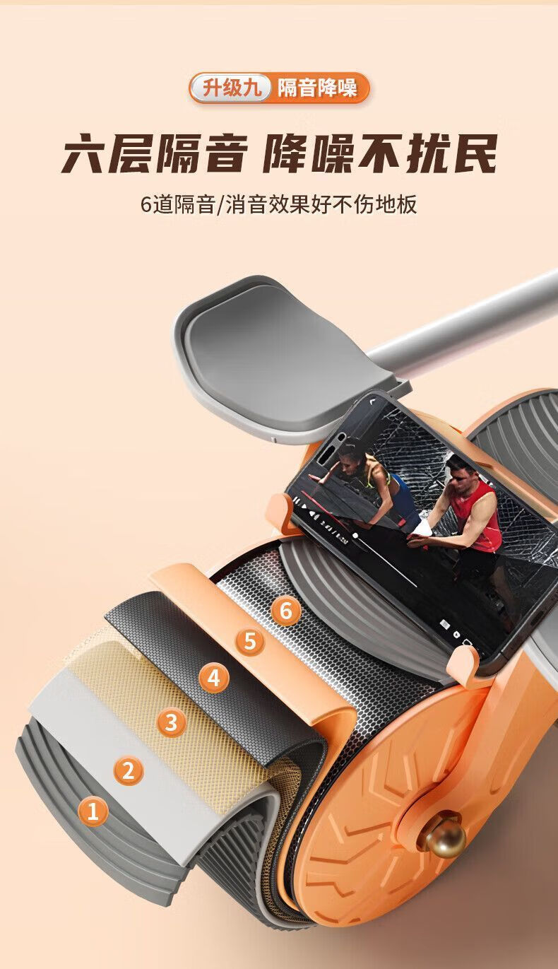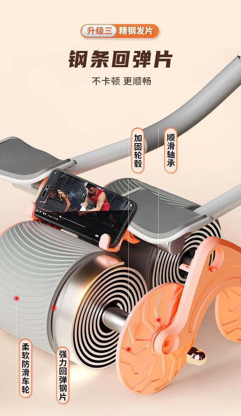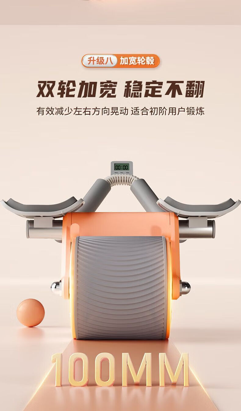 Abdominal wheel, automatic rebound, countable, unisex, abdominal curling, fitness equipment, home abdominal muscle training tool, blue and black elbow support + automatic rebound + smart timing + kneeling pad
