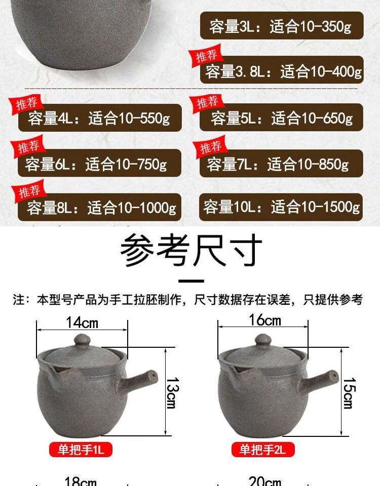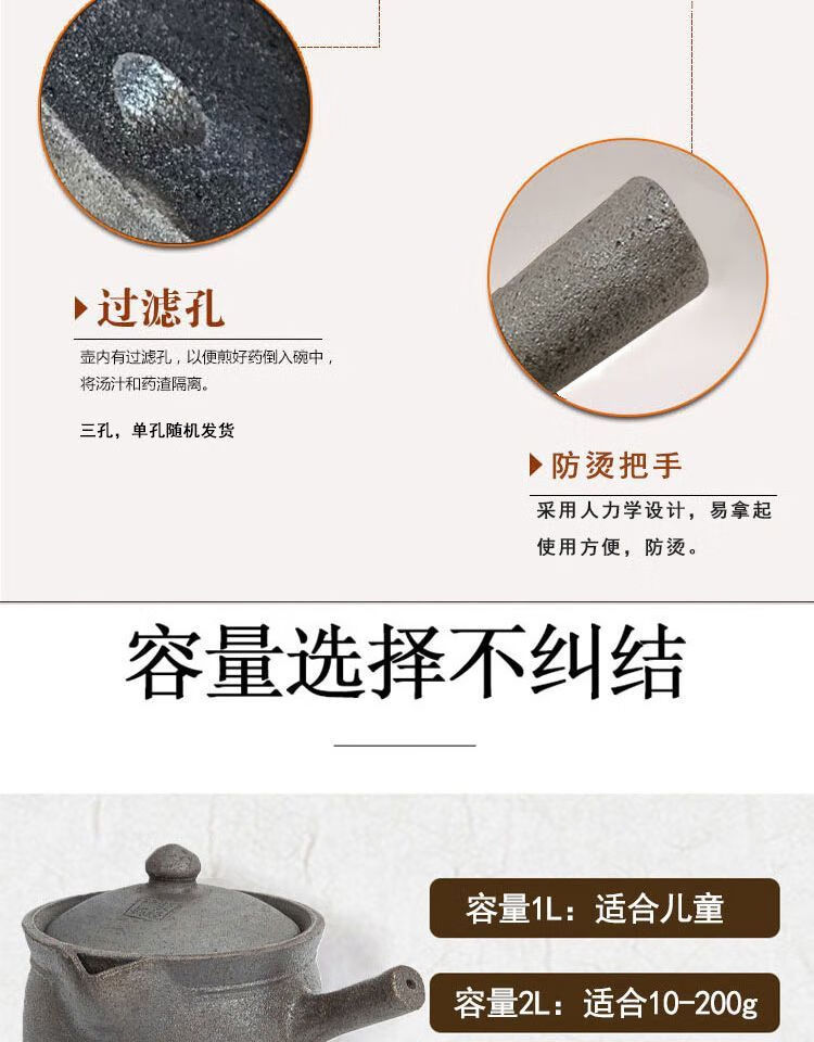 Yingjing decocting medicine casserole boiling traditional Chinese medicine medicine jar decoction medicine pot boiling medicine household stew old-fashioned medicine pot WZY 1L single handle pot - suitable for babies 2L