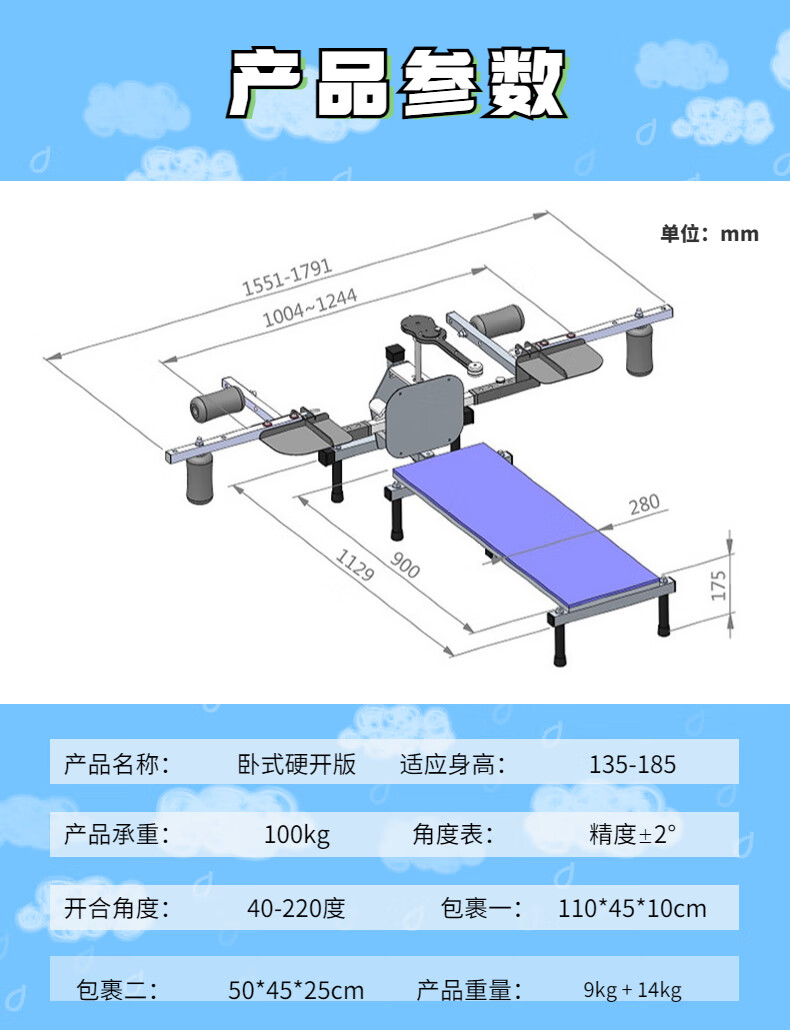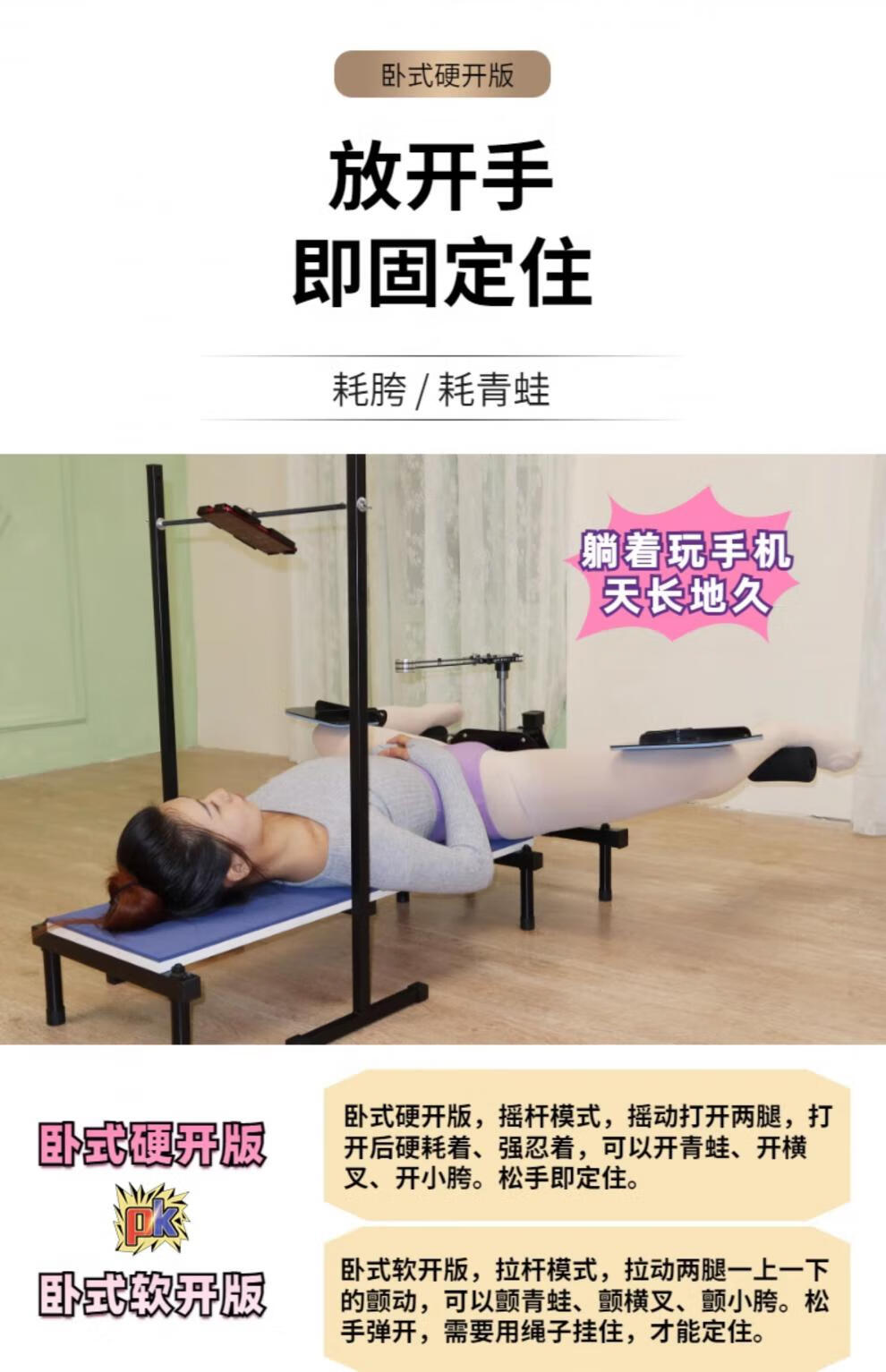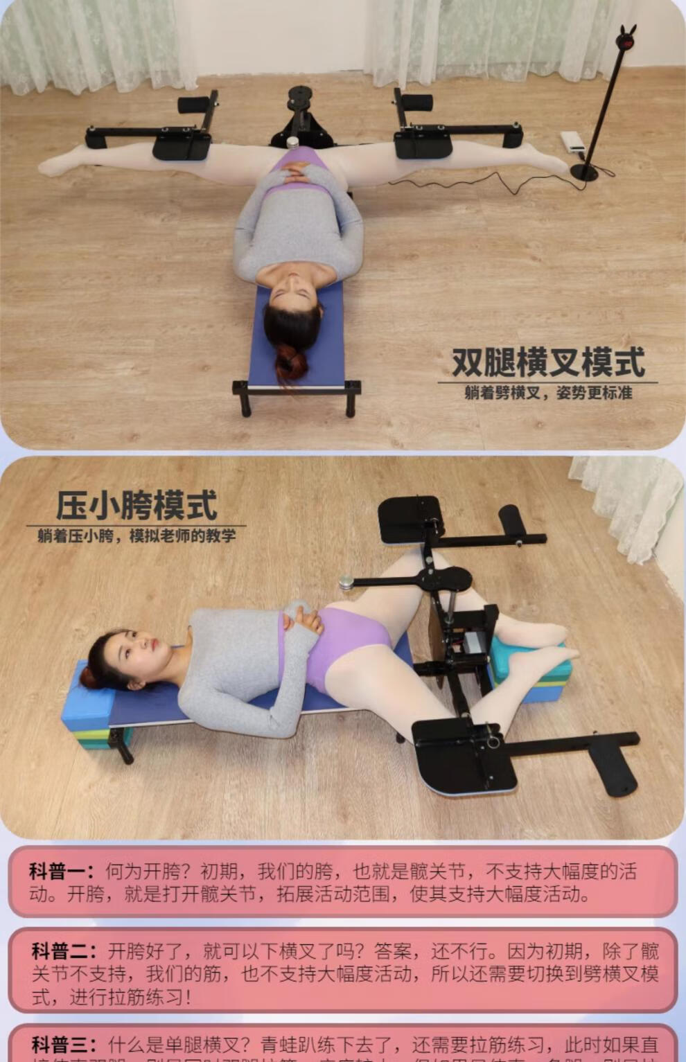 Split horse trainer, dance yoga, leg ligament compression, stretching, hip opening, frog lying equipment (ordinary person 1.35-1.8)