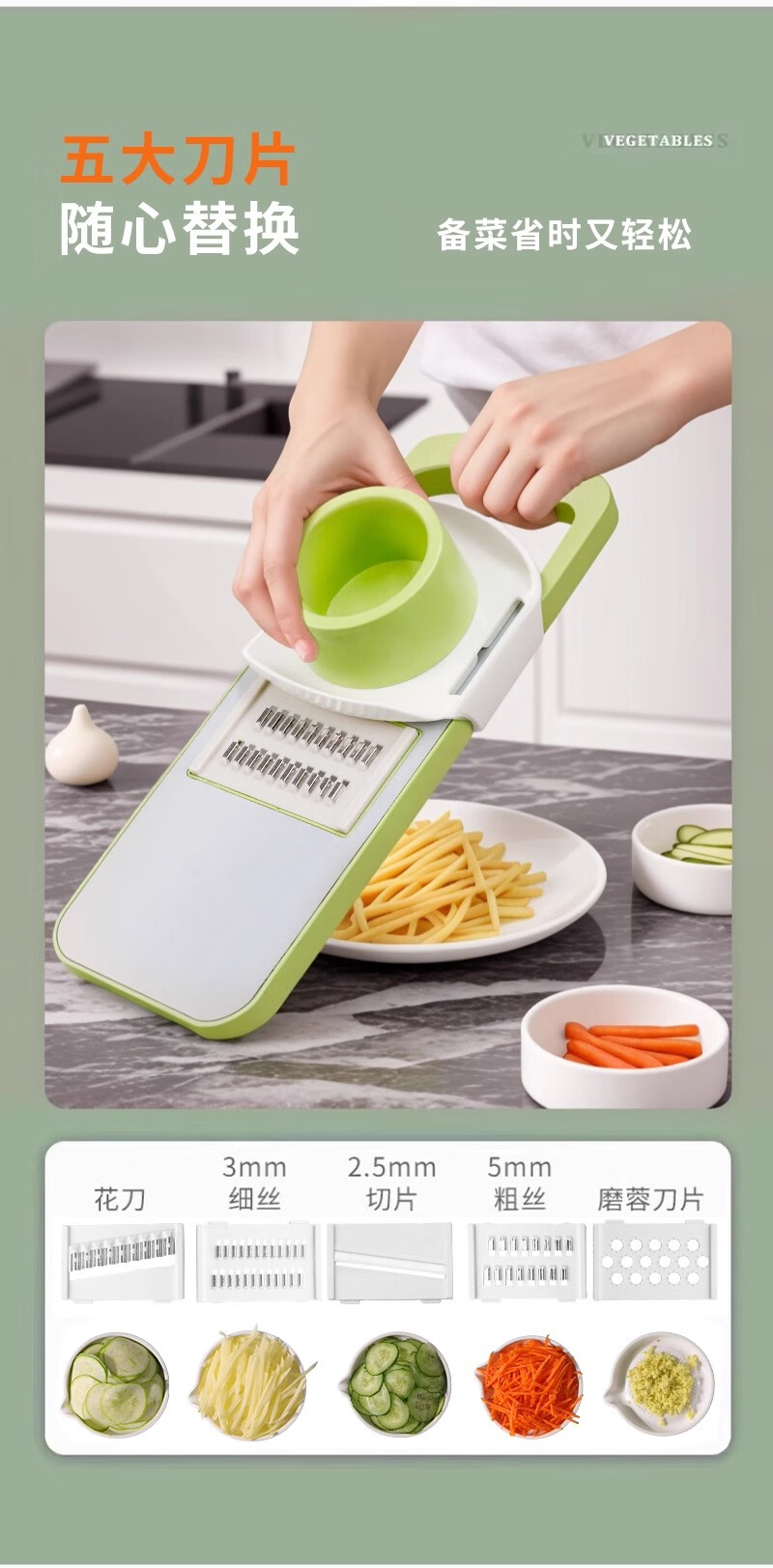 Qi Yue Mango Potato Shreds Artifact Household Multifunctional Vegetable Cutter Fresh Green 3 Pack