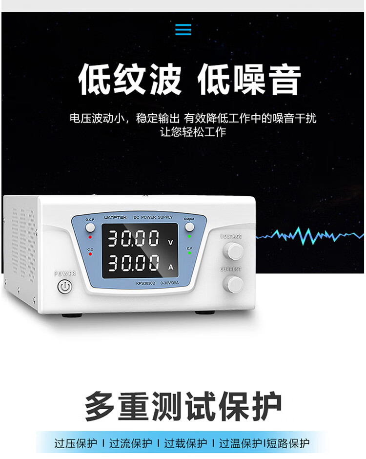 Wanptek solid test high-power adjustable DC regulated power supply 0-300V100V60V20A30A50A electroplating aging program control KPS6050D (60V50A)