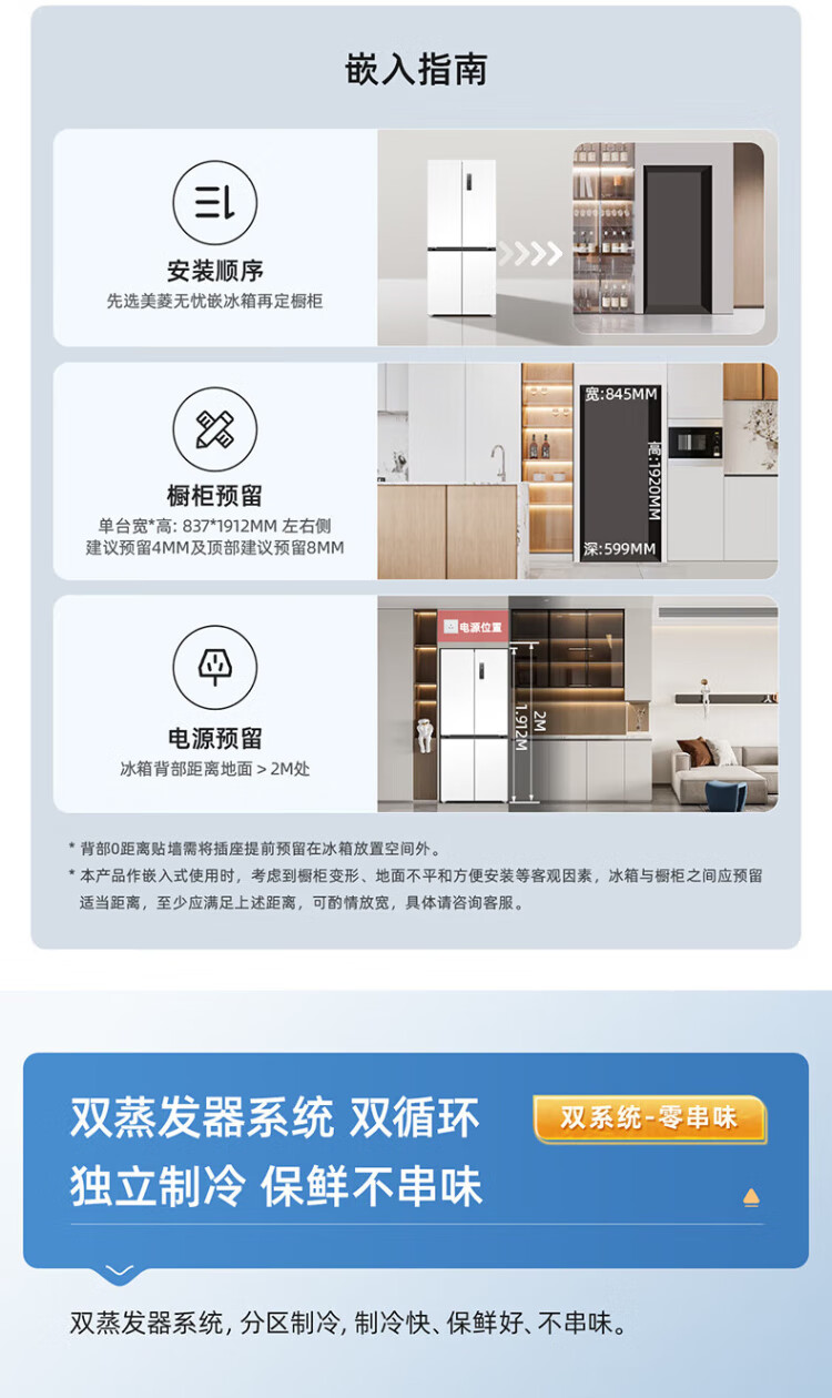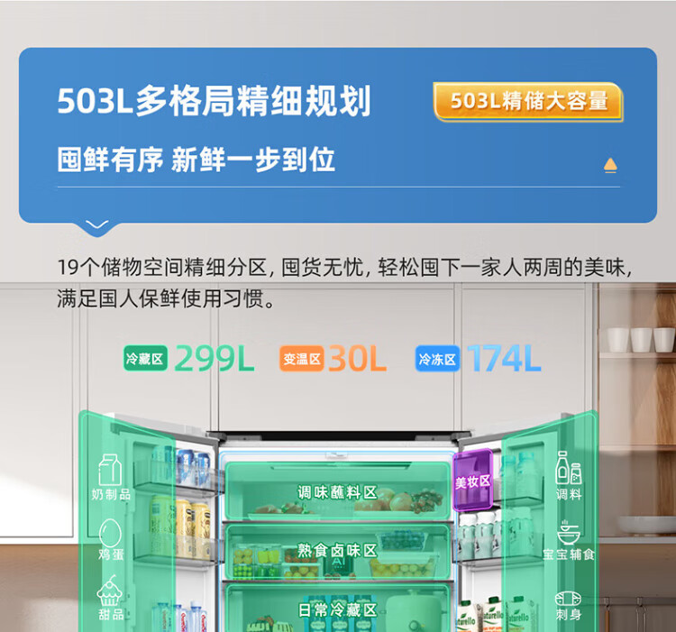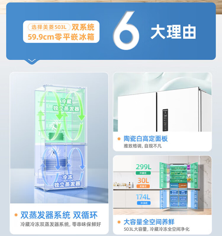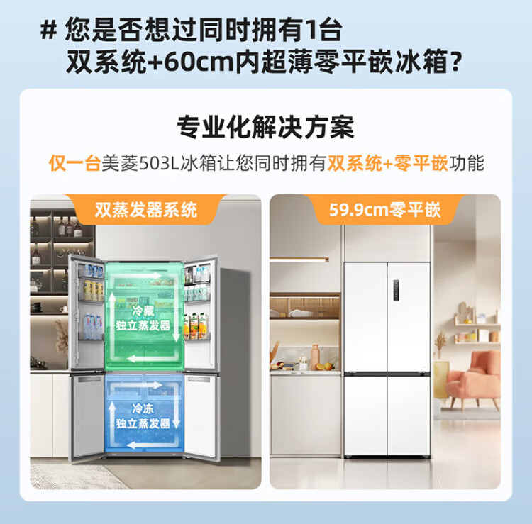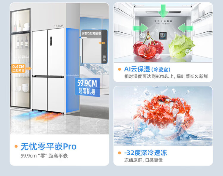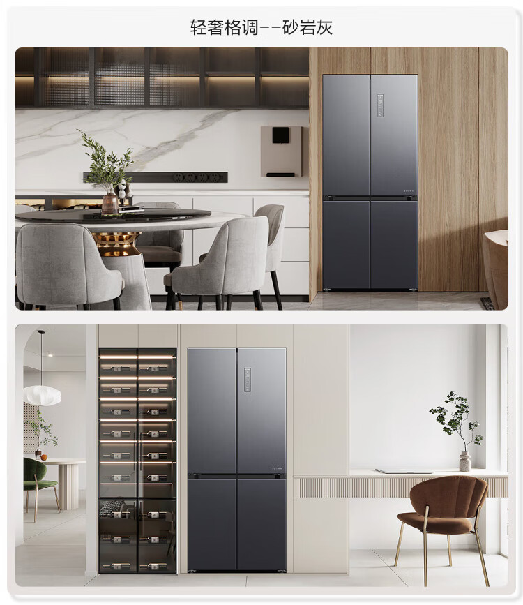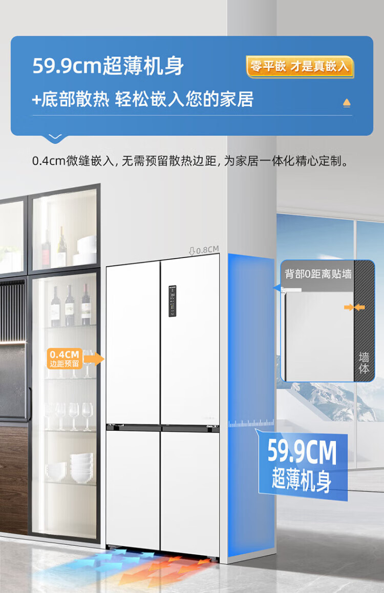 MeiLing AI Dual System Refrigerator 503L Cross Four Door Ultra-Thin Zero Embedded Refrigerator Bottom Cooling Active Sterilization and Odor Removal Subsidy 503L Active Sterilization Flat Embedded AI Intelligent Control Xingbo Gray