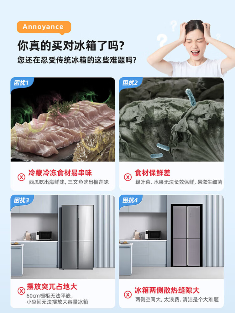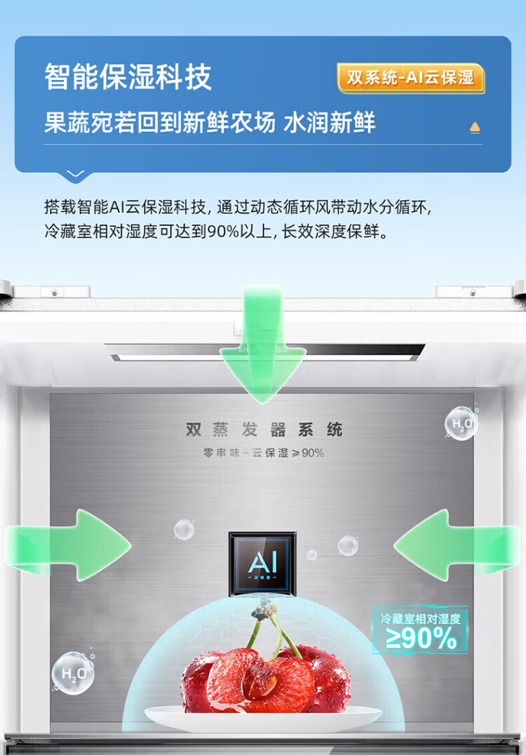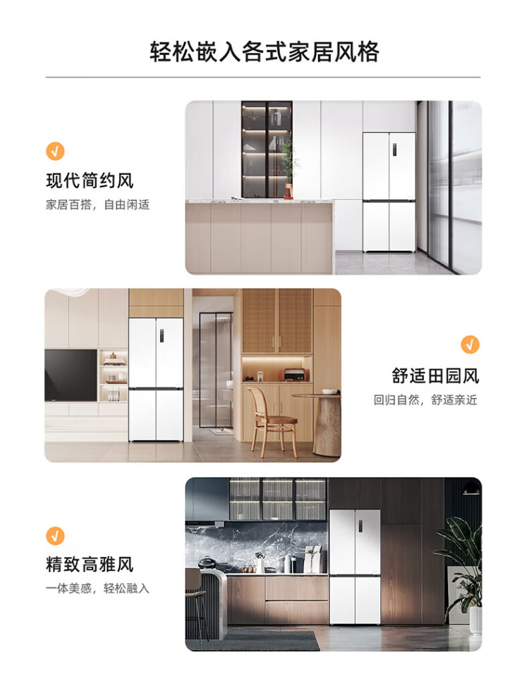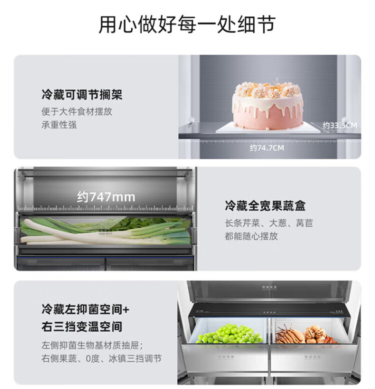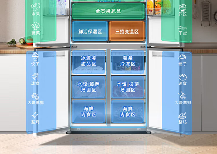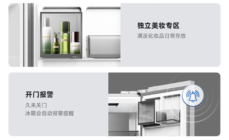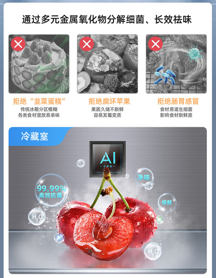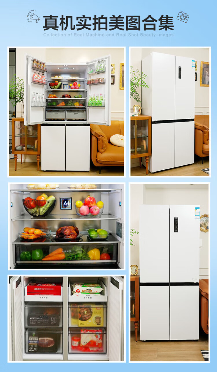 MeiLing AI Dual System Refrigerator 503L Cross Four Door Ultra-Thin Zero Embedded Refrigerator Bottom Cooling Active Sterilization and Odor Removal Subsidy 503L Active Sterilization Flat Embedded AI Intelligent Control Xingbo Gray