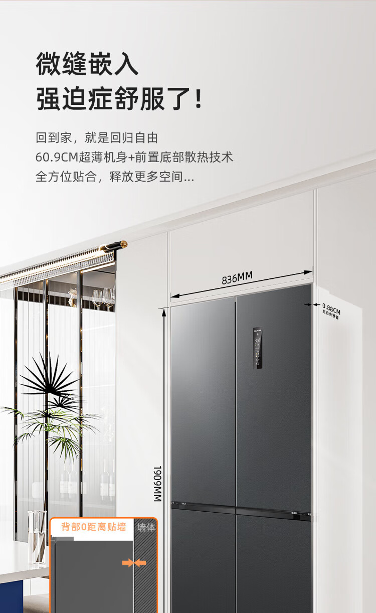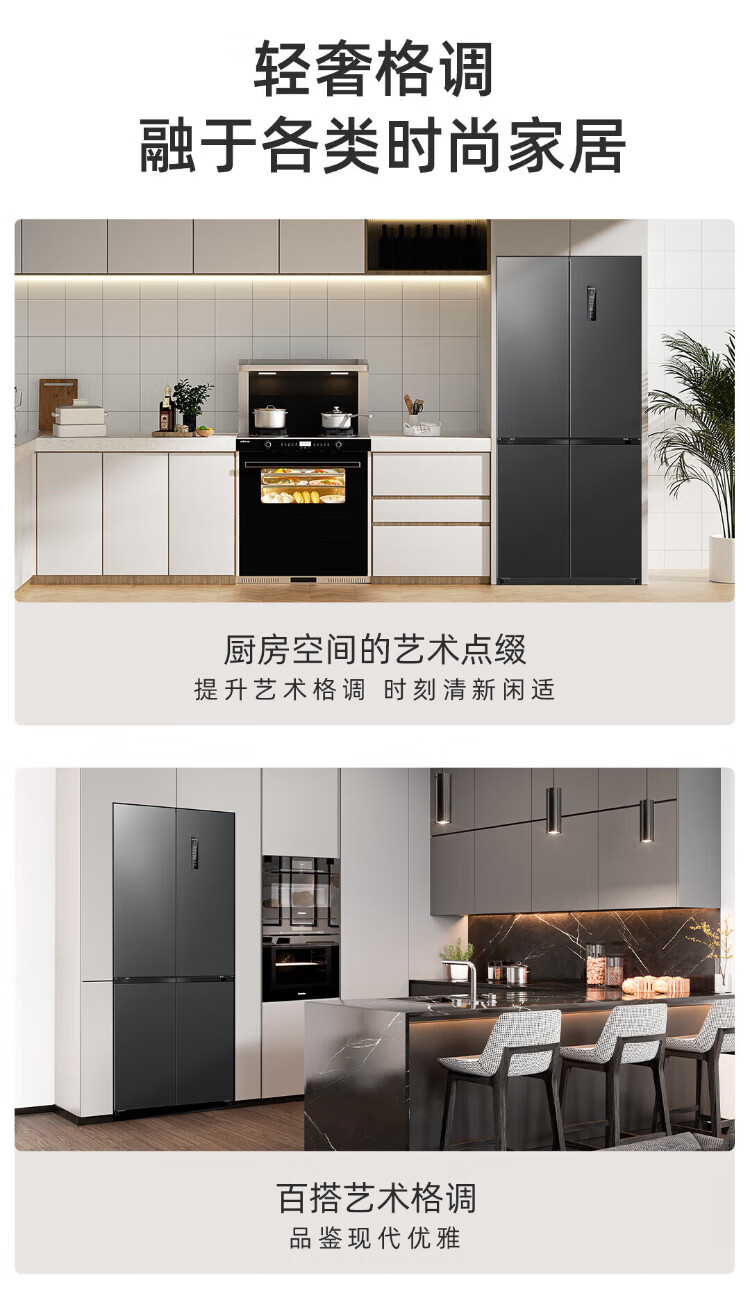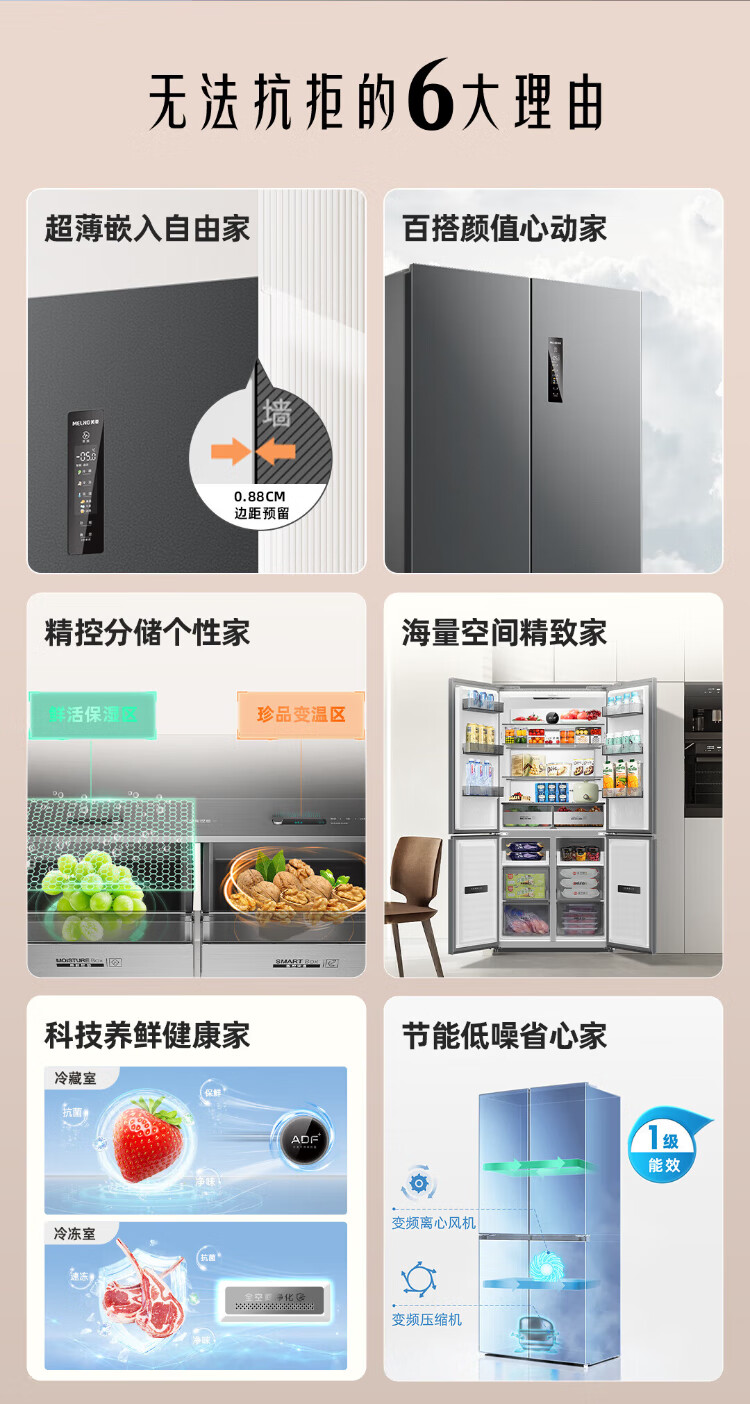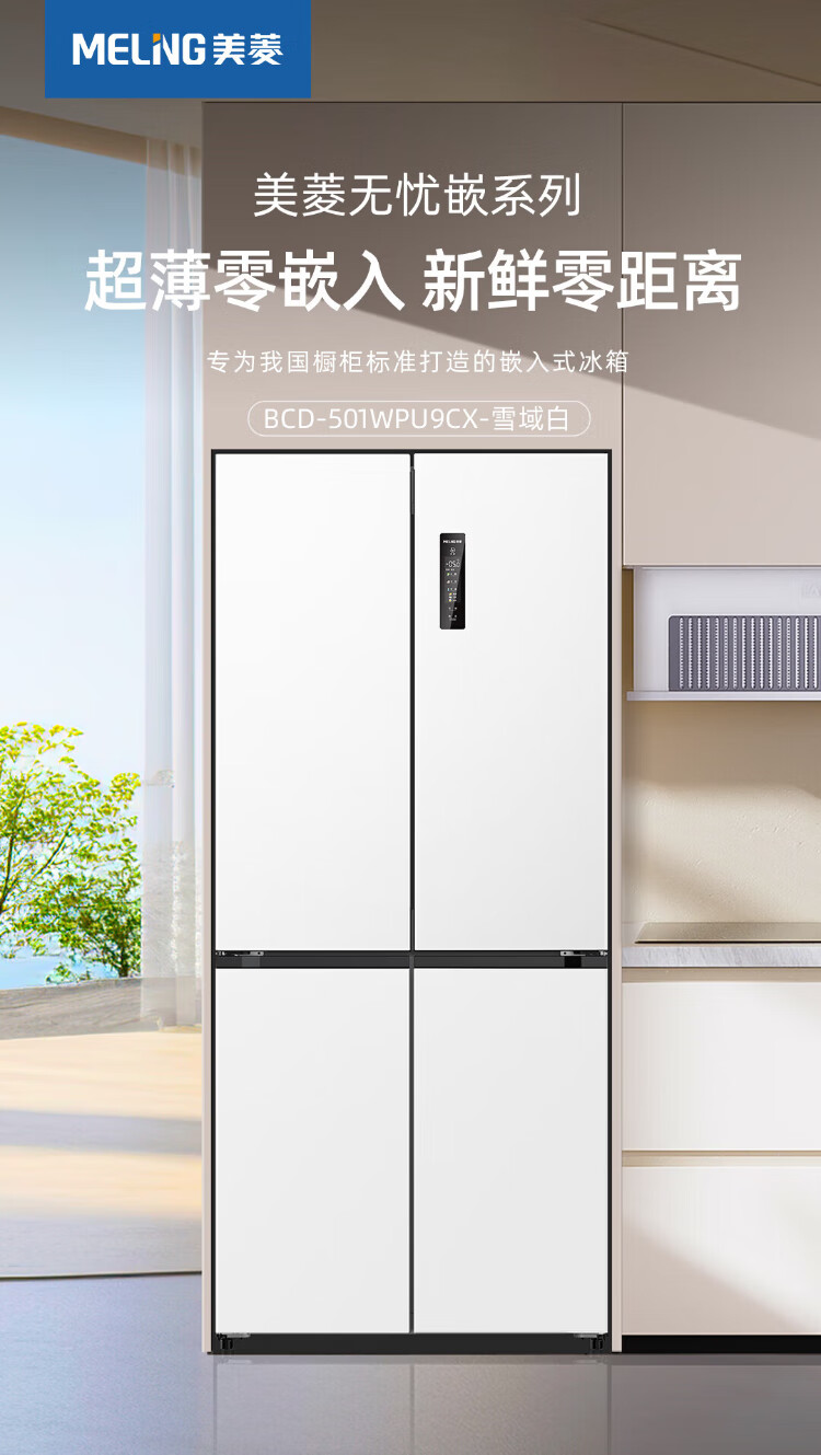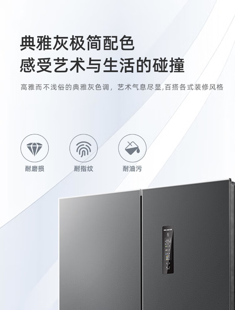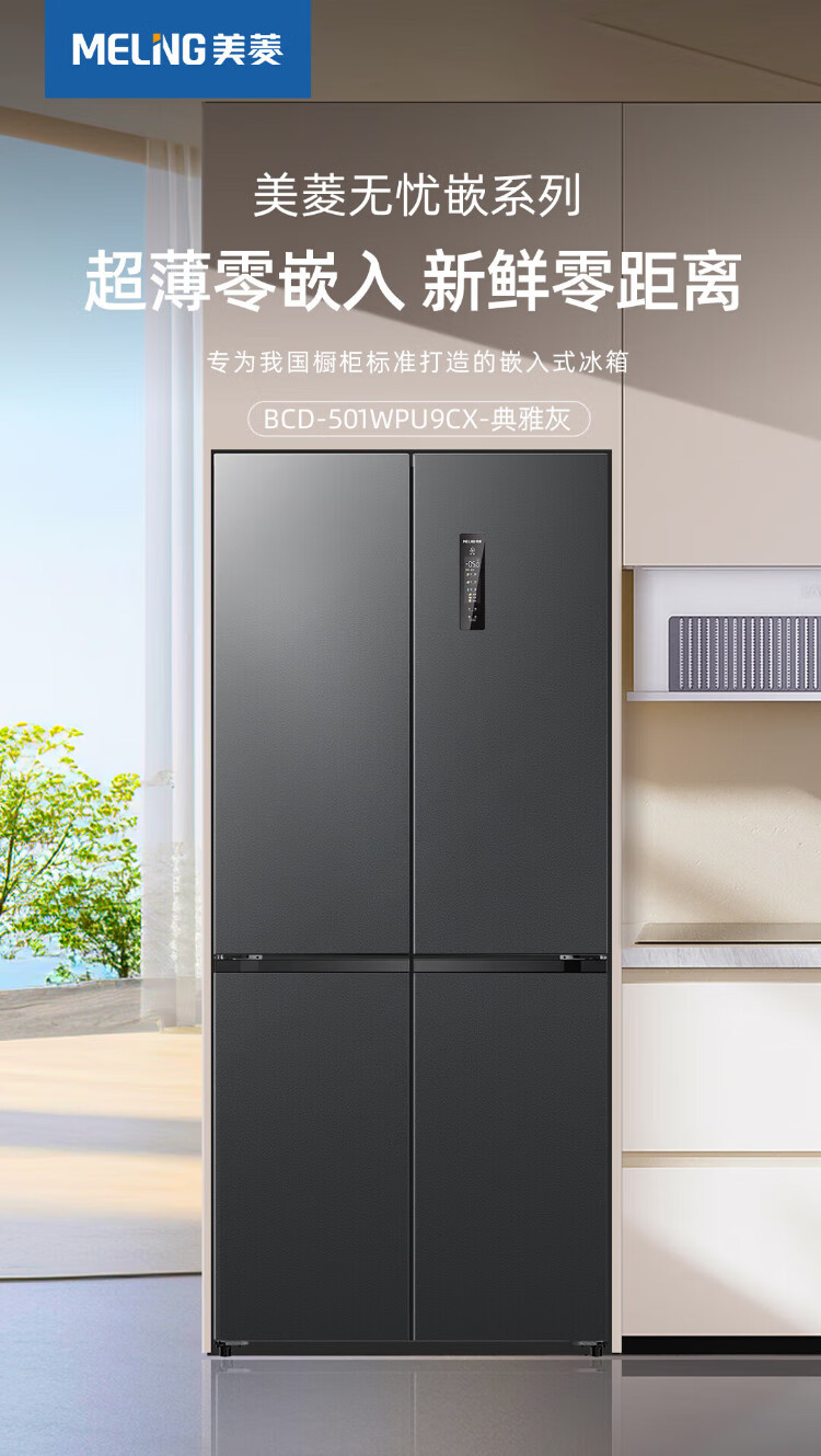 MeiLing AI Dual System Refrigerator 507 liters French style multi-door five-door ultra-thin zero-embedded refrigerator with active sterilization, deodorization, first-class energy efficiency and frost-free 508 liters AI full-field intelligent control dual-system zero-embedded - Xingbo Gray