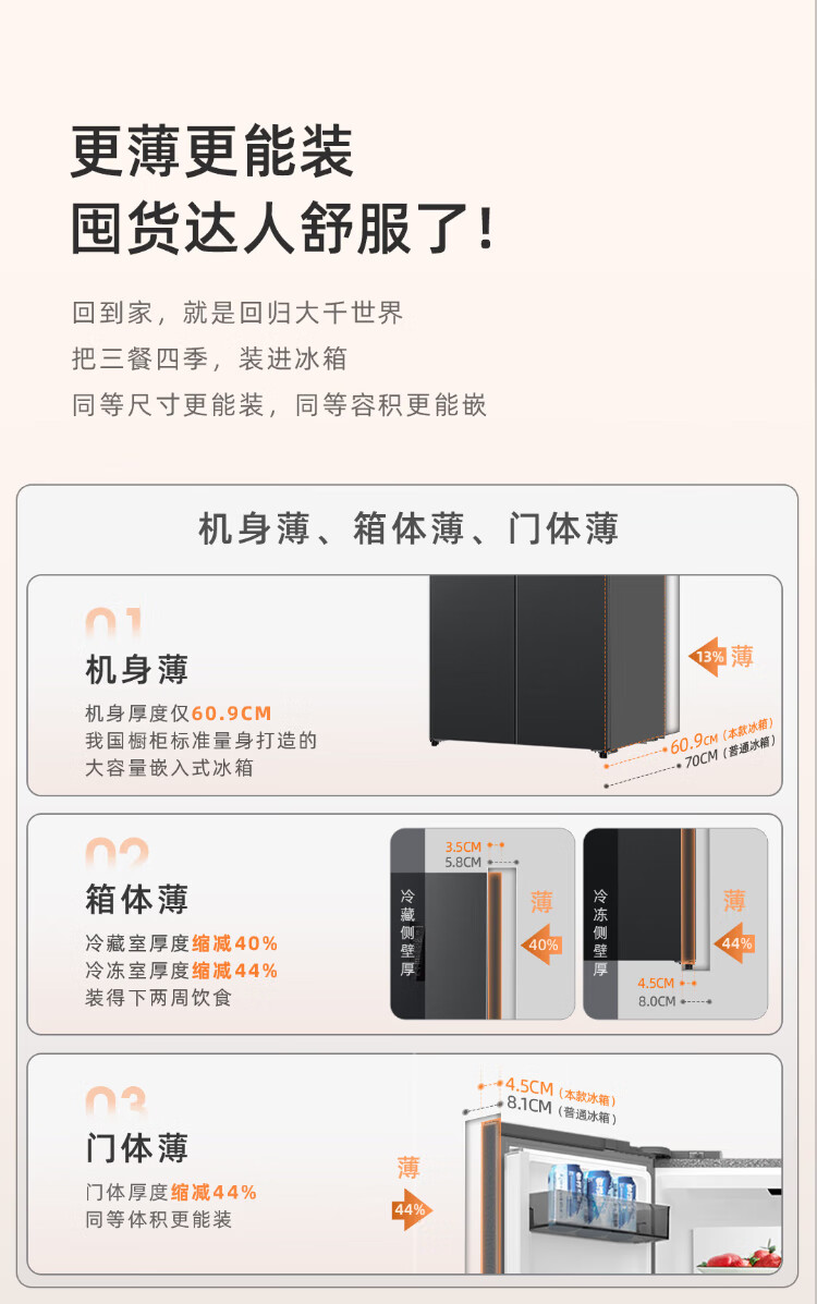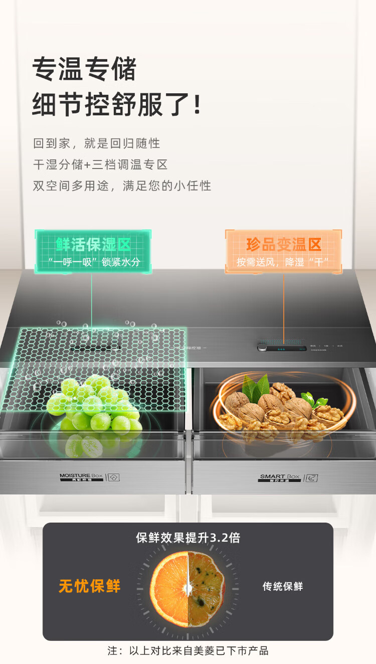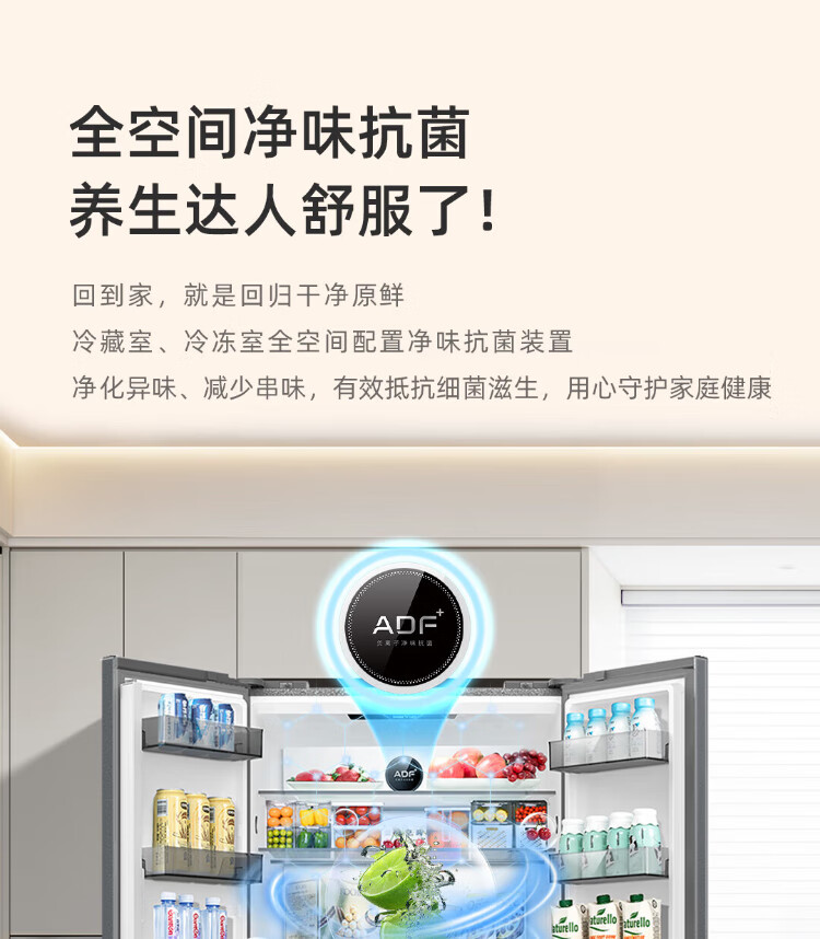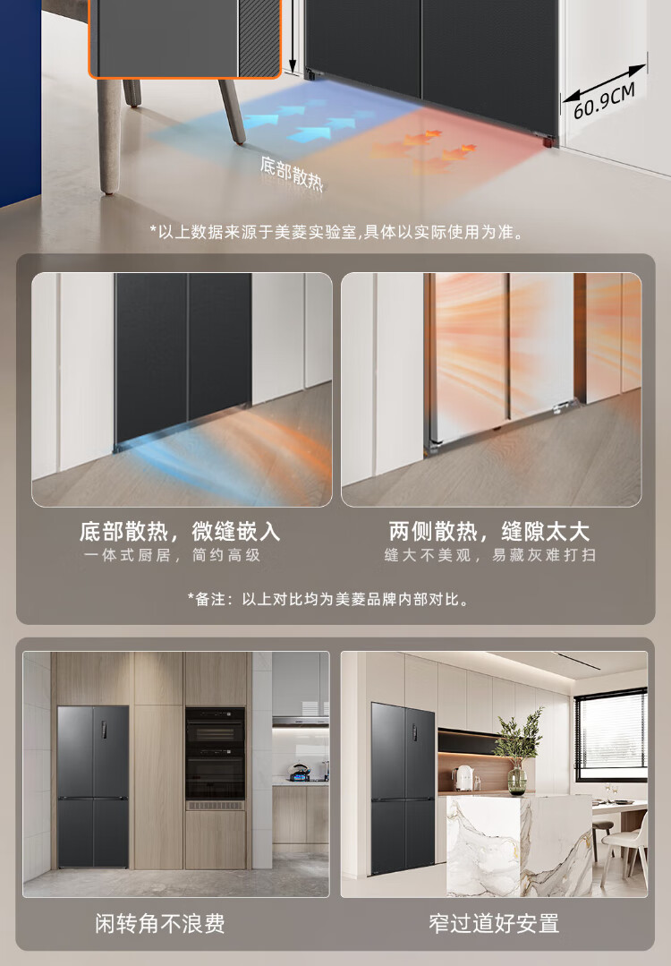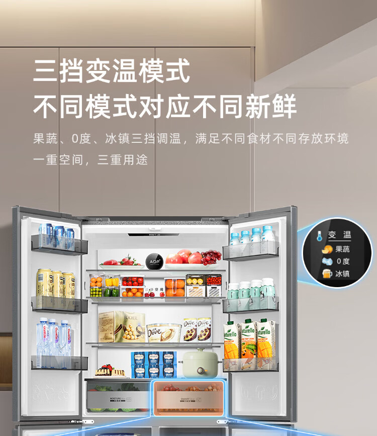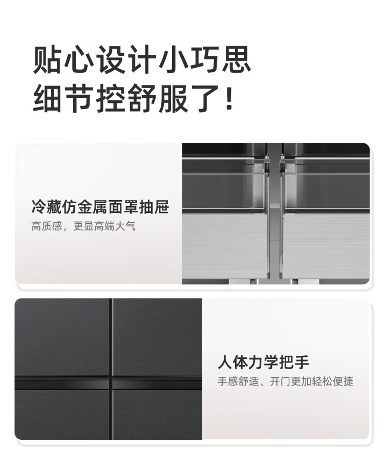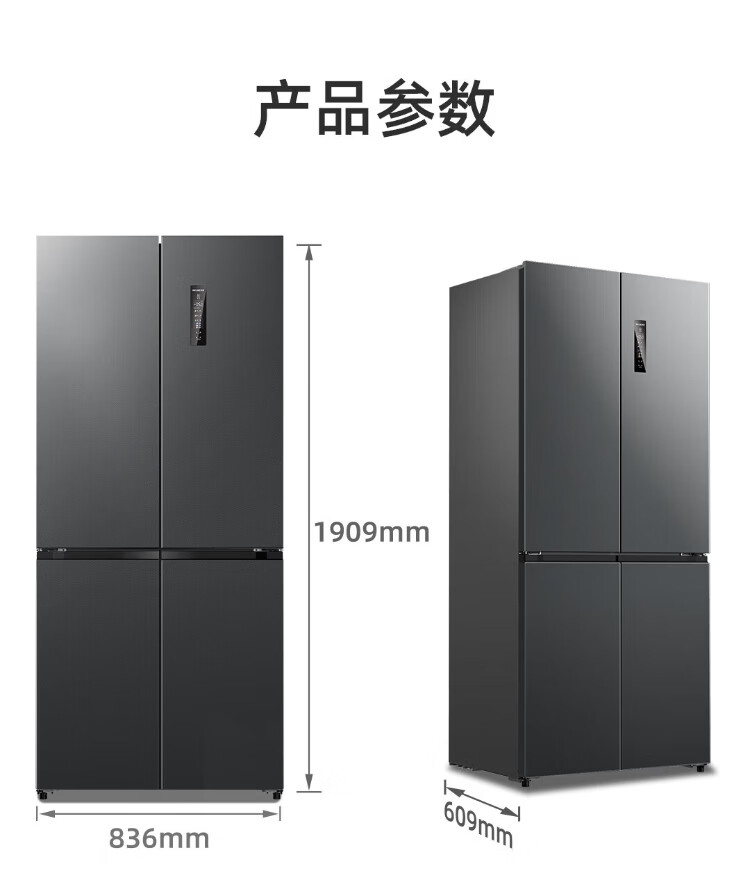 MeiLing AI Dual System Refrigerator 507 liters French style multi-door five-door ultra-thin zero-embedded refrigerator with active sterilization, deodorization, first-class energy efficiency and frost-free 508 liters AI full-field intelligent control dual-system zero-embedded - Xingbo Gray