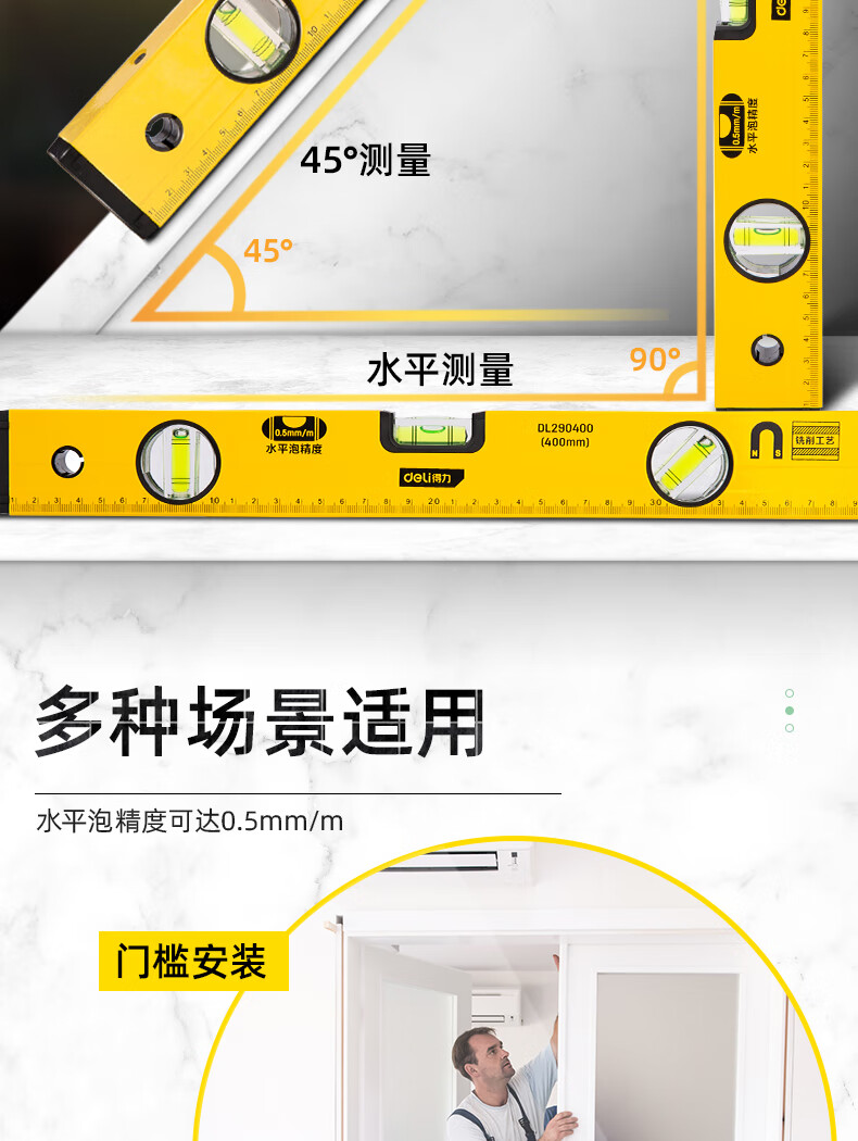 Yao Wanxi level ruler high-precision level level ruler small aluminum alloy anti-fall balancer strong magnetic ruler household DL290300 economic model strong magnetic model 300mm