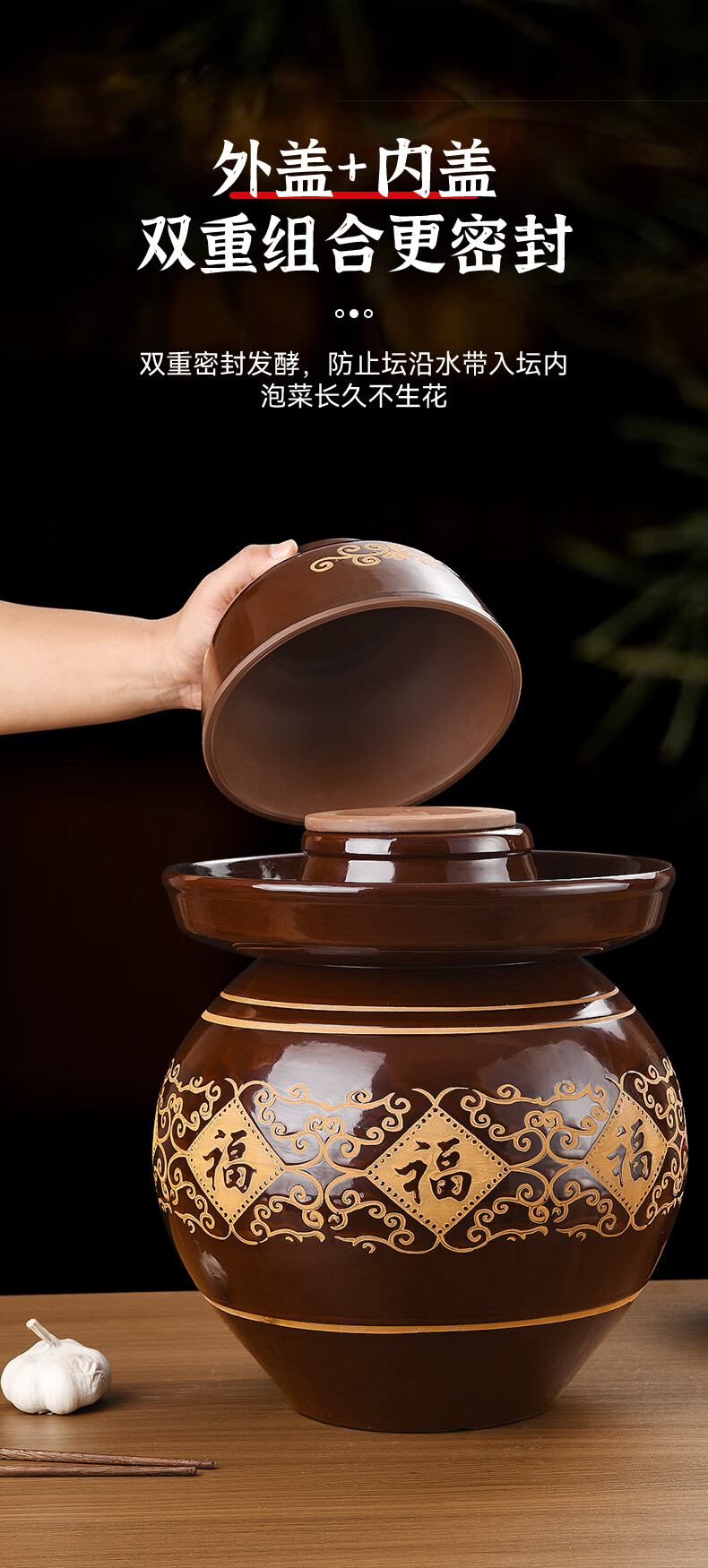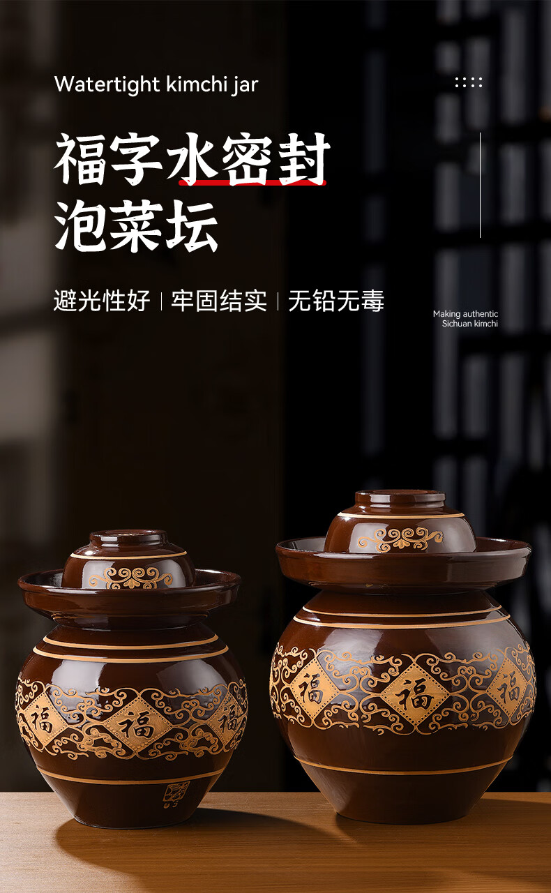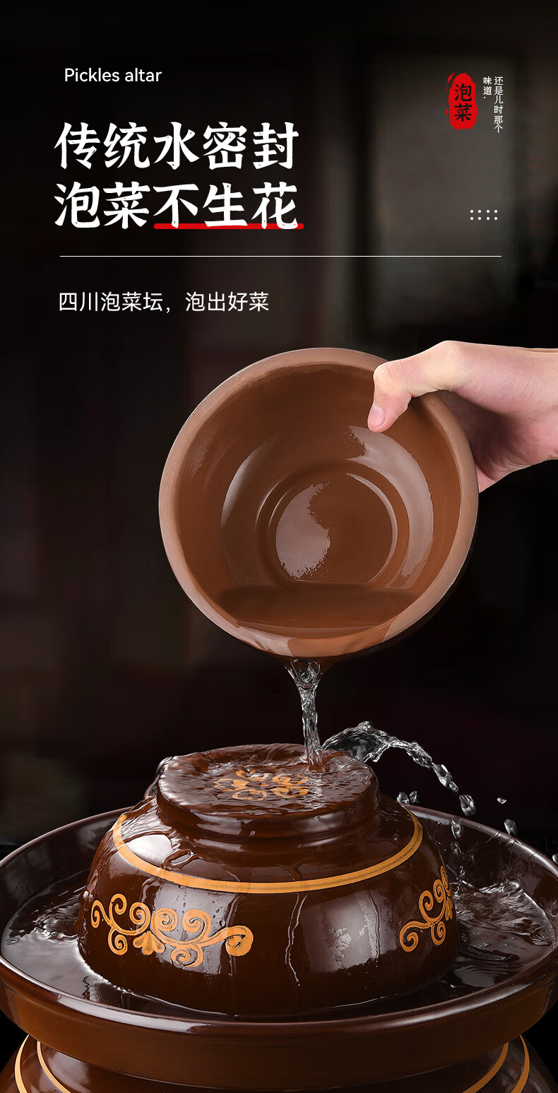 Yunmanqing Sichuan pickle jar household earthenware pickle jar old jar ceramic large old-fashioned pickle jar sealed pickle jar 4 catties pickle jar damaged replacement + stainless steel vegetable clip