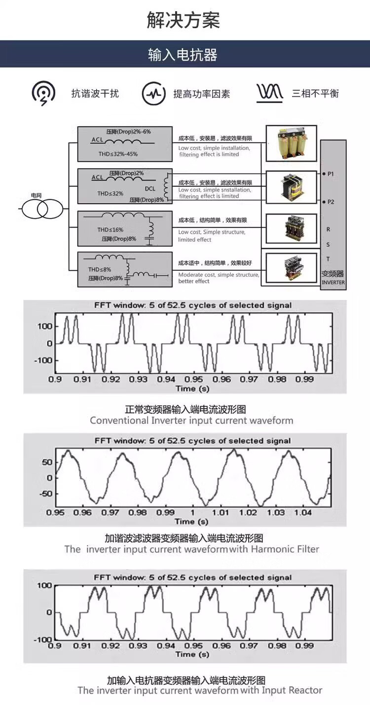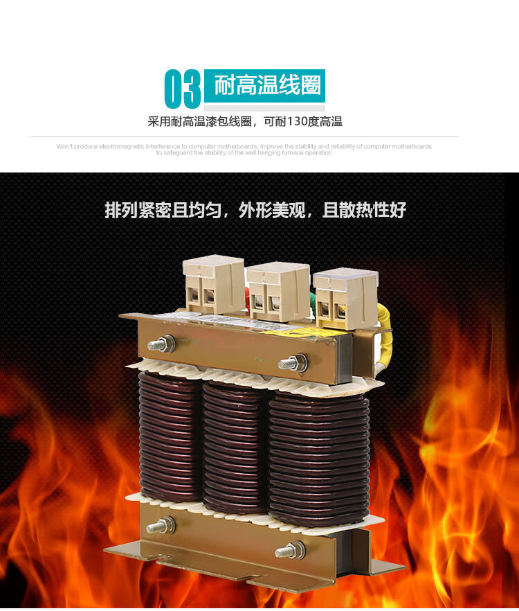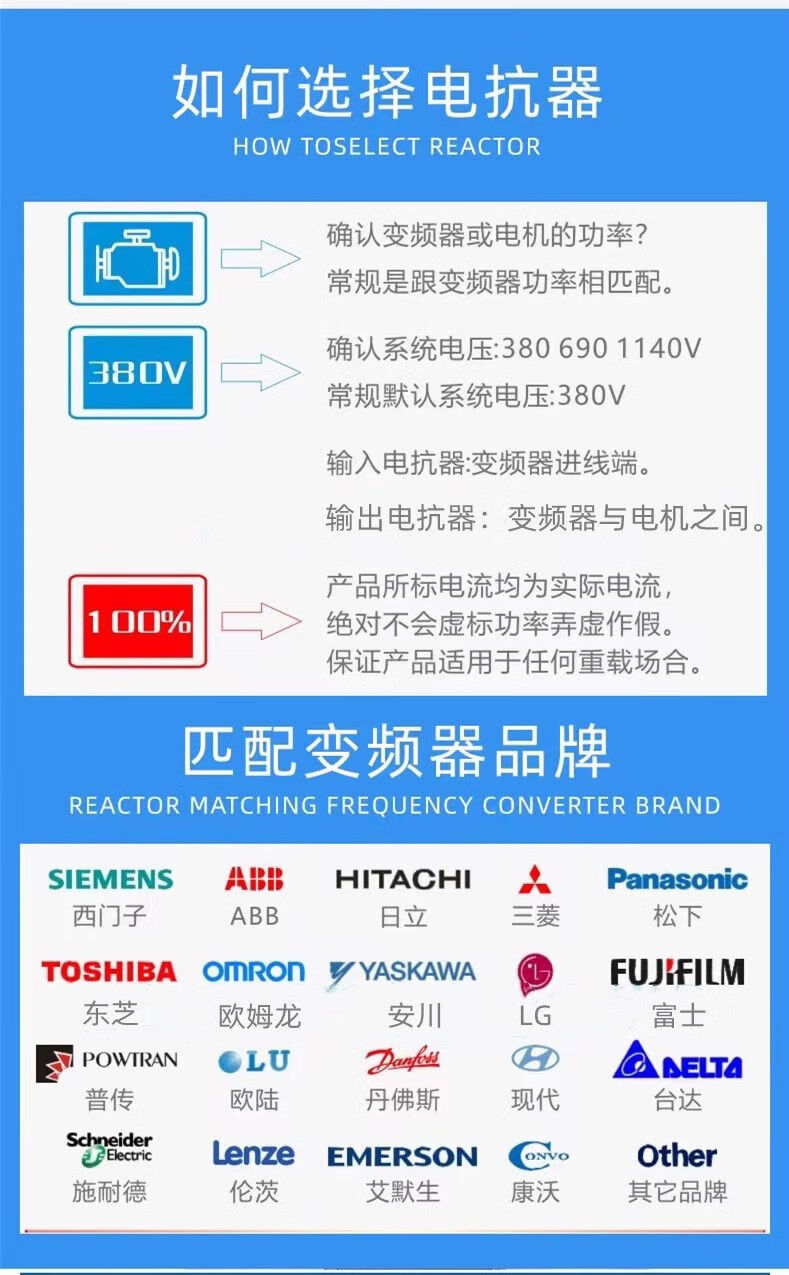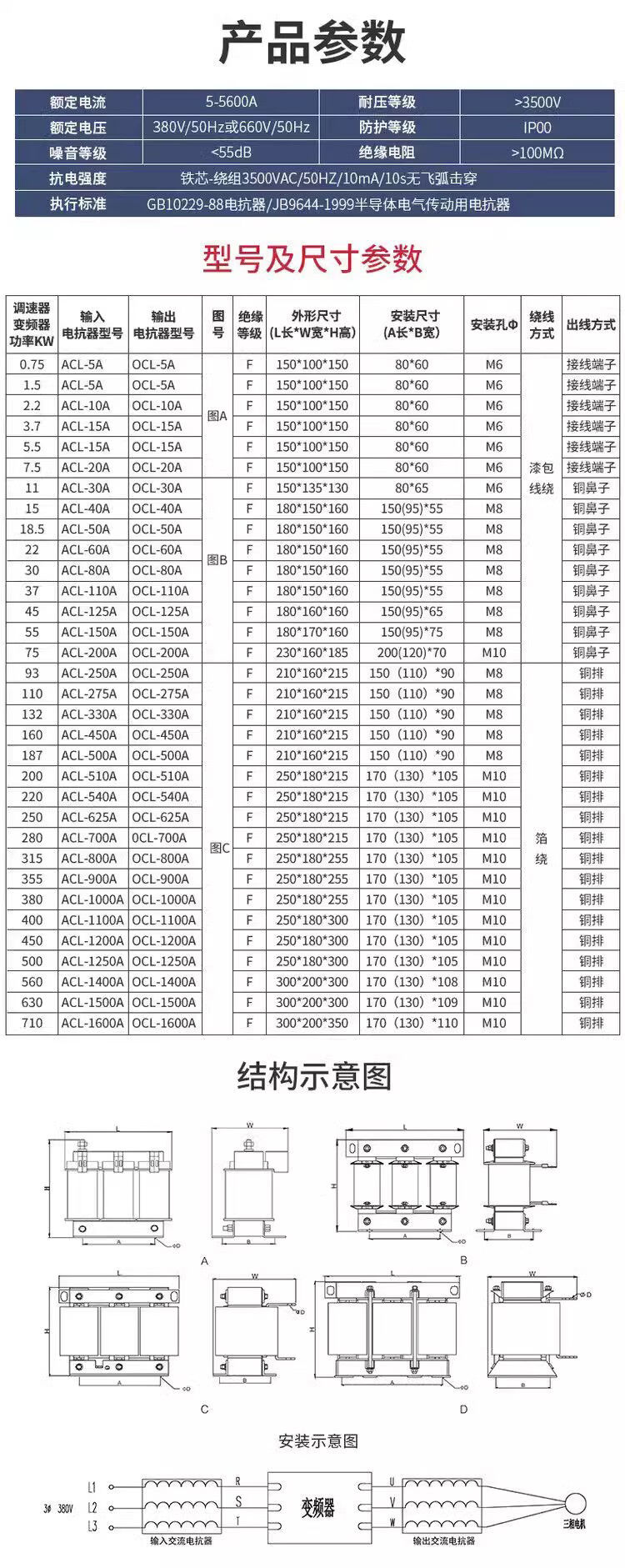 Three-phase incoming line ACL outgoing line OCL anti-interference series filter capacitor 1.1KW-1000KW inverter reactor adapted to 30KW inverter current 80A output terminal