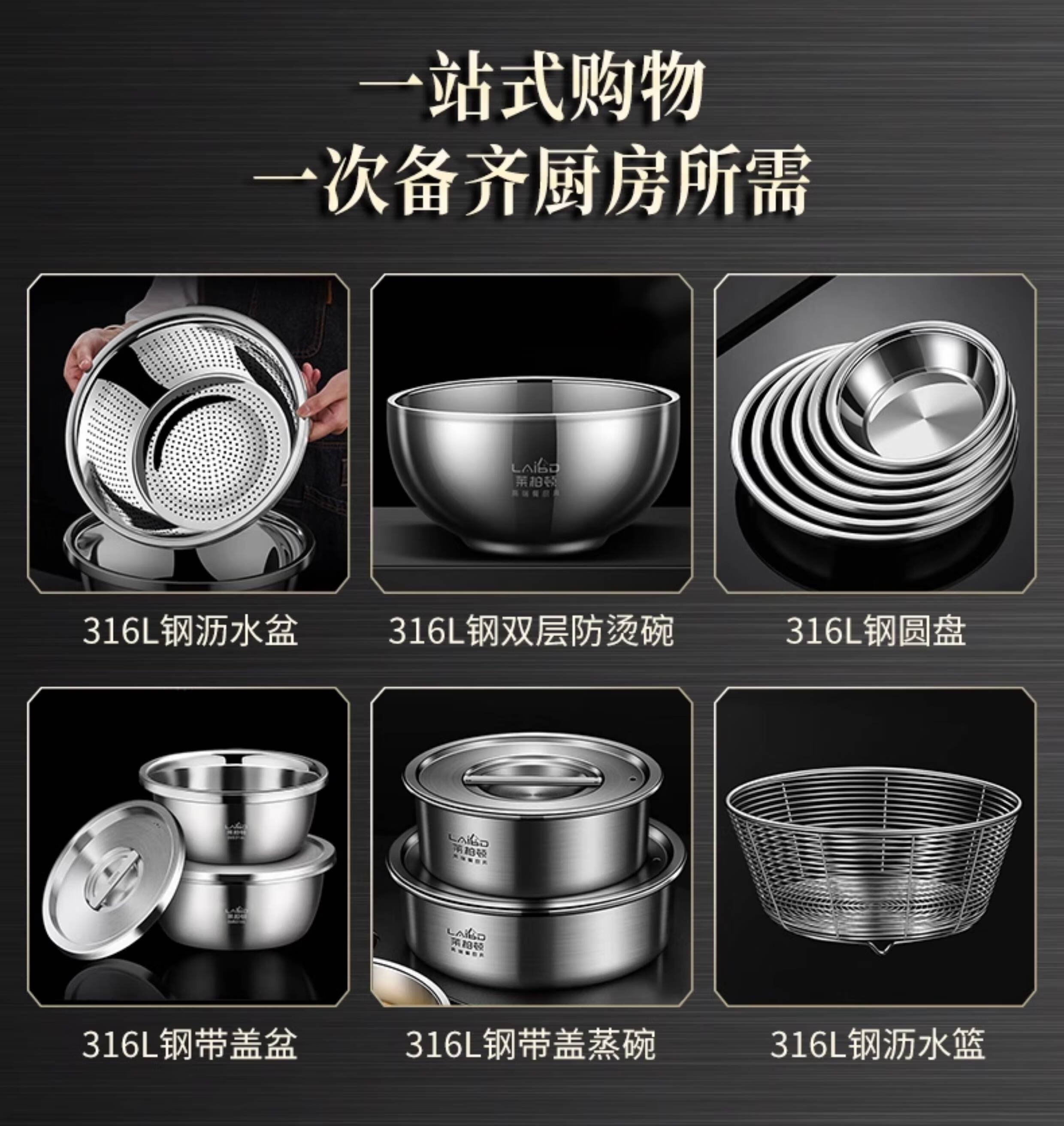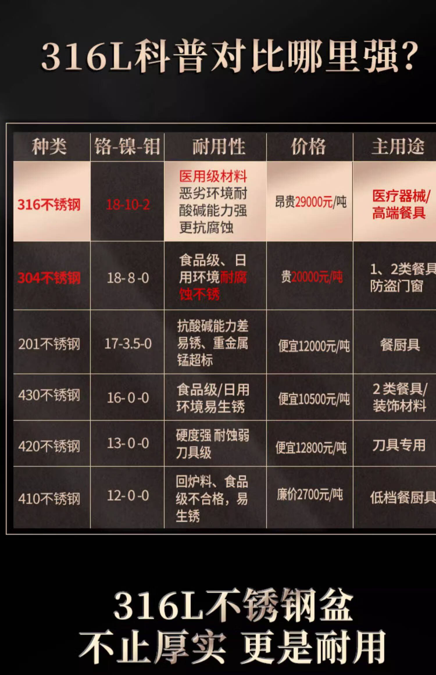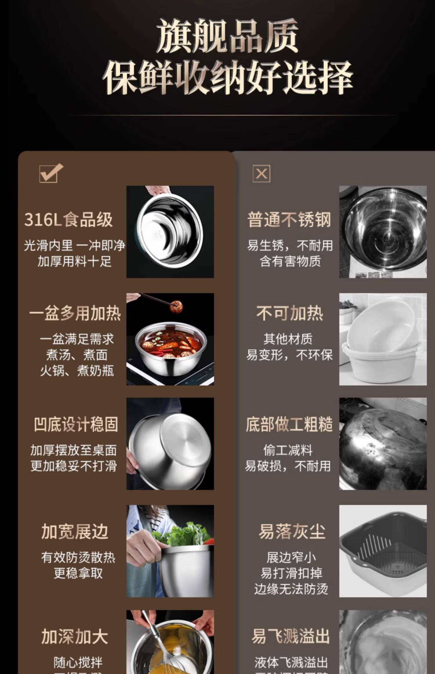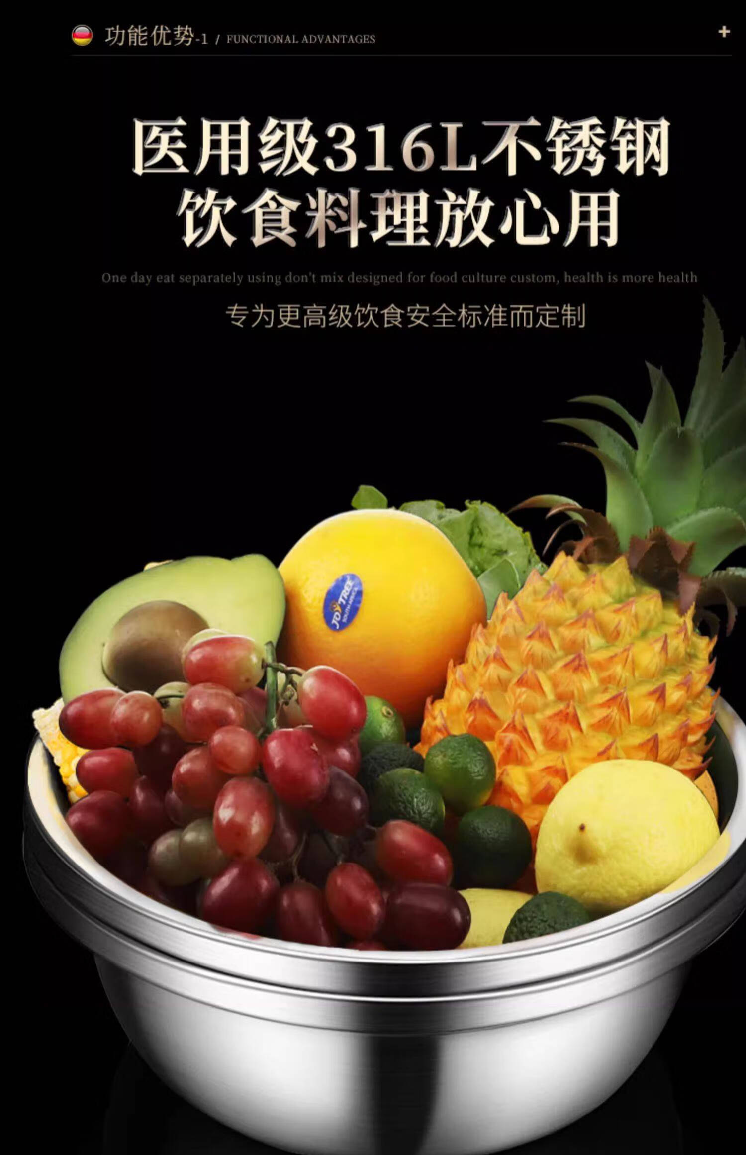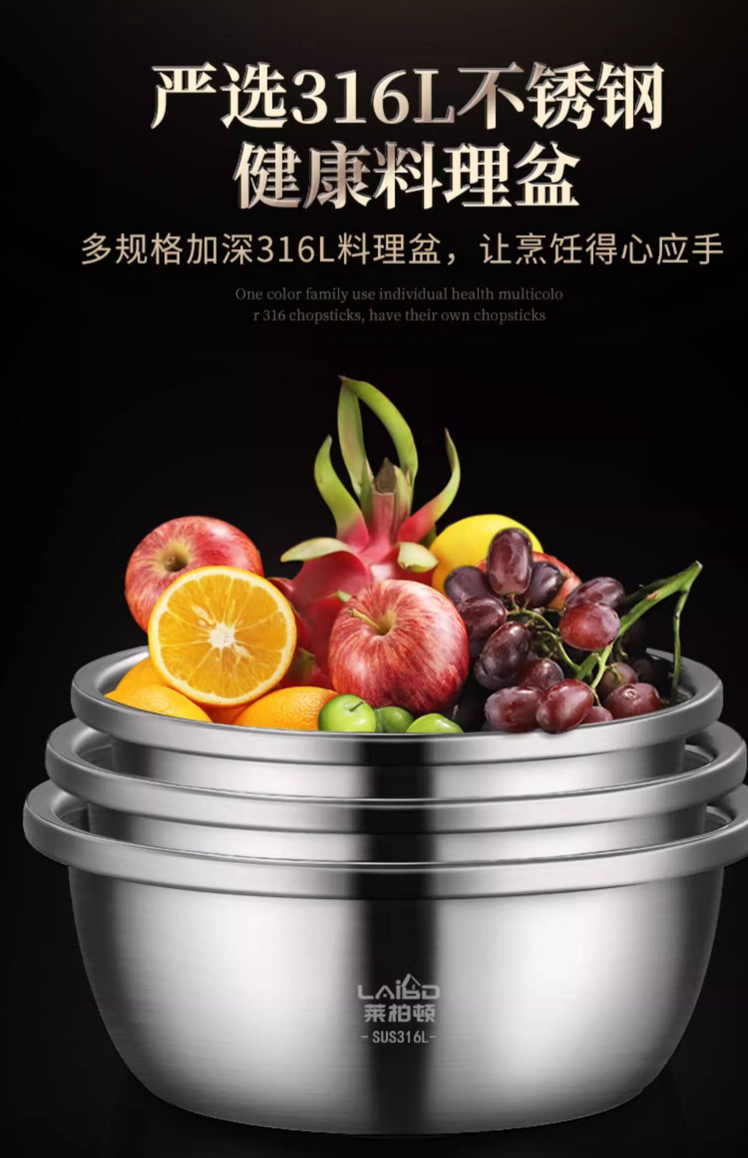 Sailotou 316 stainless steel basin set household oil basin for beating eggs and washing vegetables and cooking large soup basin large basin 3 pieces 26+28+30cm
