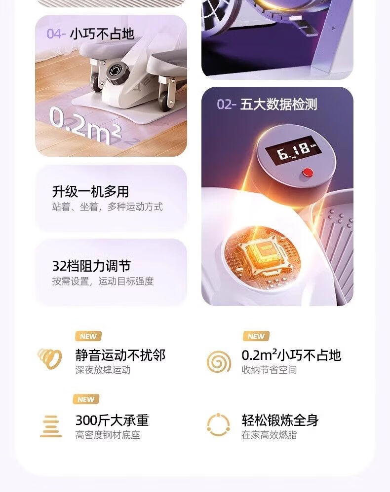 NAOISKEY Intelligent Elliptical Machine Home Magnetic Control Mini Stepper 2025 Upgraded Model for Standing and Sitting Exclusive Black 32-speed Magnetic Resistance Two-Way Flywheel/HD Fat Burning Meter