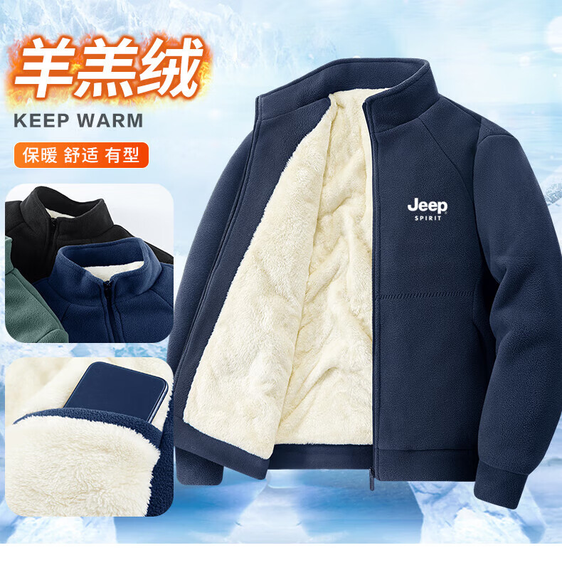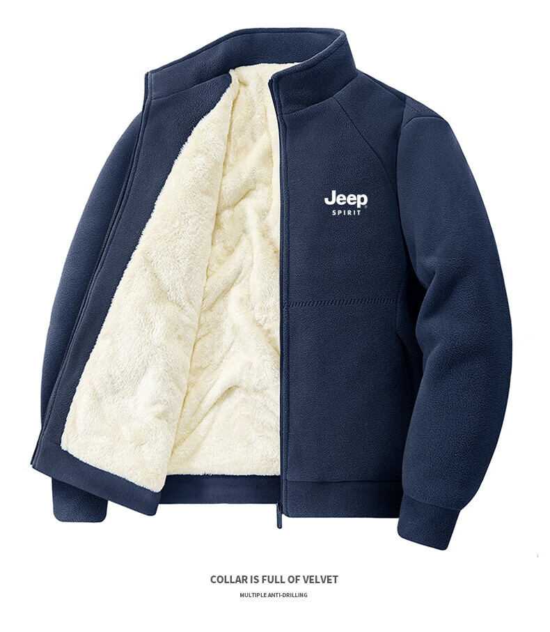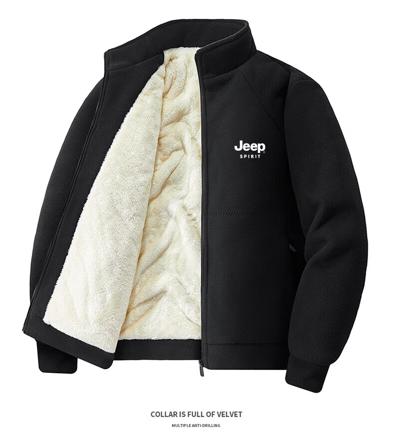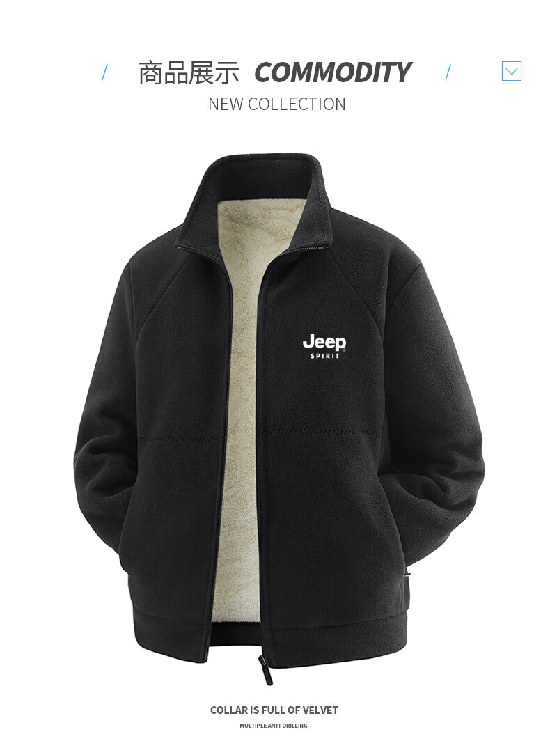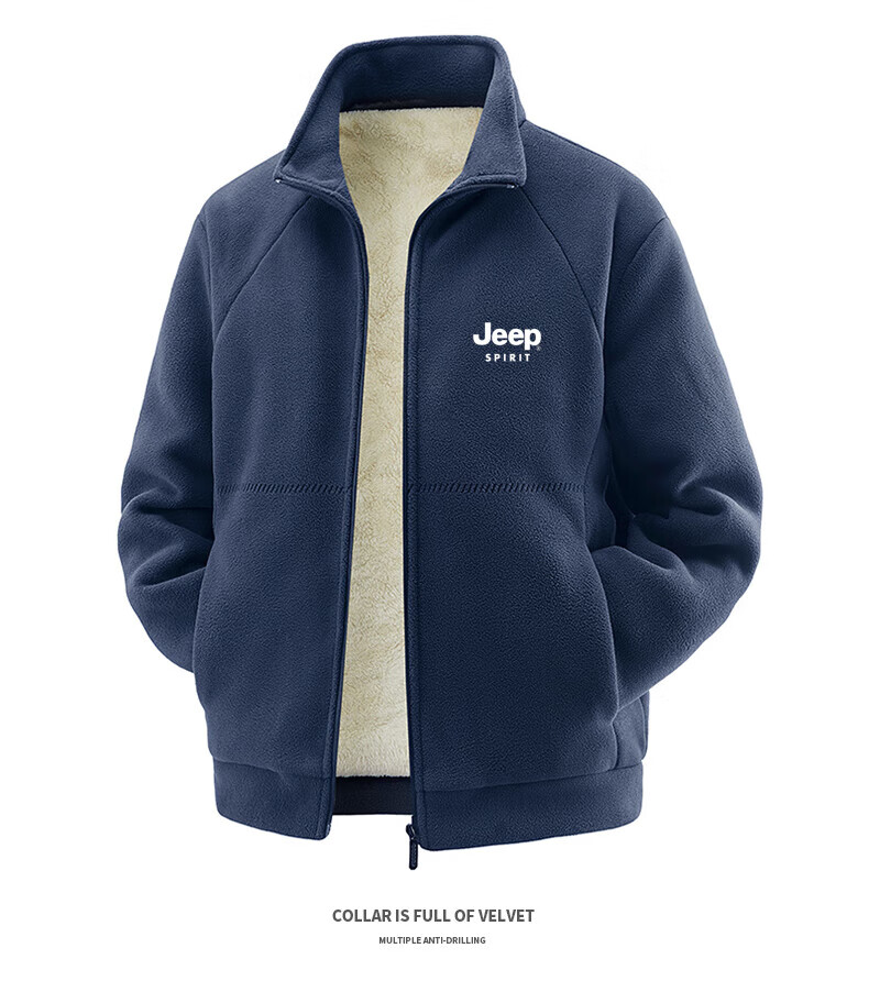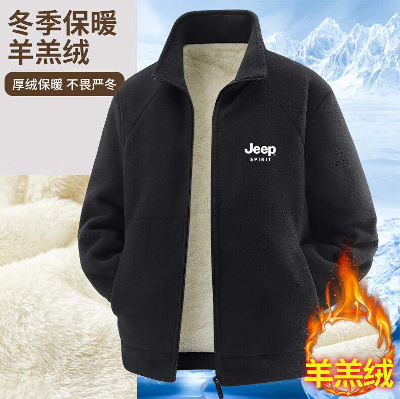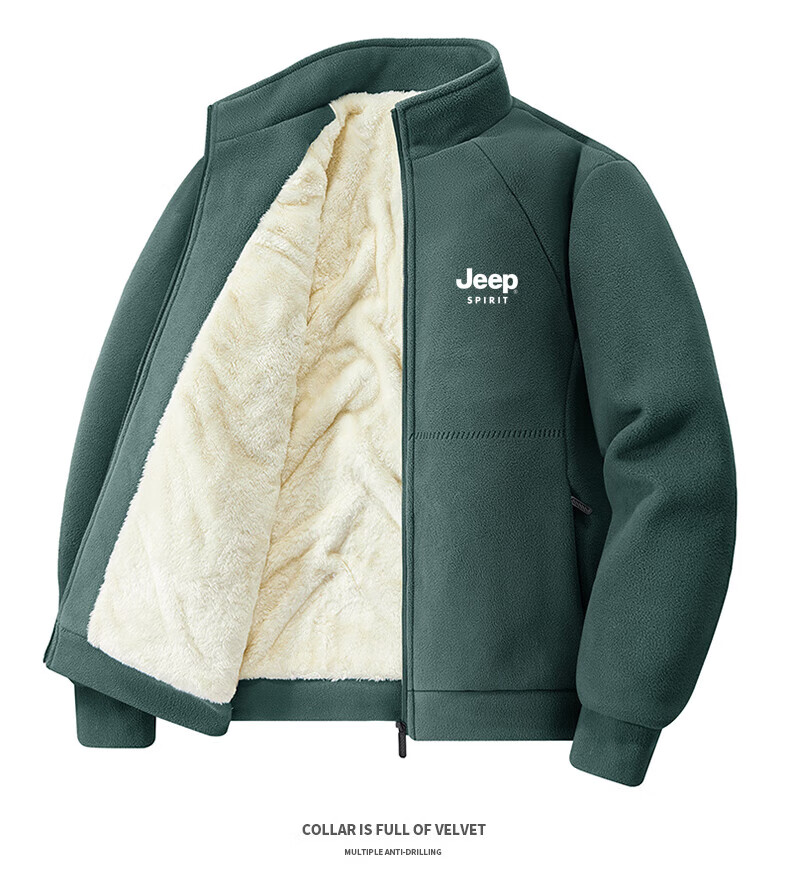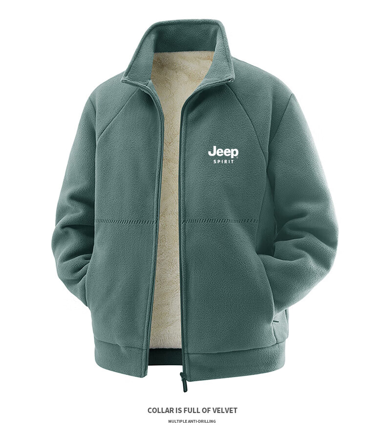 JEEP SPIRIT Large Size Polar Fleece Jacket Men's 2025 Winter Lamb Velvet Thickened Top Outdoor Casual Jacket 6166 Army Green XL Recommended 120-135 catties