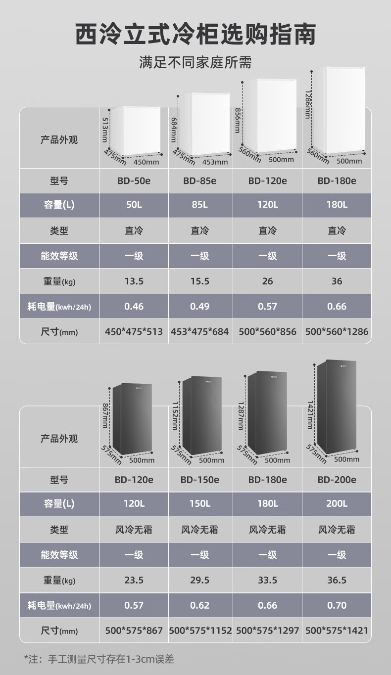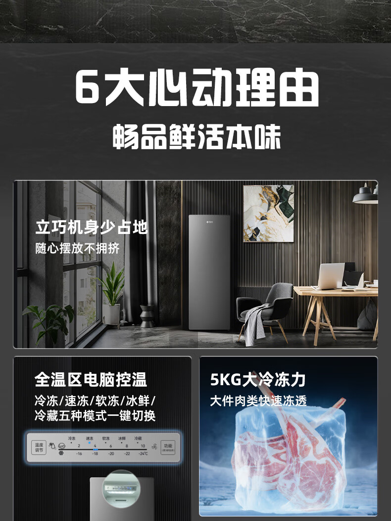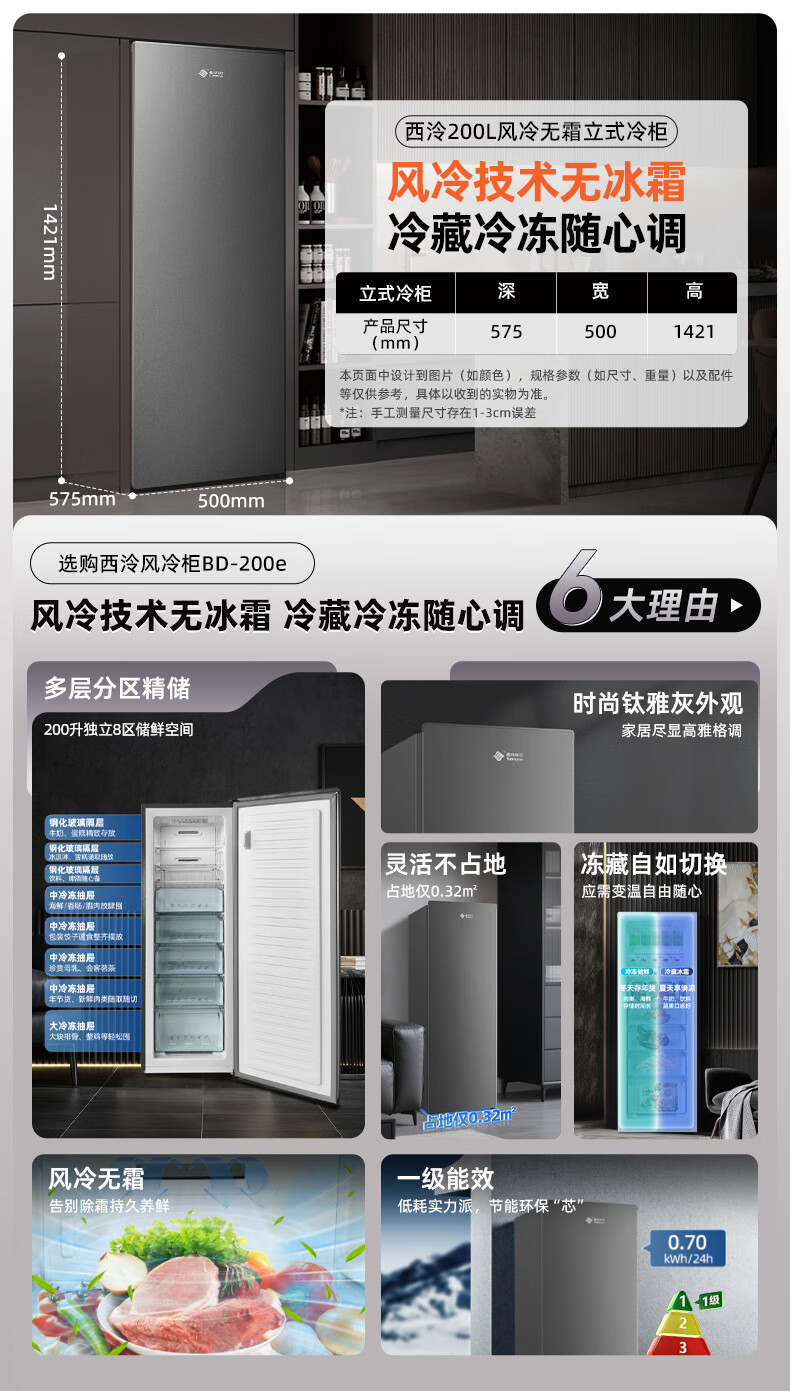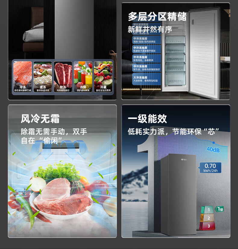 Xiling vertical freezer small freezer first-class energy-efficiency air-cooled frost-free small refrigerator household side-opening fully refrigerated freezing conversion drawer-type small refrigerated freezer mother and baby 85 liters first-class energy-saving vertical direct cooling freezer -18 degrees deep cooling quick freezing