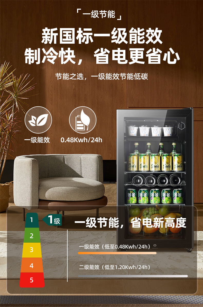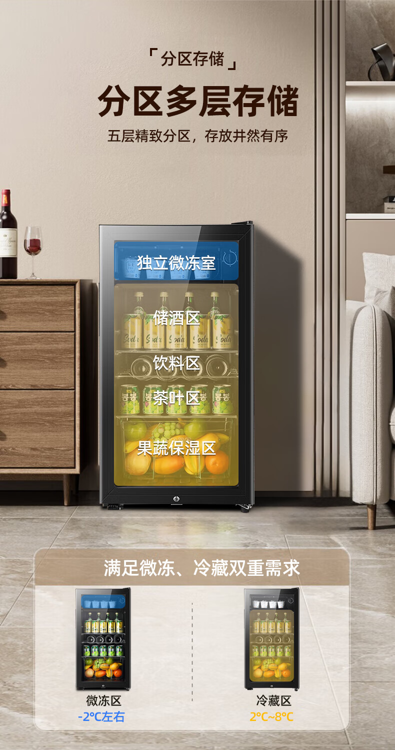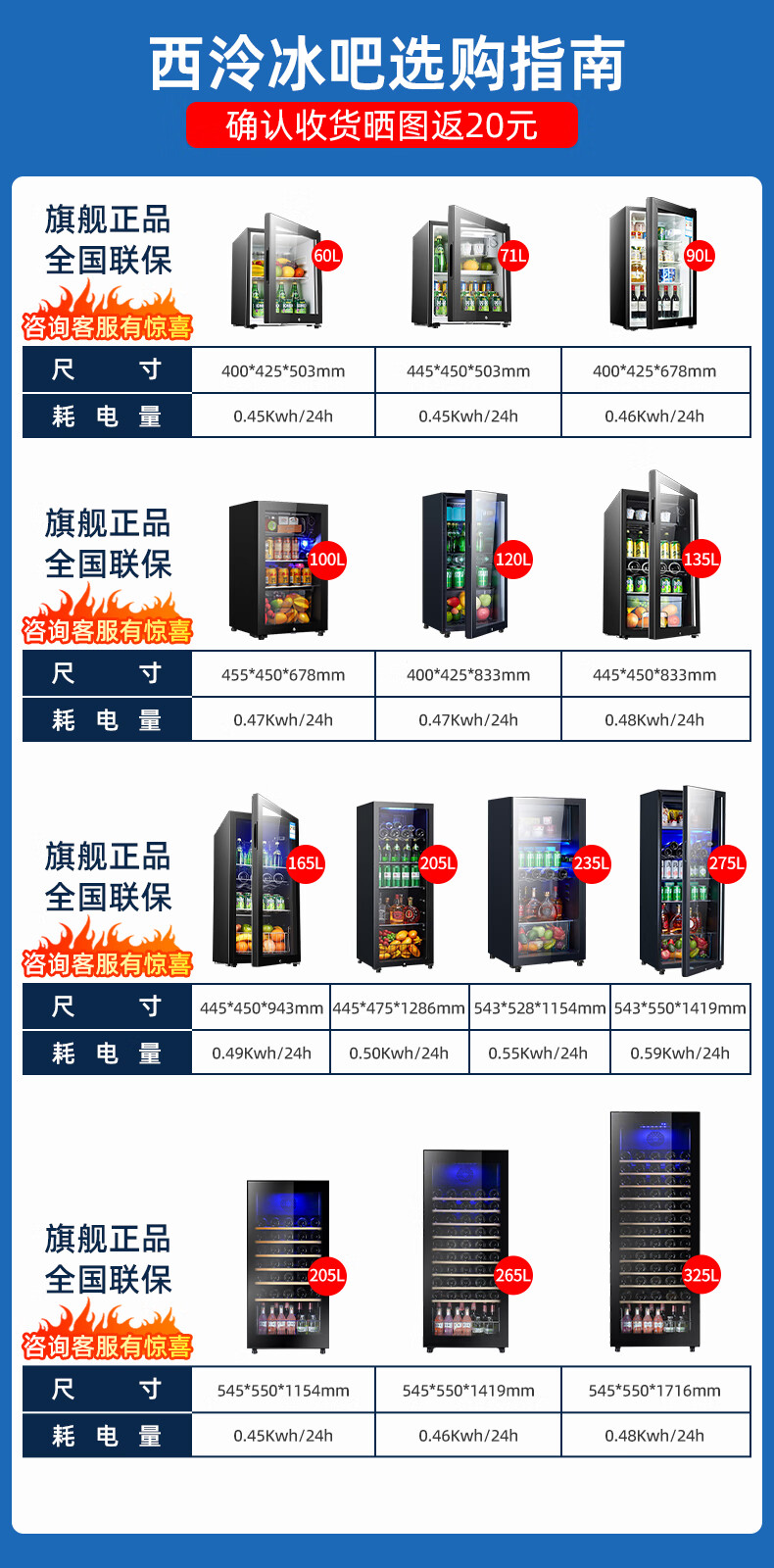 Xiling Ice Bar Household Level 1 Energy Efficiency Refrigerator Energy Saving Small Living Room Red Wine Cabinet Refrigerator Bar Large Capacity Glass Door Beverage Tea Mother and Baby Cigar Preservation Freezer Bar 235L Black Liner 25L Freezer + Light + Door Lock + Level 1