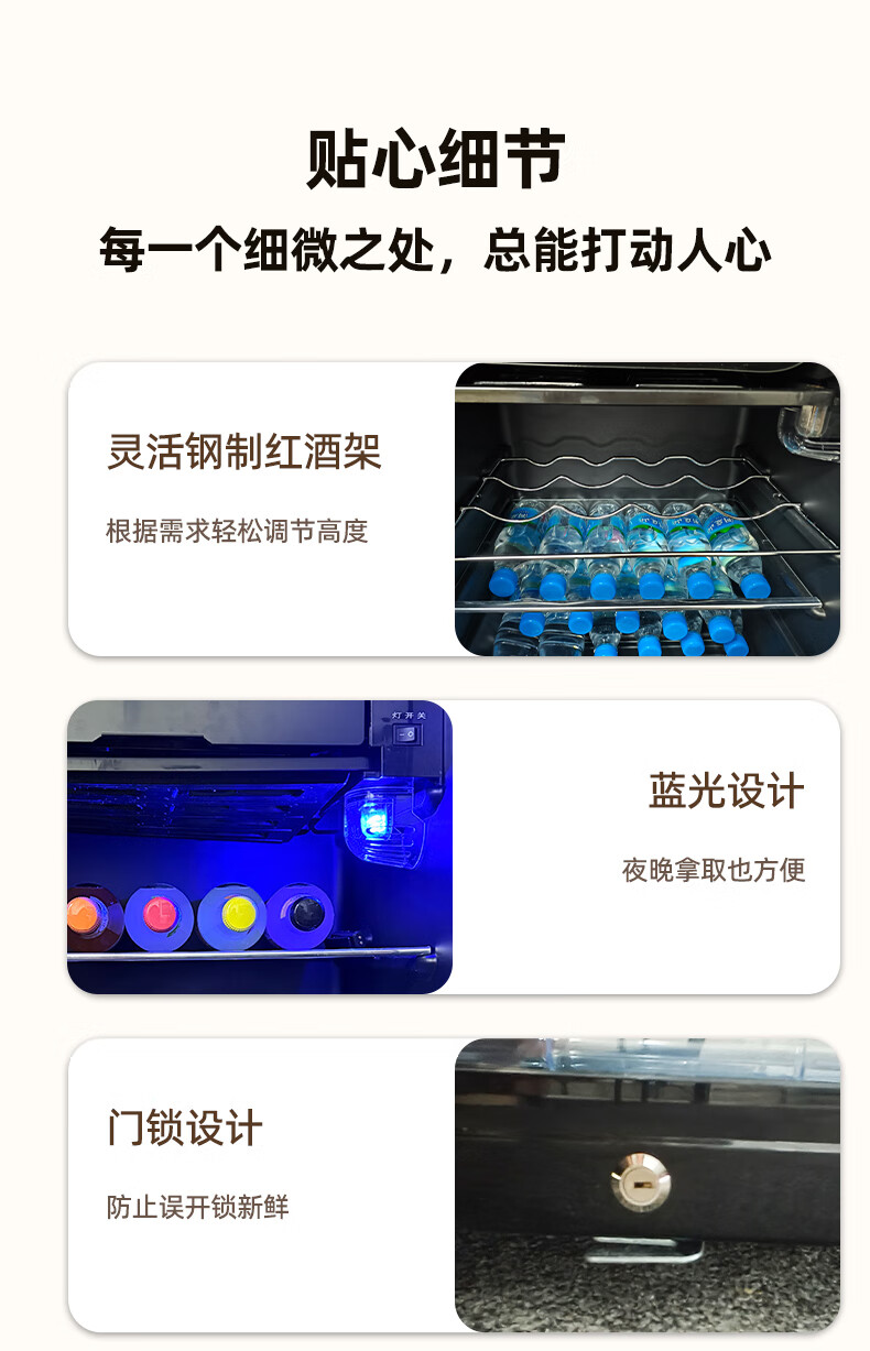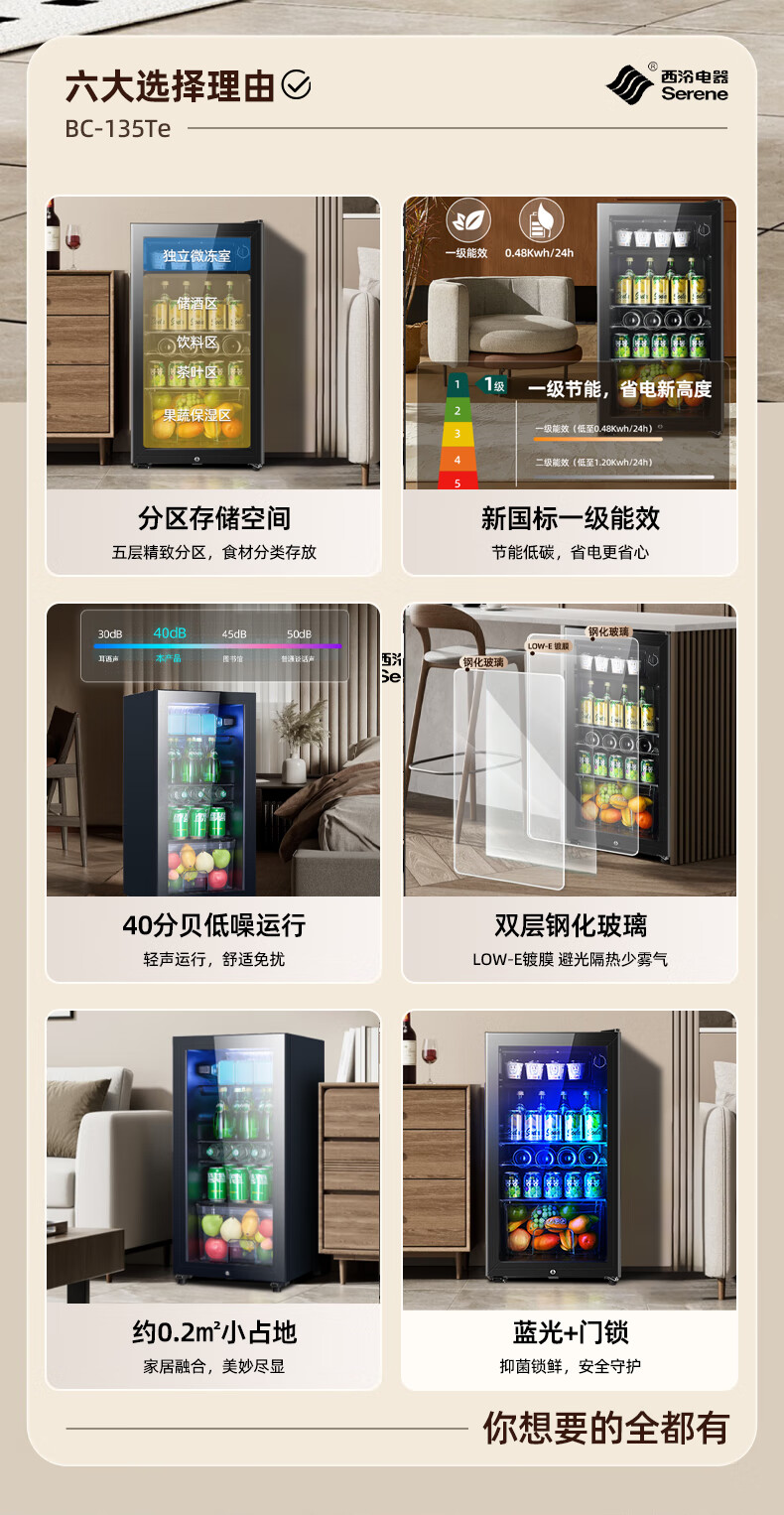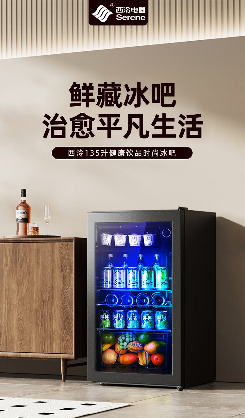 Xiling Ice Bar Household Level 1 Energy Efficiency Refrigerator Energy Saving Small Living Room Red Wine Cabinet Refrigerator Bar Large Capacity Glass Door Beverage Tea Mother and Baby Cigar Preservation Freezer Bar 235L Black Liner 25L Freezer + Light + Door Lock + Level 1