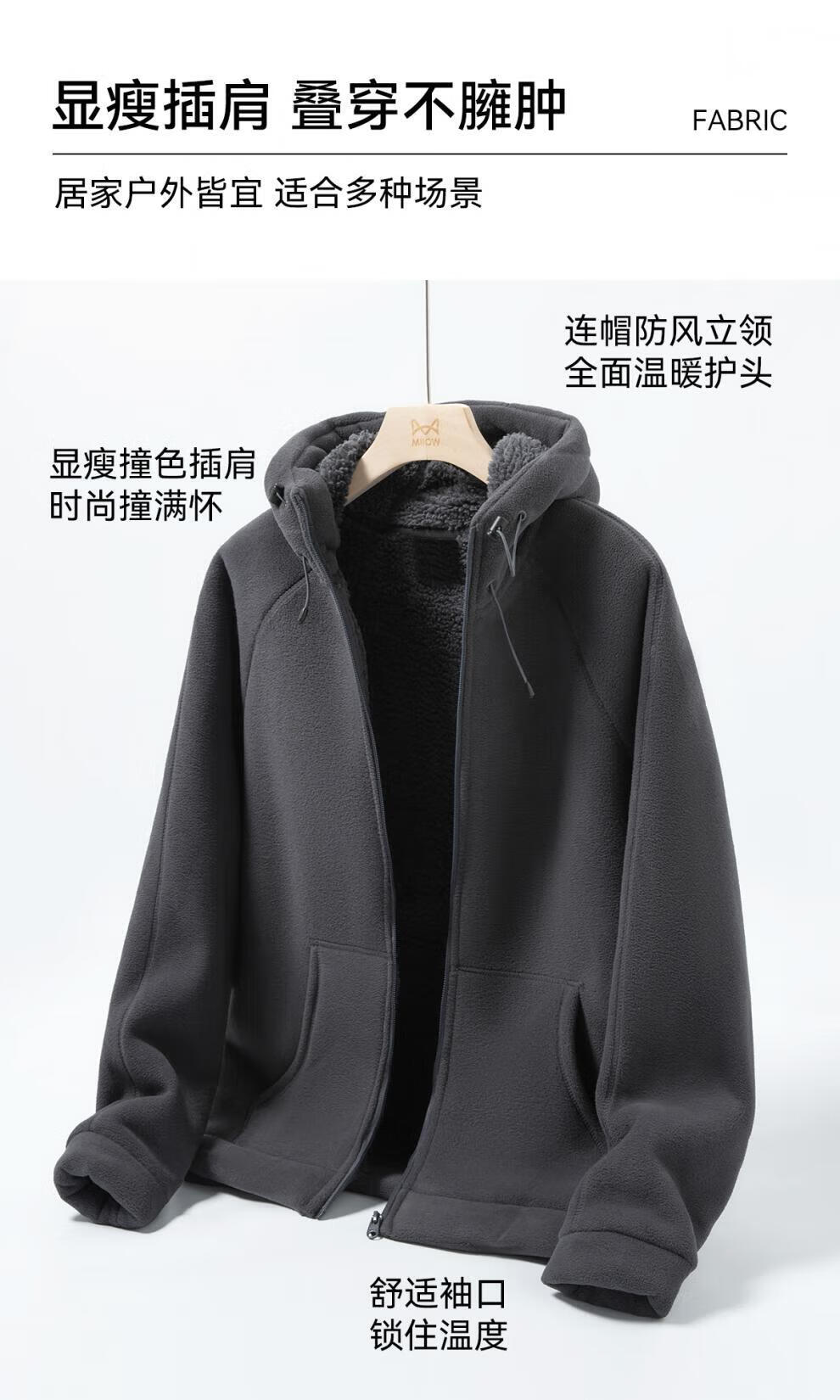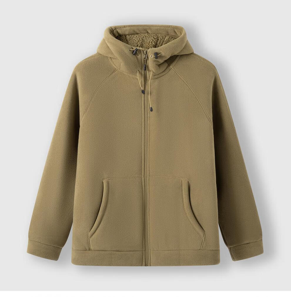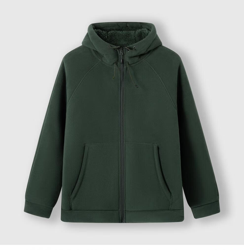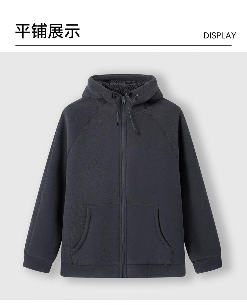 JEEP SPIRIT Sherpa Jacket Men's Autumn and Winter Plus Velvet Thickened Polar Fleece Casual Jacket Hooded Fleece Jacket Polar Fleece-Black Regular L