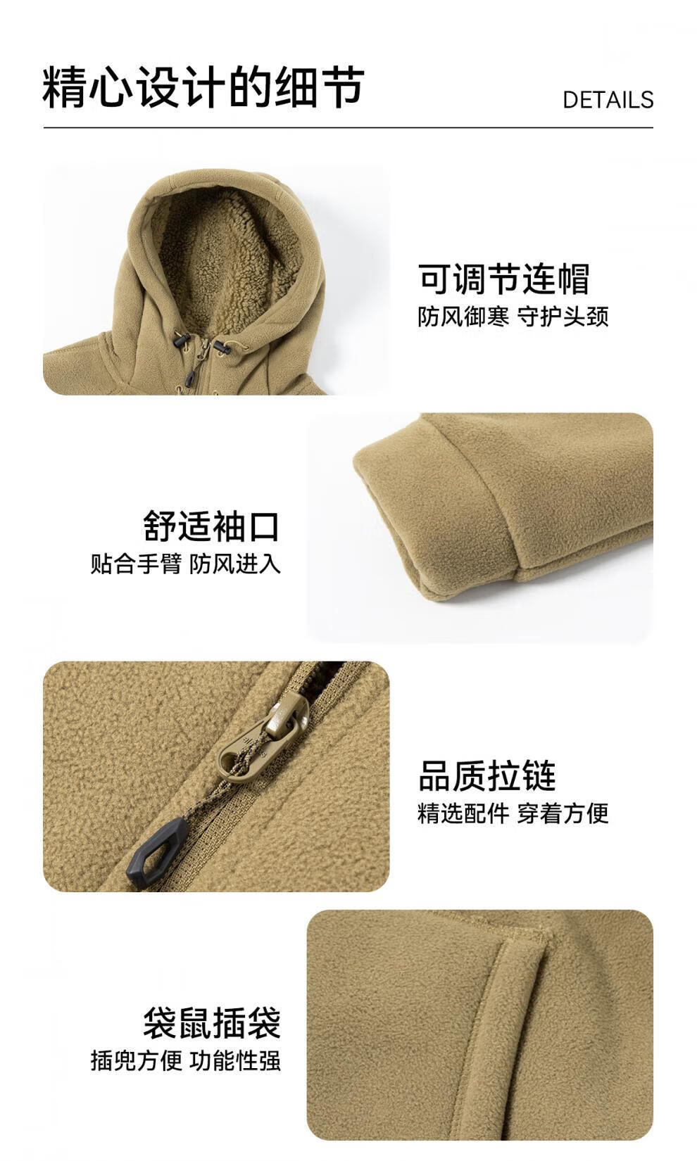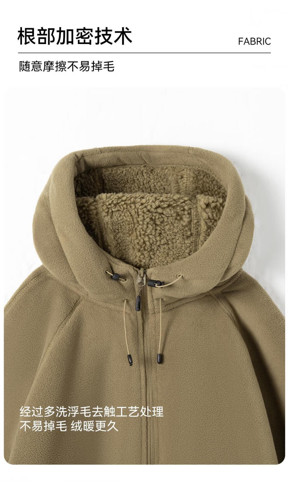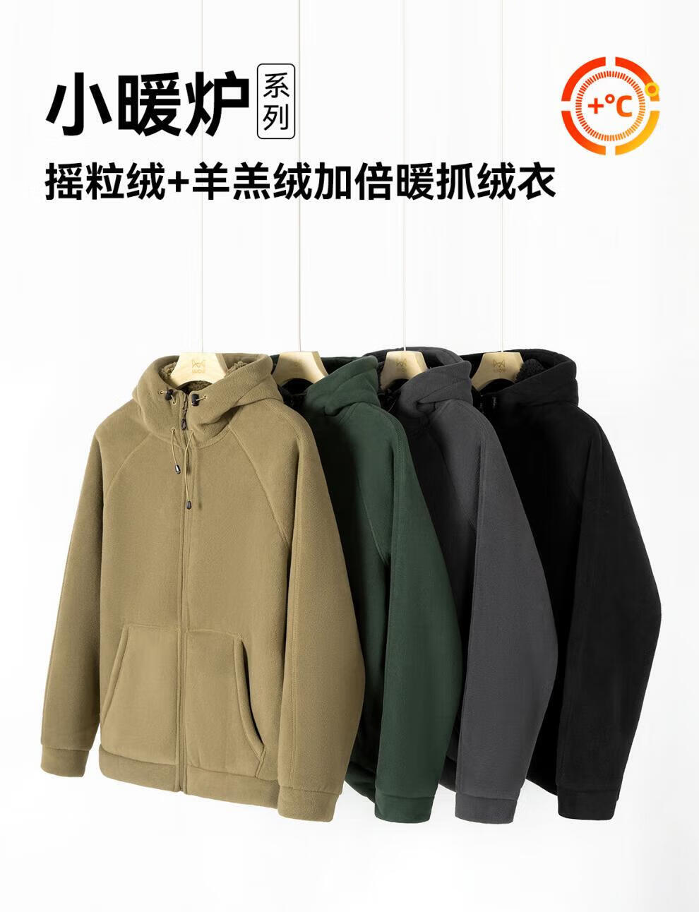 JEEP SPIRIT Sherpa Jacket Men's Autumn and Winter Plus Velvet Thickened Polar Fleece Casual Jacket Hooded Fleece Jacket Polar Fleece-Black Regular L