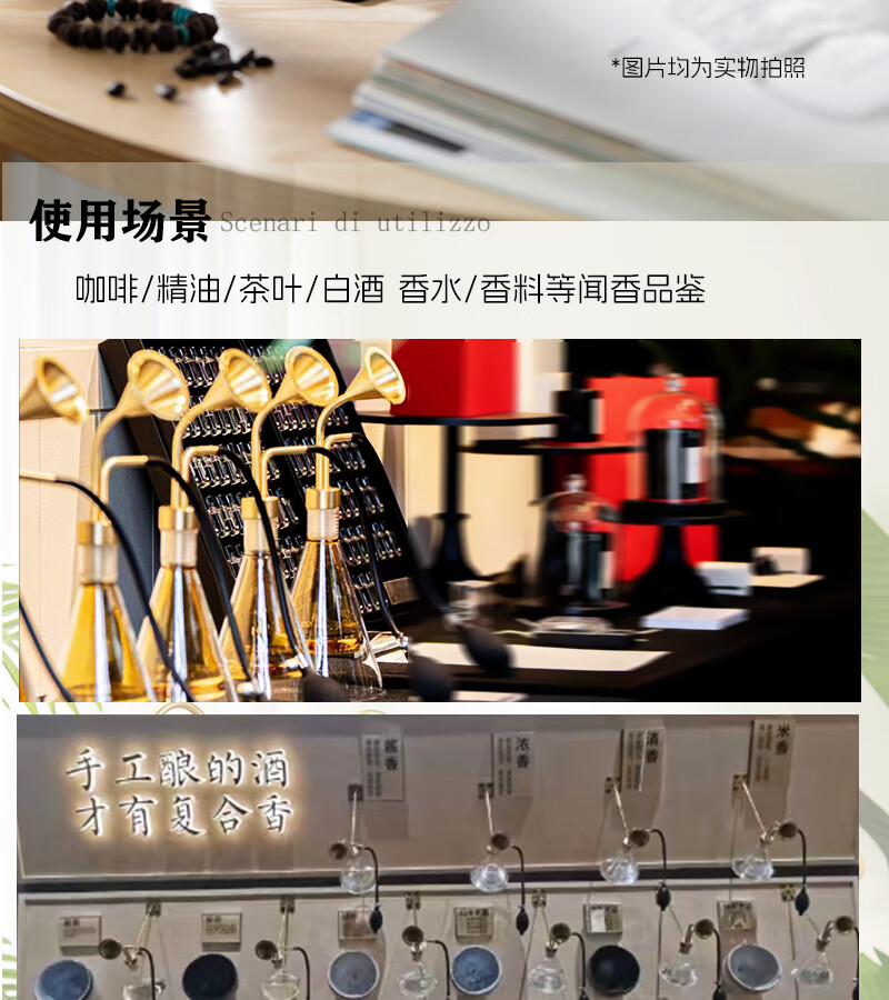JINGWAN Scent Coffee Scent Bottle Essential Oil Display Liquor Tasting Scent Bottle Perfume Tea Tangerine Peel Smell Scent Glass Double Layer Transparent + Iron Base High Quality
