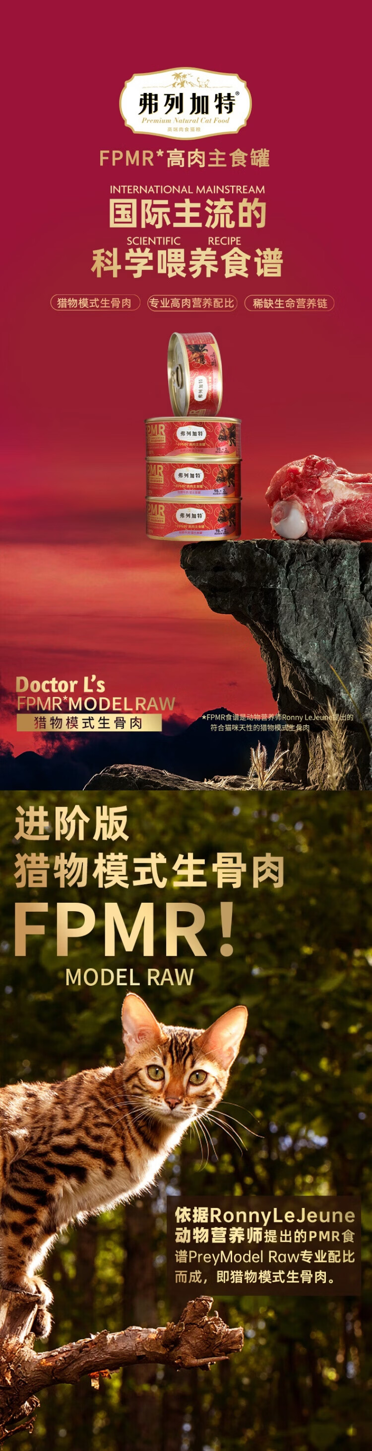 Fregate 98% raw bone and meat FPMR raw bone and meat full-price staple food canned cat canned general staple food canned wet food for adult cats and young cats single can bison flavor