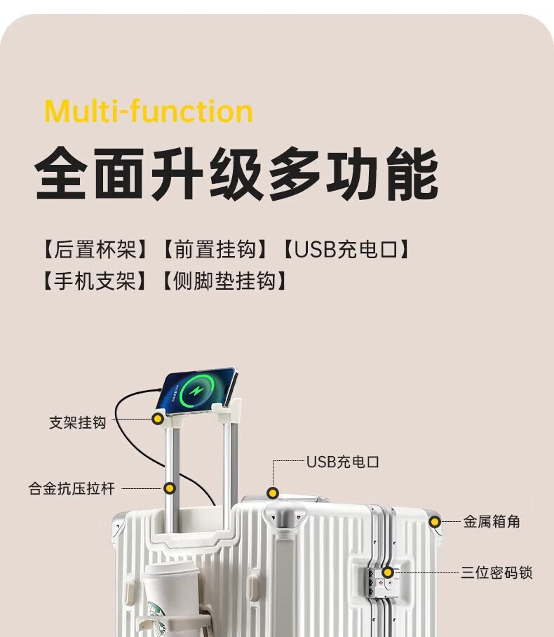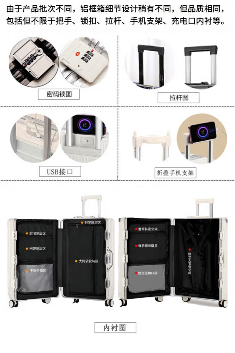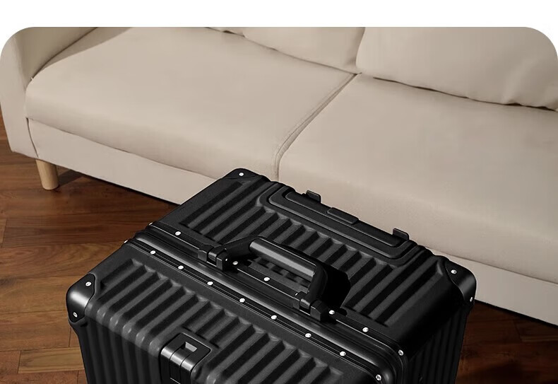 Large-capacity suitcase, multi-functional suitcase, high-looking aluminum frame trolley case, universal wheel password box for male and female students, black 30 inches