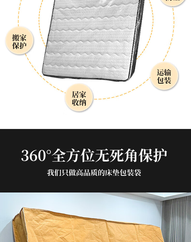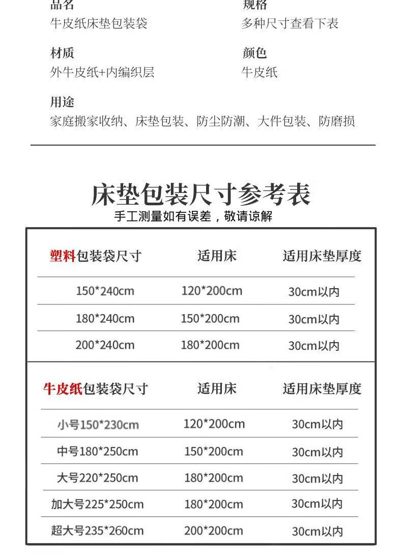 Jingxianju mattress packing bag packing bag moving mattress protective cover kraft paper thickened outer packaging 1.8x2m special bag kraft paper bag medium size 180*250cm suitable for 1.5m mattress