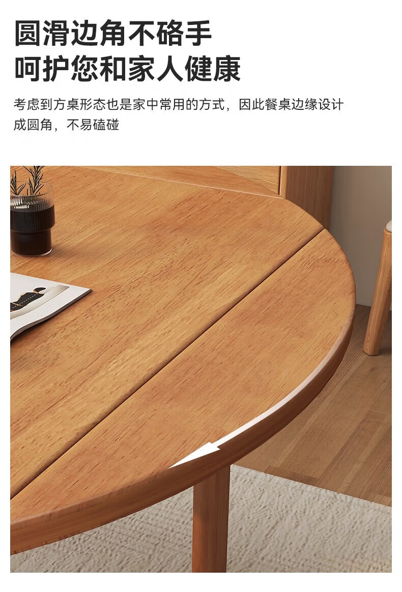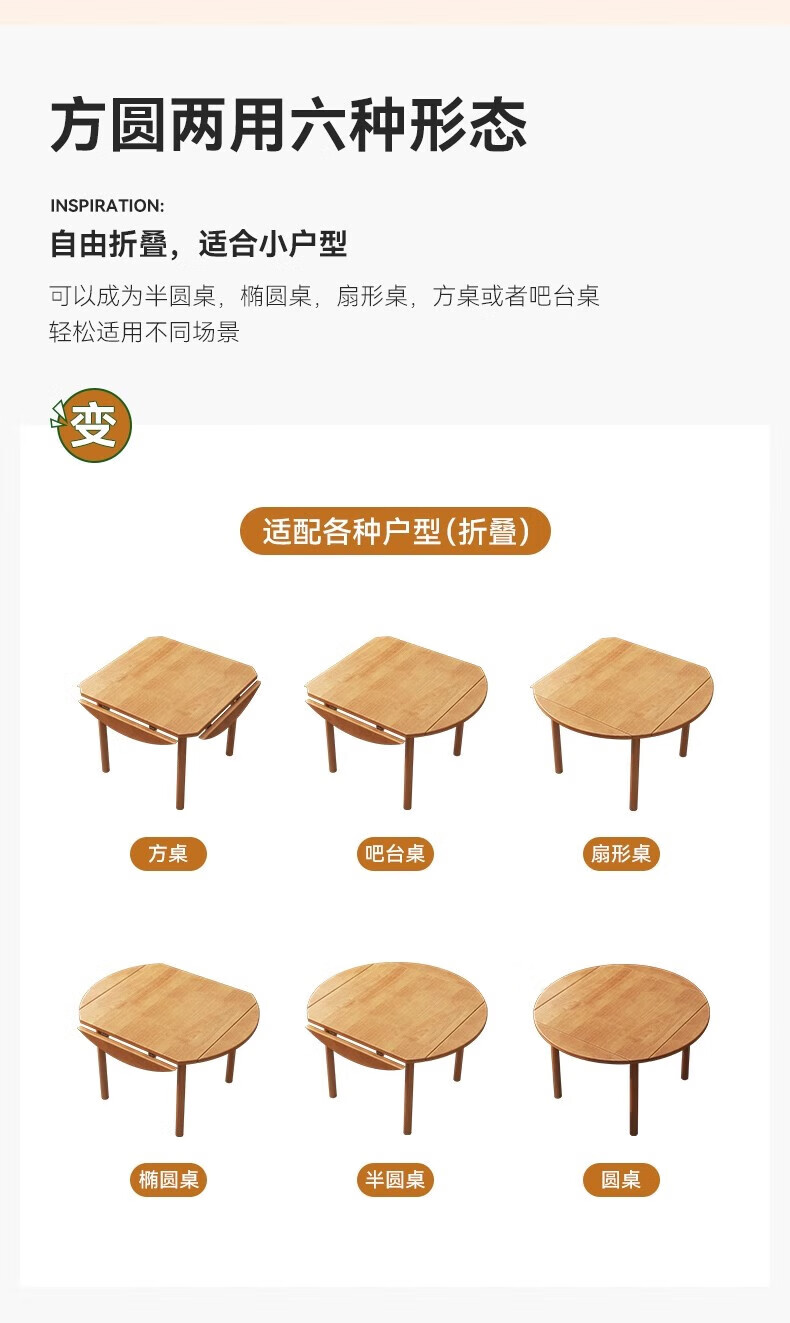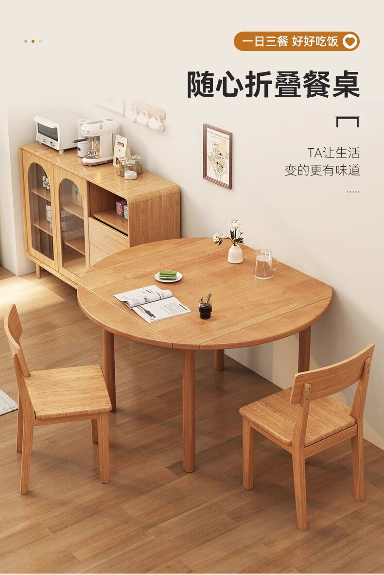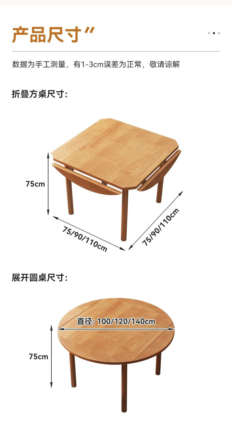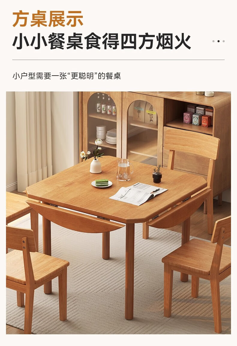 Solid wood folding dining table for small apartments, square table to round table, round square, multi-functional telescopic dining table, four-season island sideboard, solid wood color 80*80*95CM