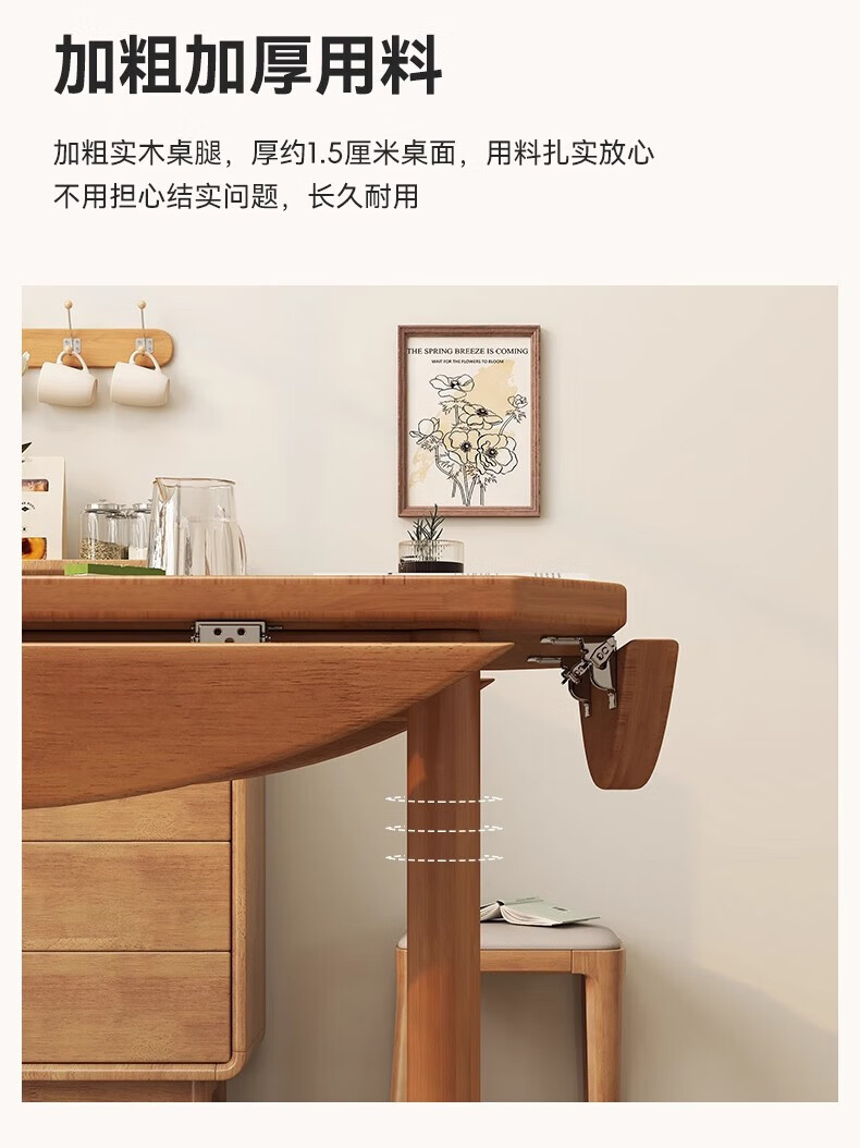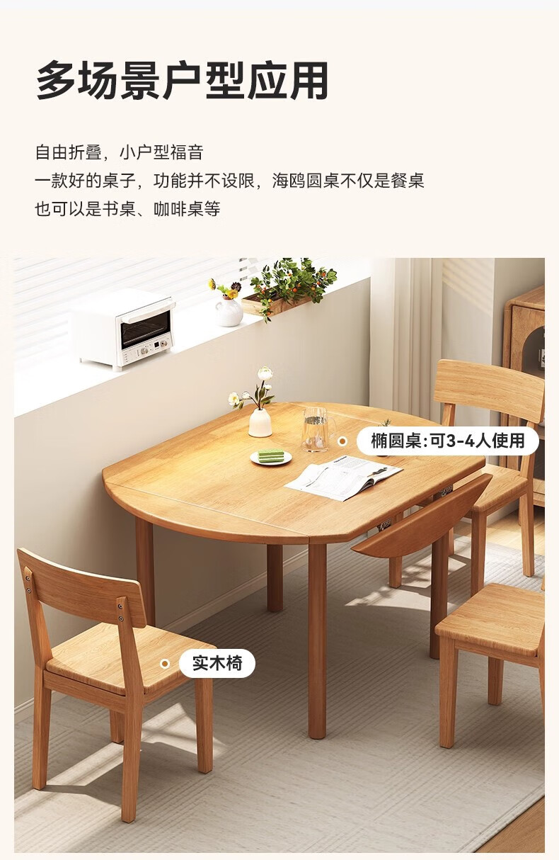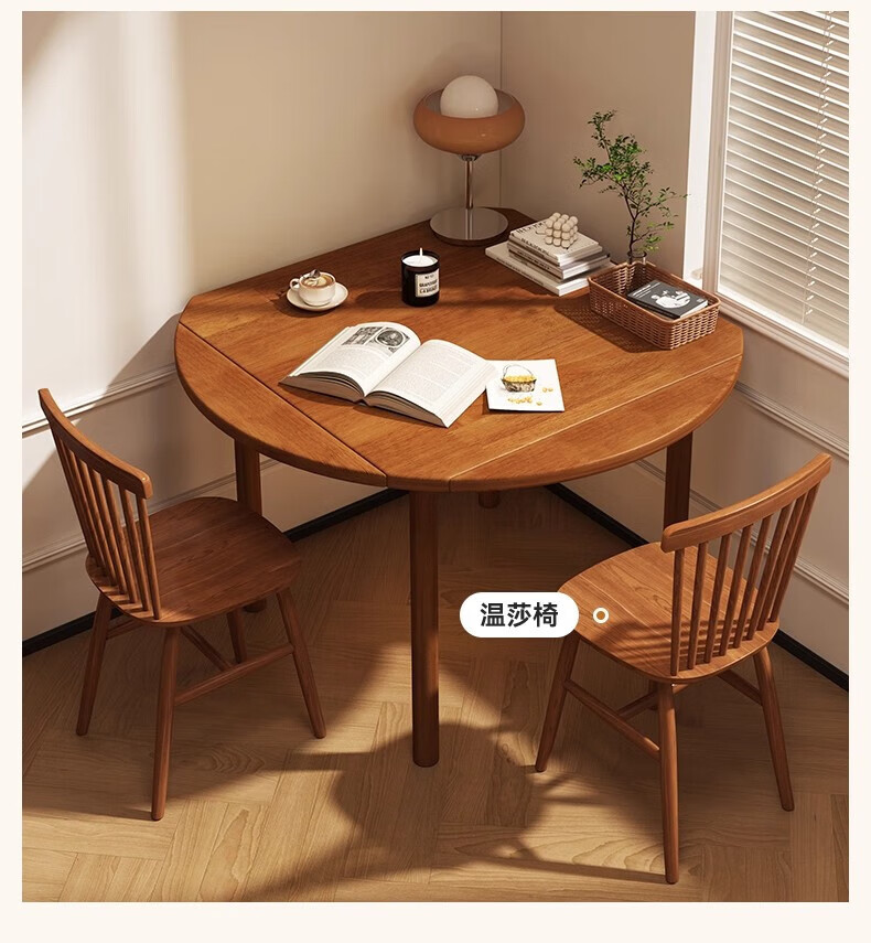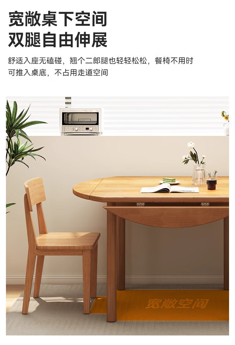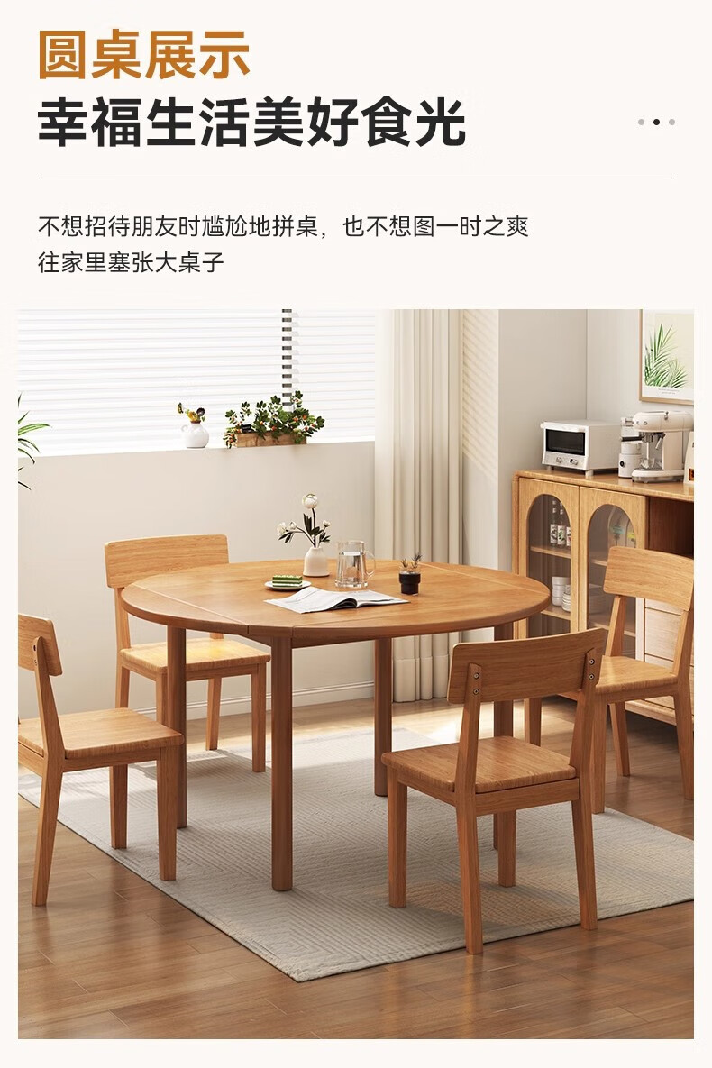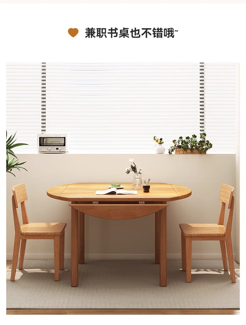 Solid wood folding dining table for small apartments, square table to round table, round square, multi-functional telescopic dining table, four-season island sideboard, solid wood color 80*80*95CM