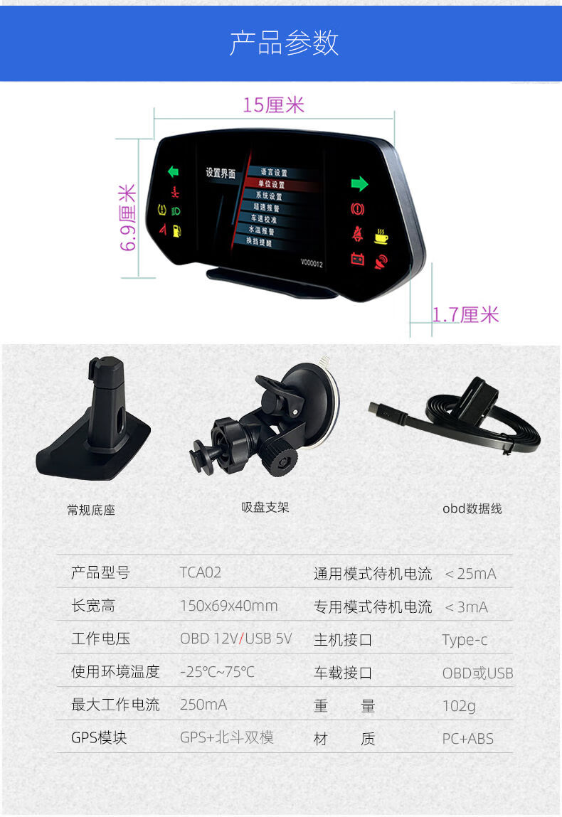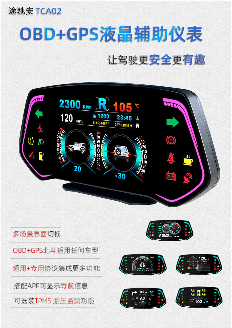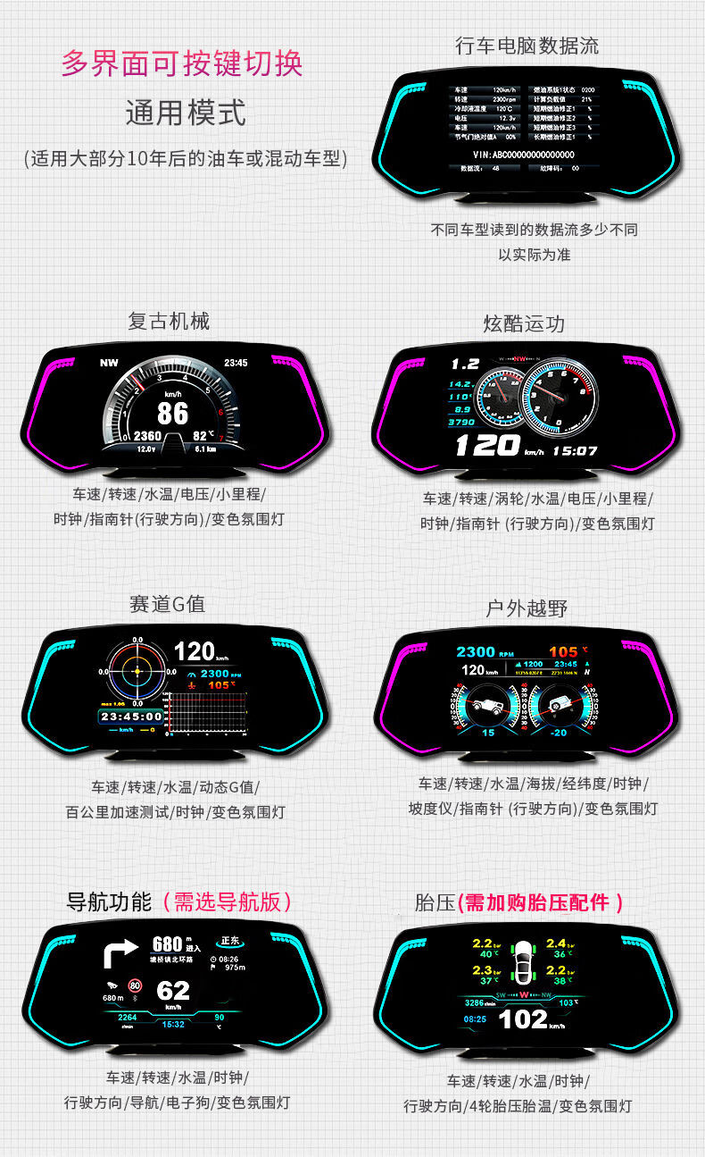 Car HUD head-up display GPS navigation car multi-function OBD speed fuel consumption gradient tire pressure meter universal standard version OBD + USB three OBD