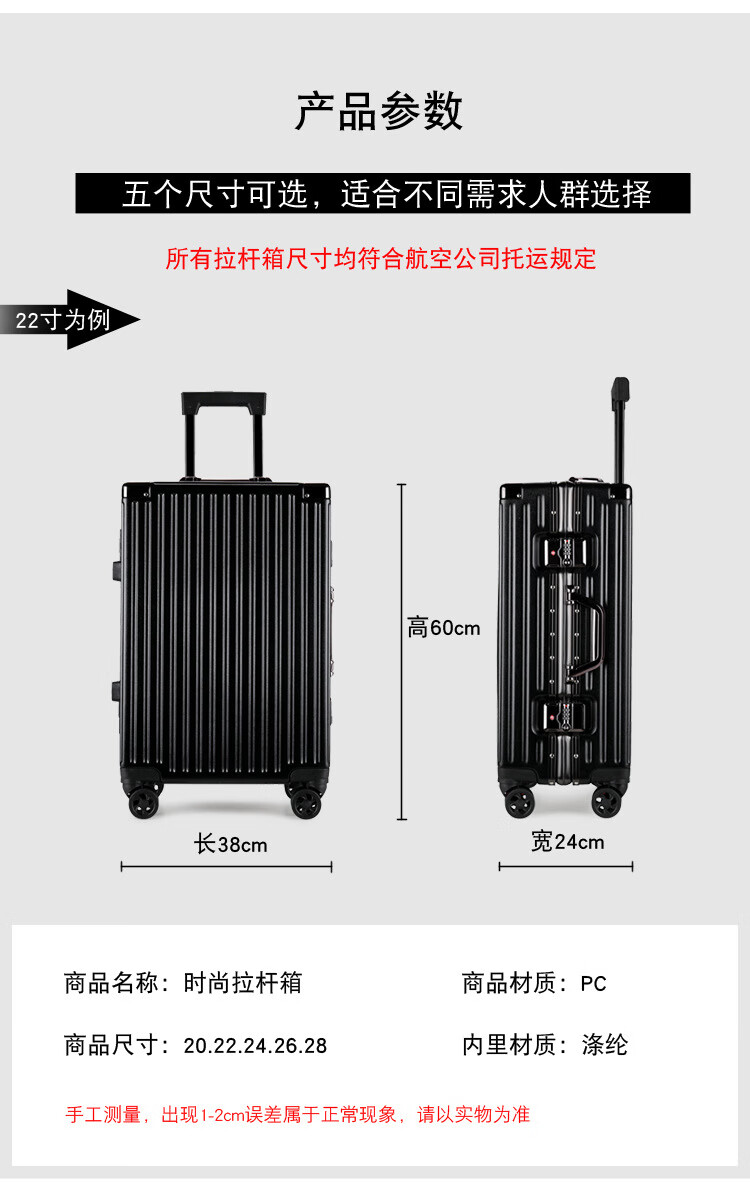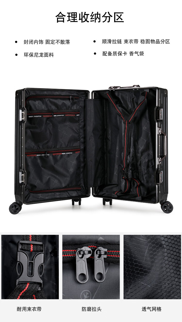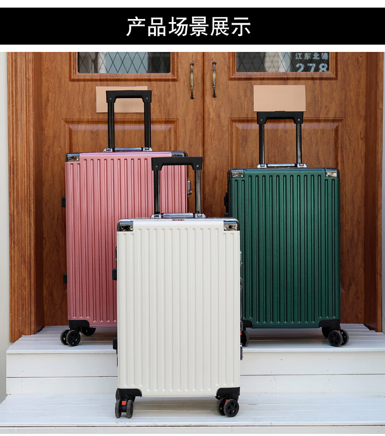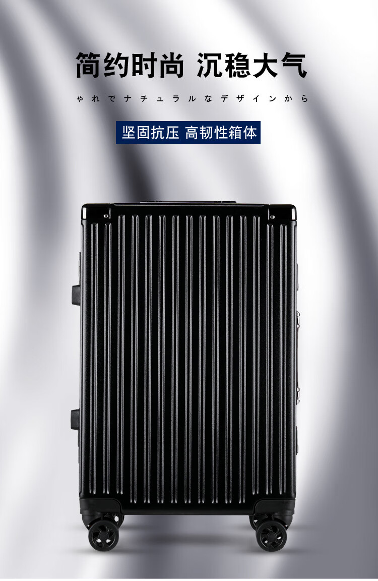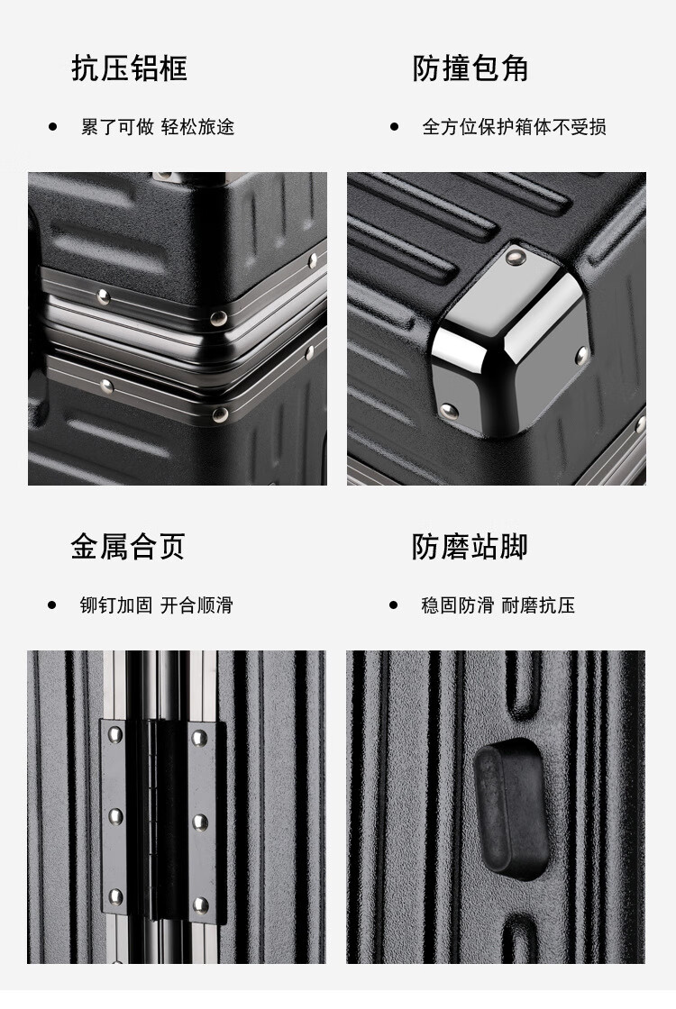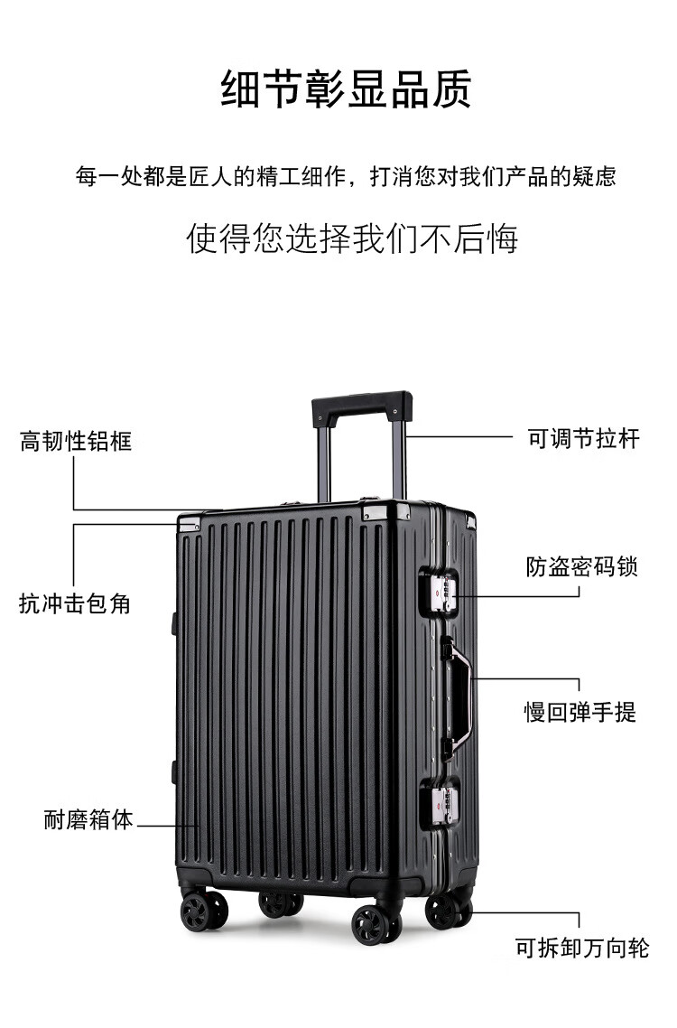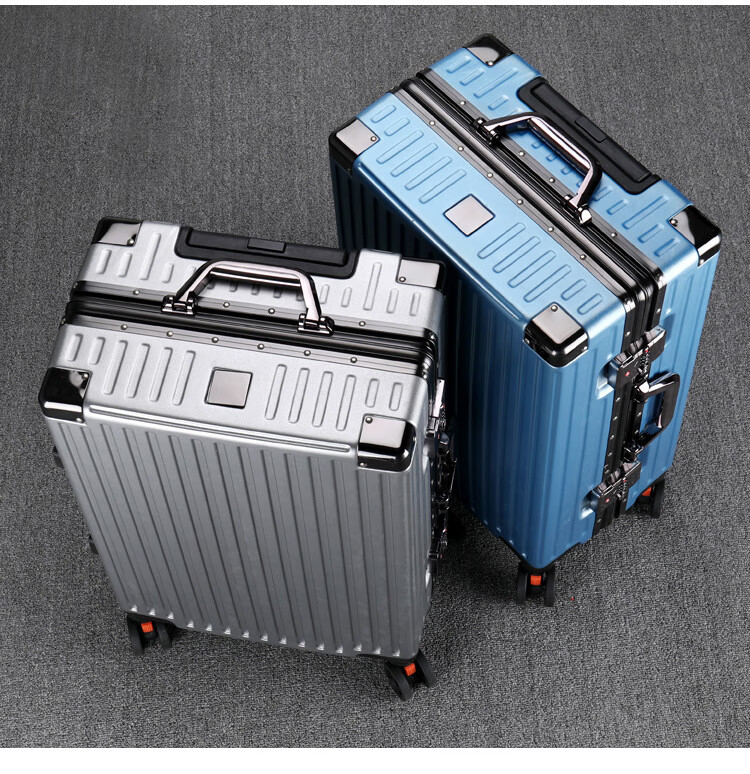 Aluminum frame suitcase for men, large capacity trolley case for women, strong and durable password box, thickened travel suitcase, gray 26 inches