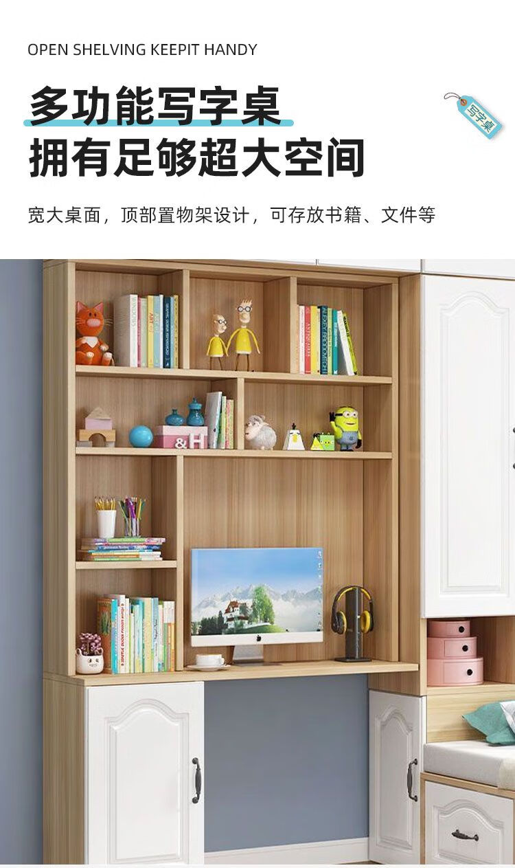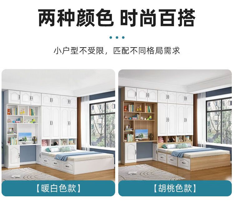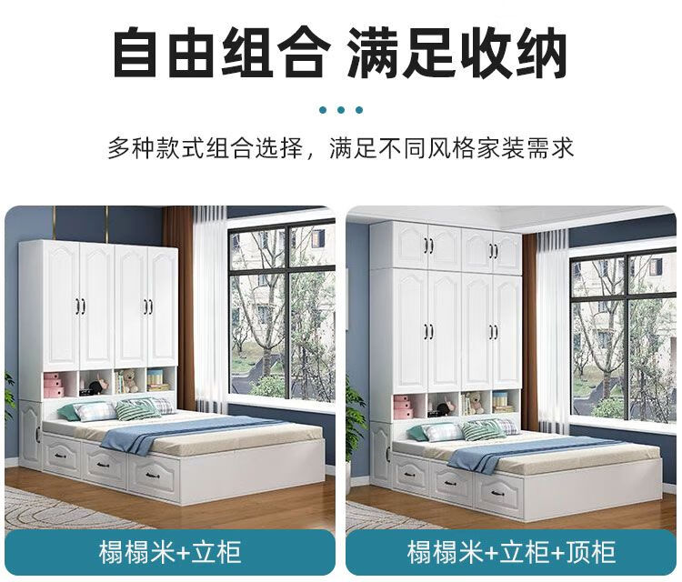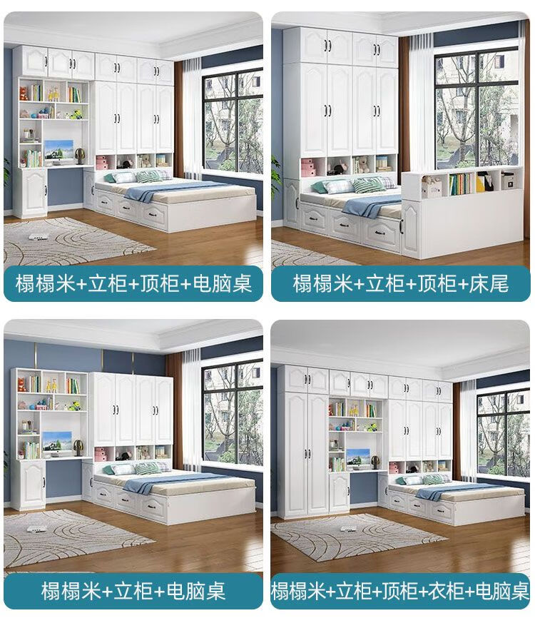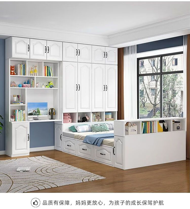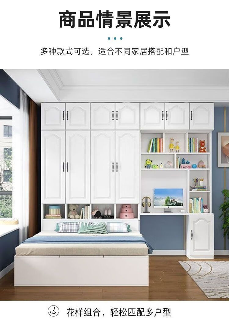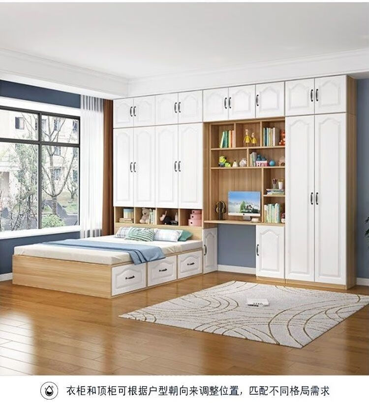 Yusenyi Tatami Wardrobe and Bed Cabinet Integrated Combination Clothes Cabinet Desk Wardrobe Small Apartment Multifunctional Hollow Children's Bed Solid Wood Tatami + Standing Cabinet + Desk + Mattress 1.2m*2m