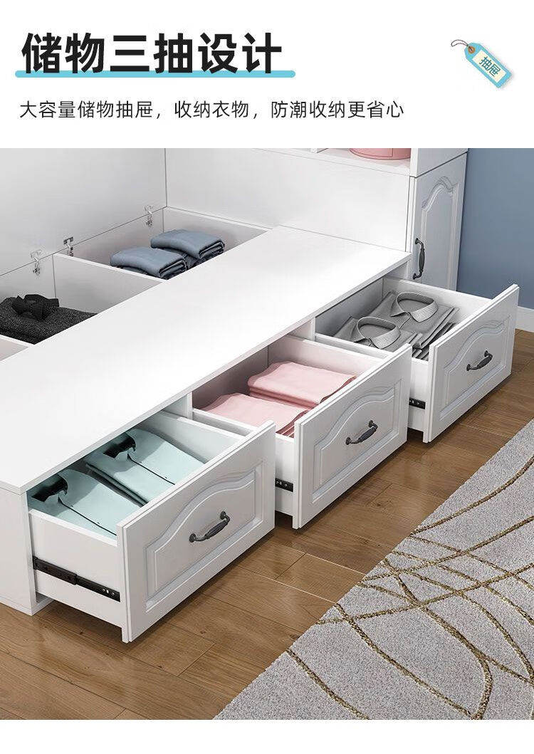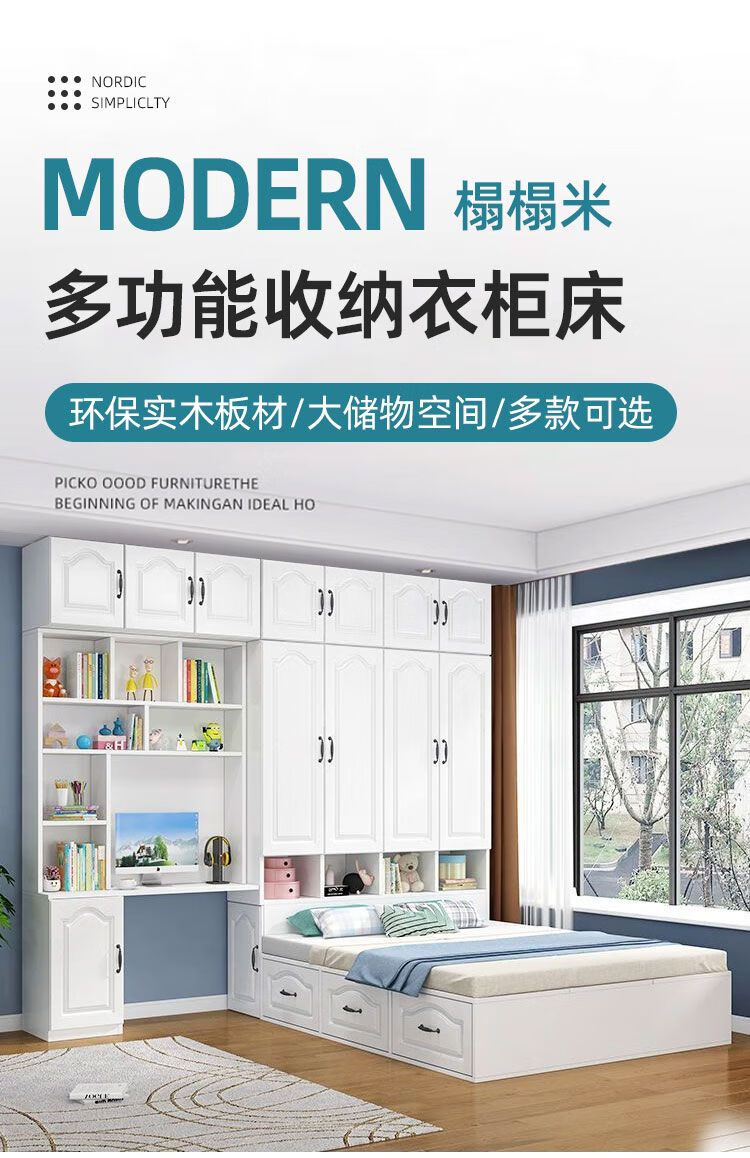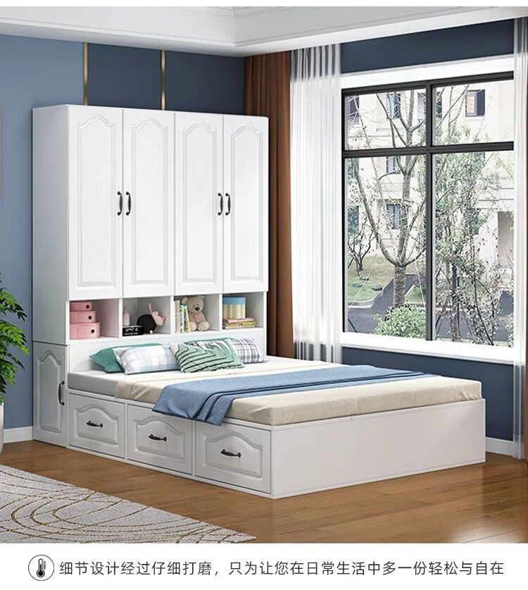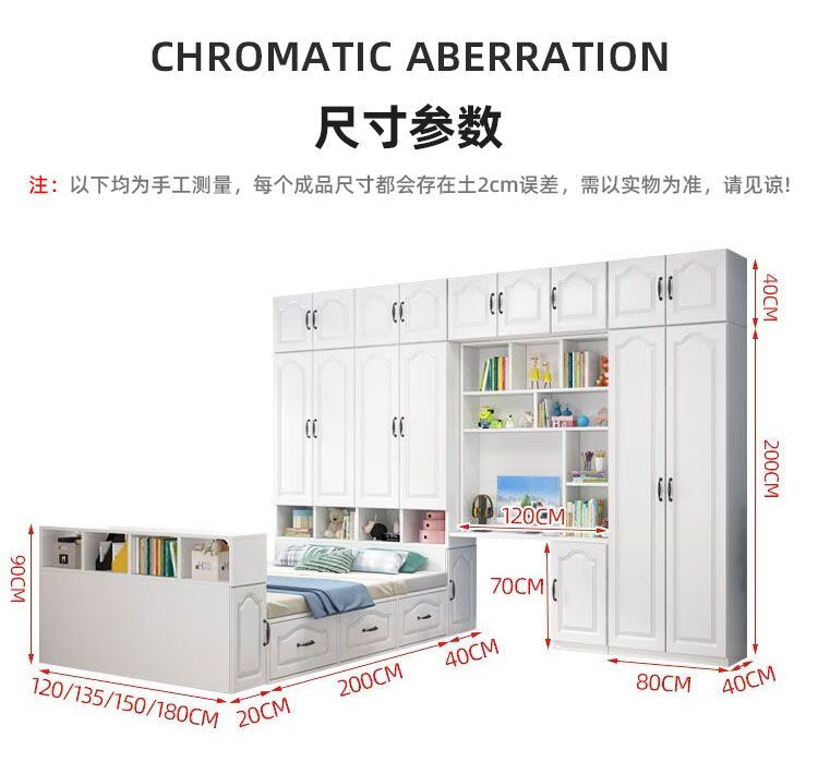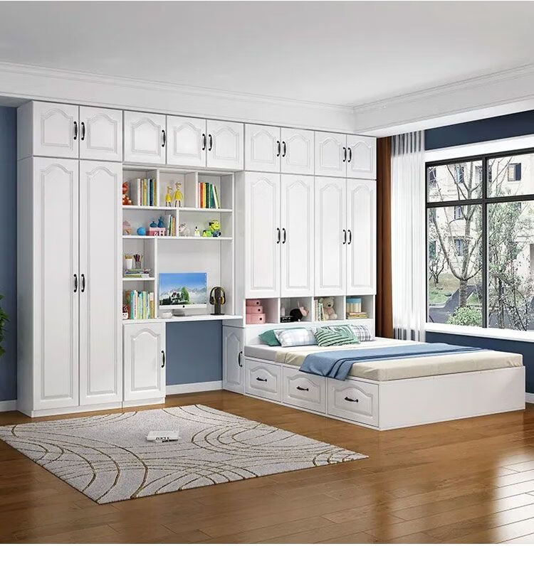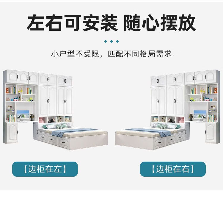 Yusenyi Tatami Wardrobe and Bed Cabinet Integrated Combination Clothes Cabinet Desk Wardrobe Small Apartment Multifunctional Hollow Children's Bed Solid Wood Tatami + Standing Cabinet + Desk + Mattress 1.2m*2m