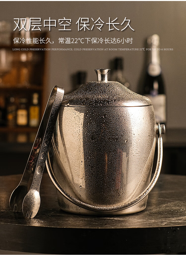 Shantou Lincun double-layer stainless steel ice bucket filled with ice cubes household red wine champagne bucket style ice storage insulation bucket with lid storage bucket ice storage bucket small silver