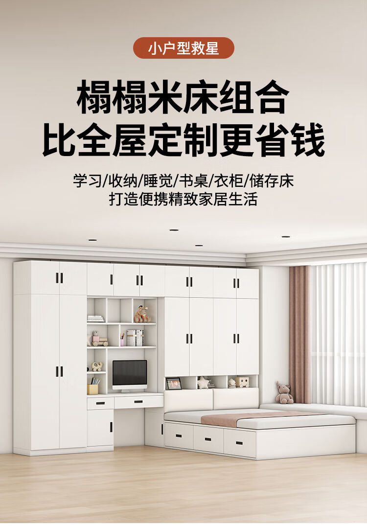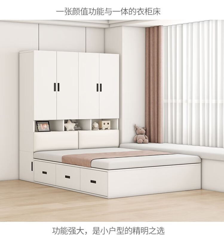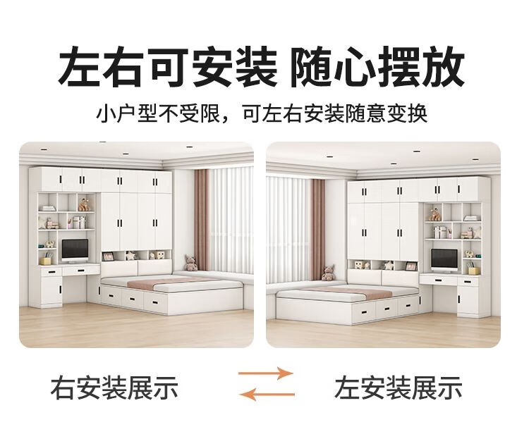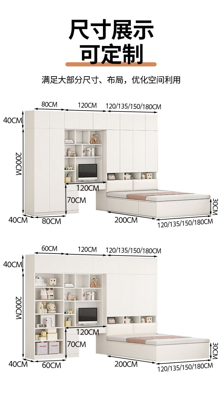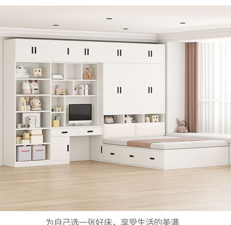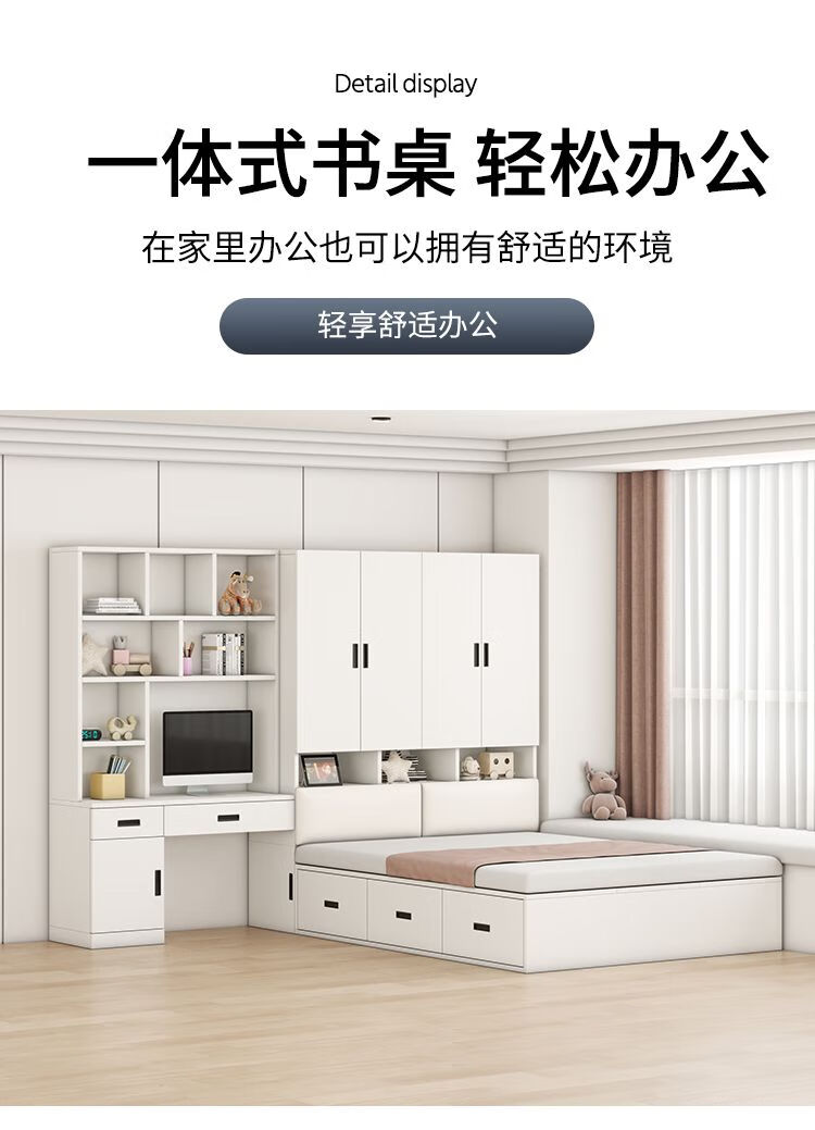 Yusenyi Tatami Small Apartment Bed Cabinet Integrated Wardrobe Desk Children's Bed Multifunctional Combination Storage Bed Bedroom Cloakroom White Tatami + Standing Cabinet + Computer Desk + Mattress 1800mm*2000mm