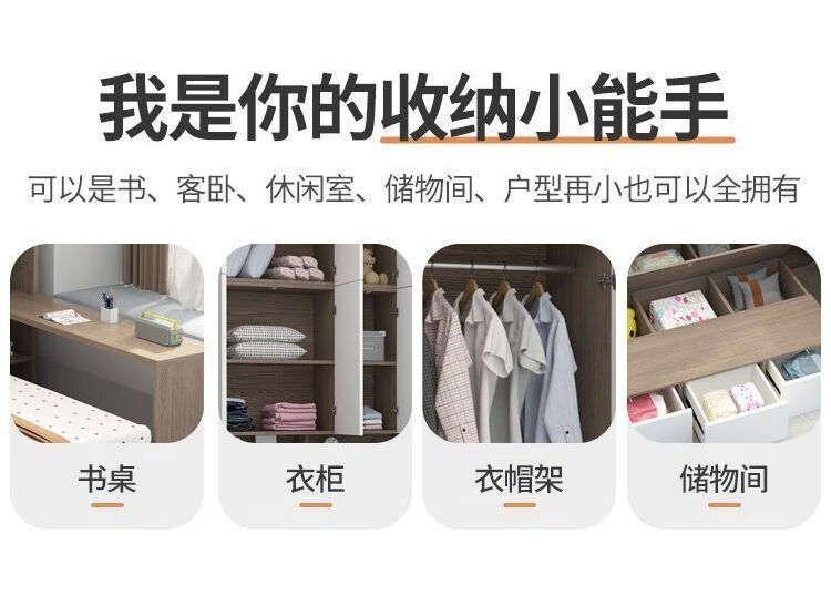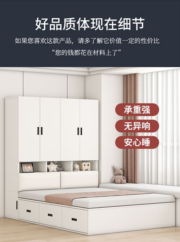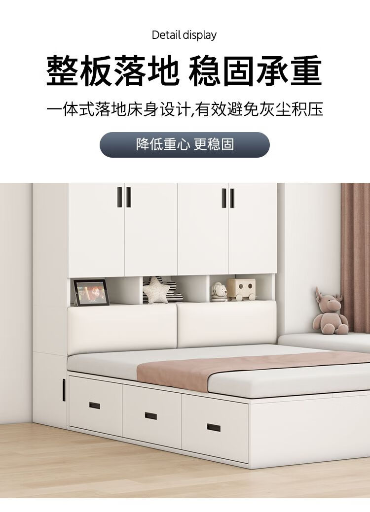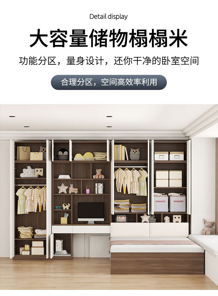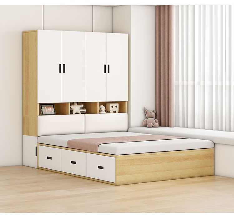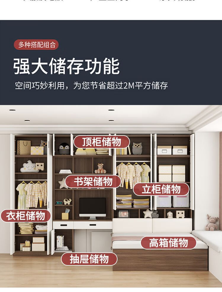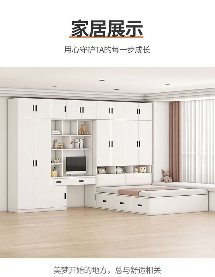 Yusenyi Tatami Small Apartment Bed Cabinet Integrated Wardrobe Desk Children's Bed Multifunctional Combination Storage Bed Bedroom Cloakroom White Tatami + Standing Cabinet + Computer Desk + Mattress 1800mm*2000mm