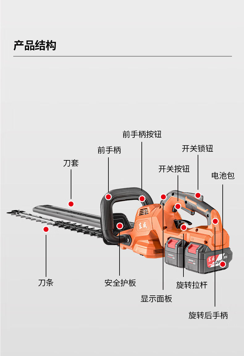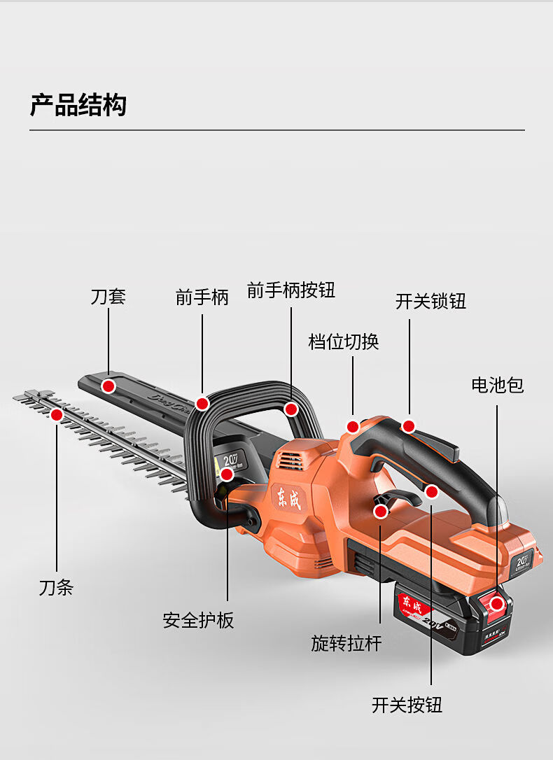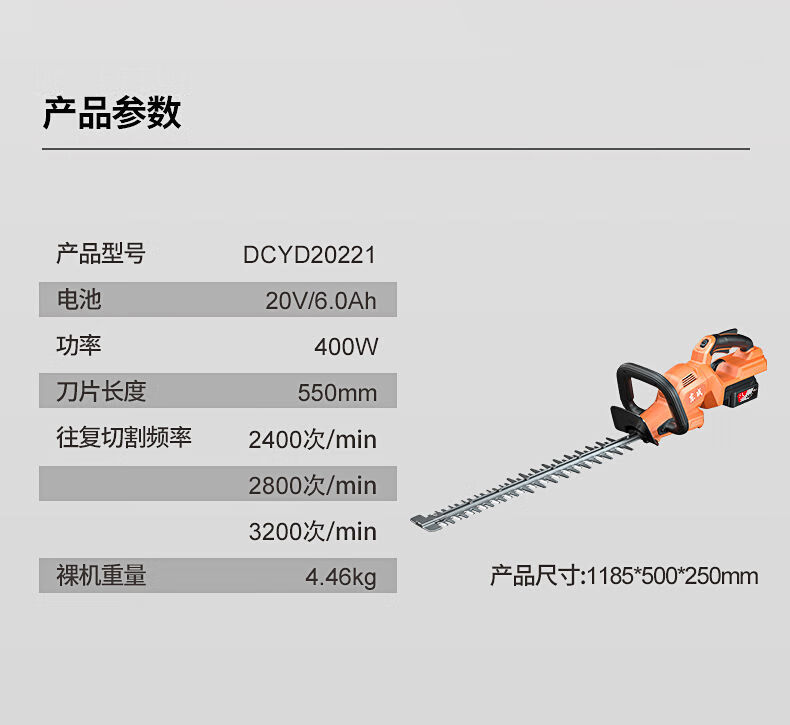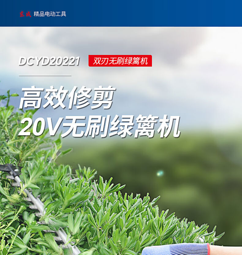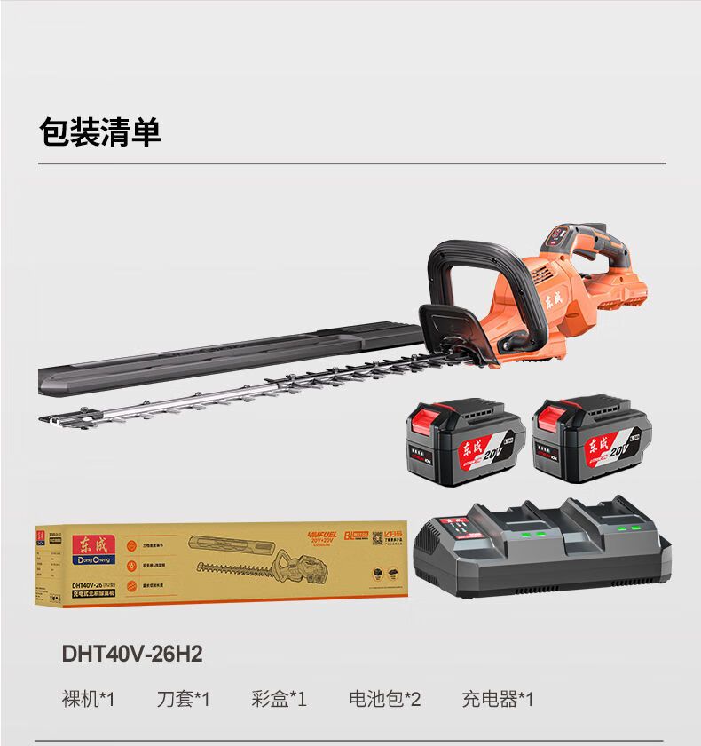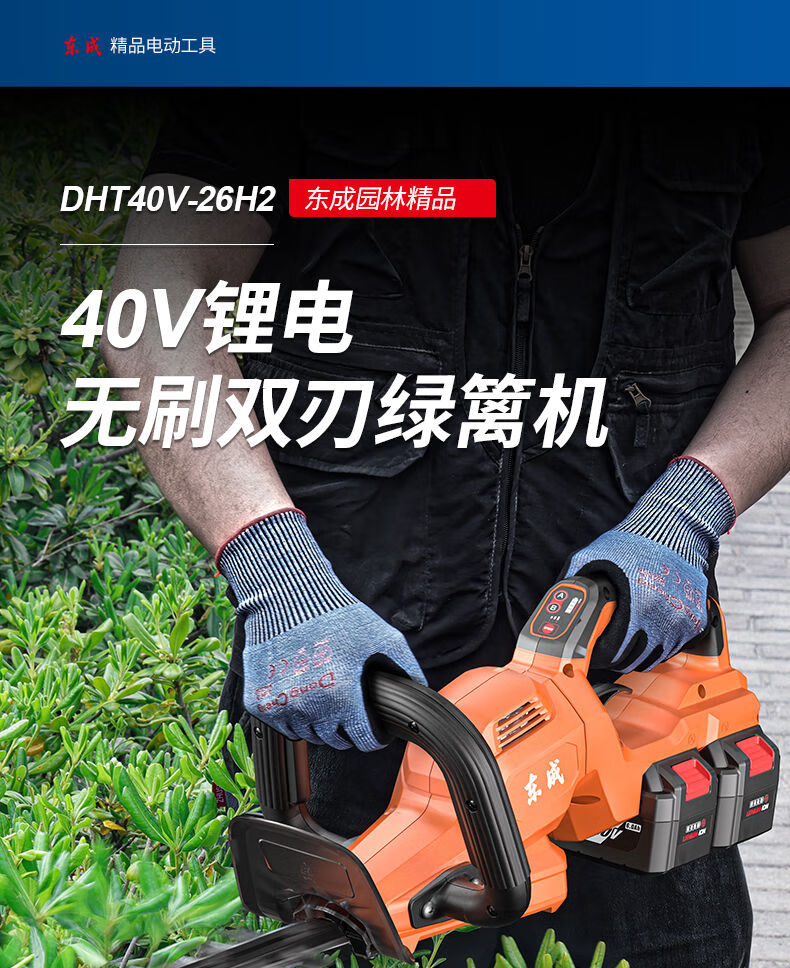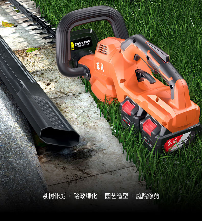 Dongcheng electric hedge trimmer 20V rechargeable lithium pruning shears for pruning green garden tea trees tea pruning machine 6 points 0Ah dual electric DHT40V-26H2
