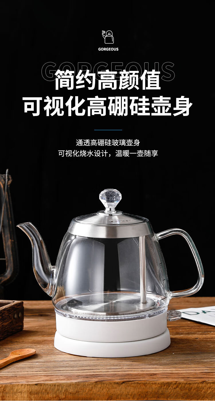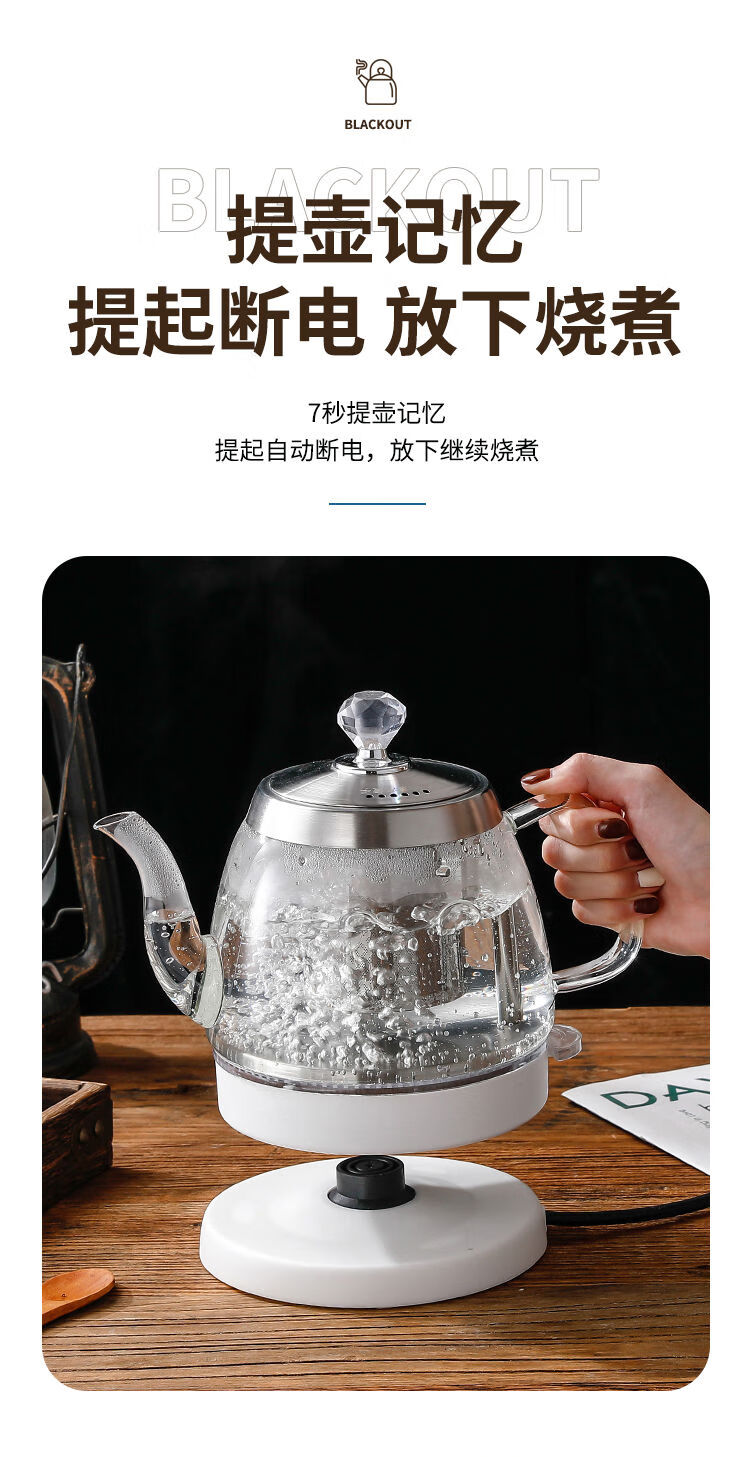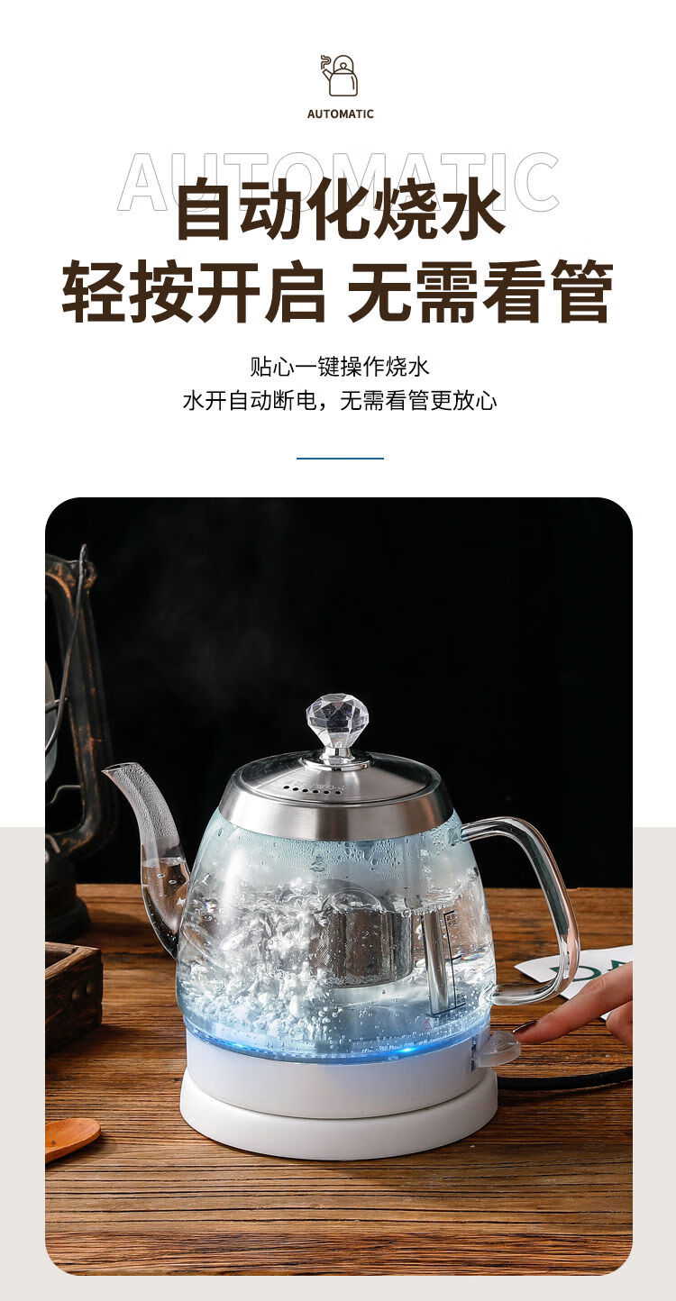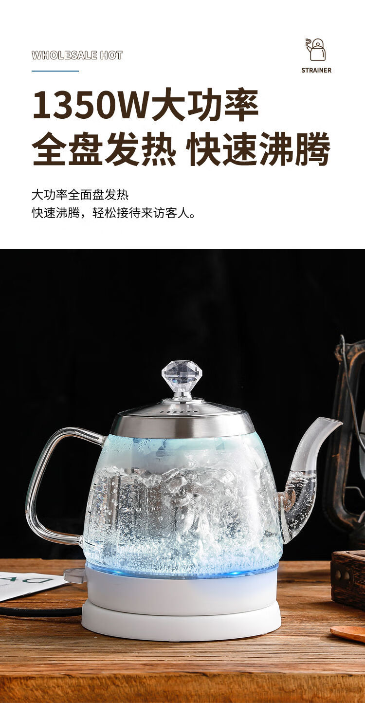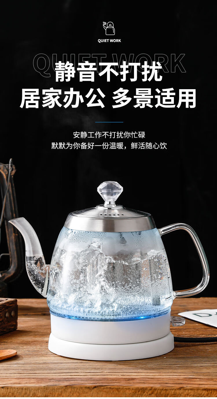 Glass quick-boil kettle, easy-to-make tea kettle, long mouth kettle, hotel special household kung fu tea boiling kettle 1ml special price