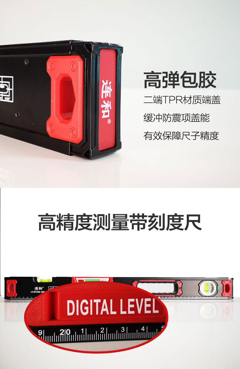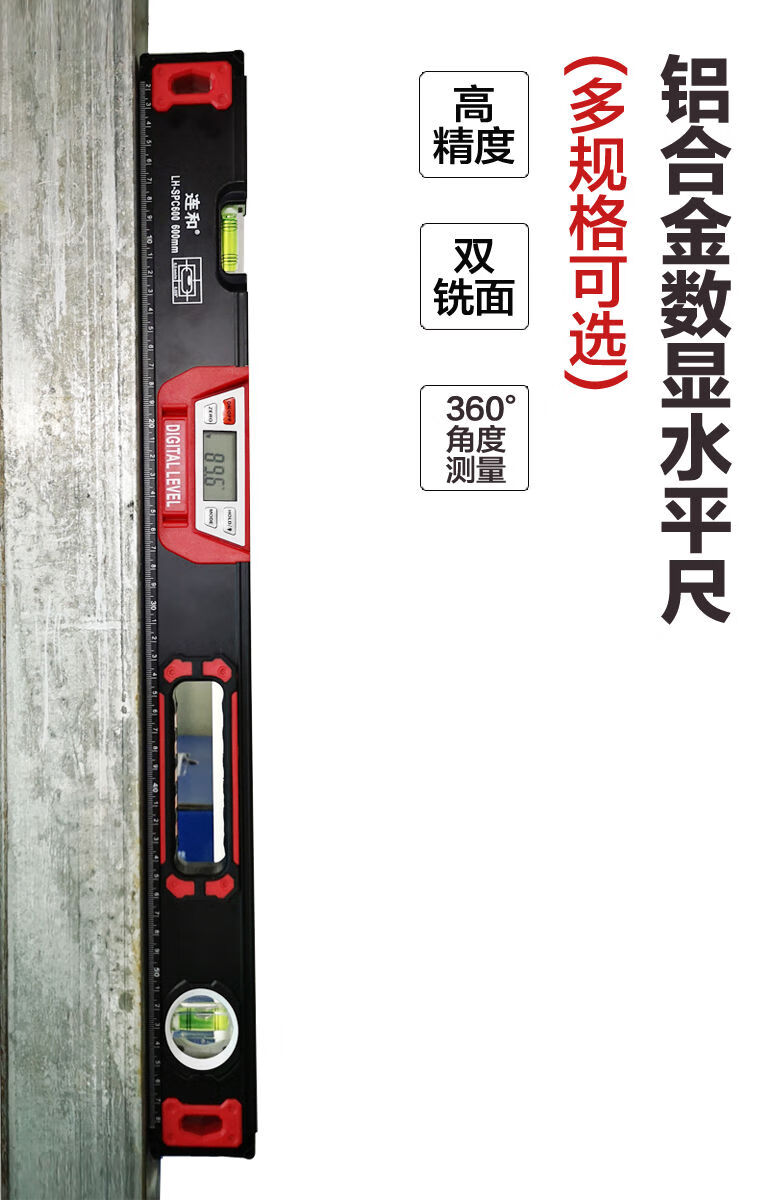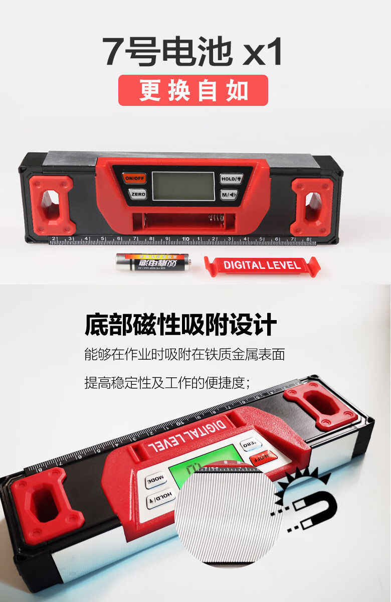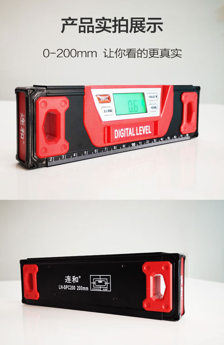 Lianhe strong magnetic digital level ruler slope ruler angle ruler electronic slope measuring instrument inclinometer digital level instrument 20cm digital display magnetic level ruler red and black