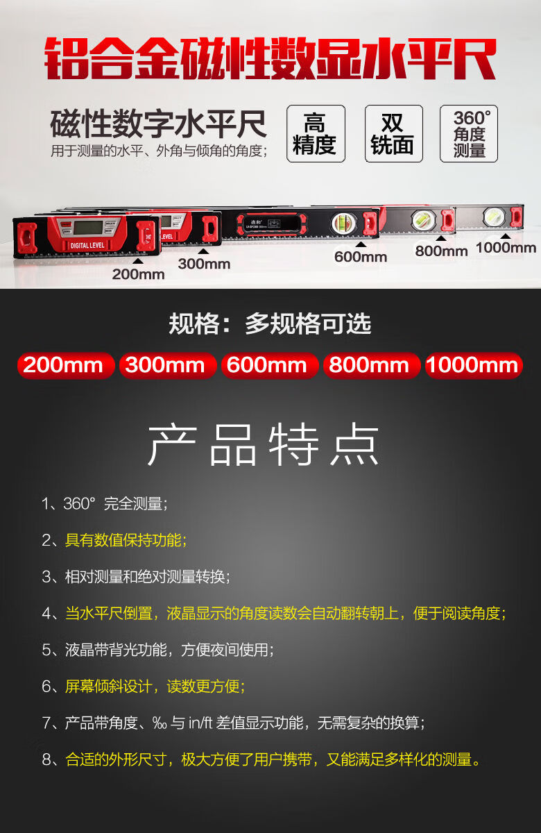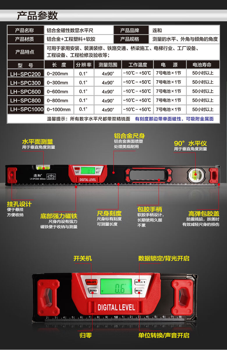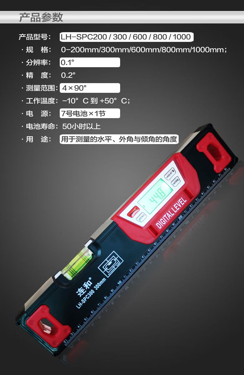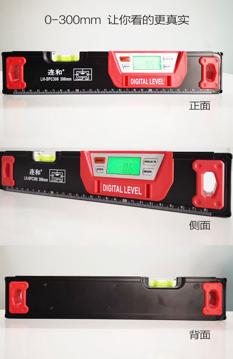 Lianhe strong magnetic digital level ruler slope ruler angle ruler electronic slope measuring instrument inclinometer digital level instrument 20cm digital display magnetic level ruler red and black