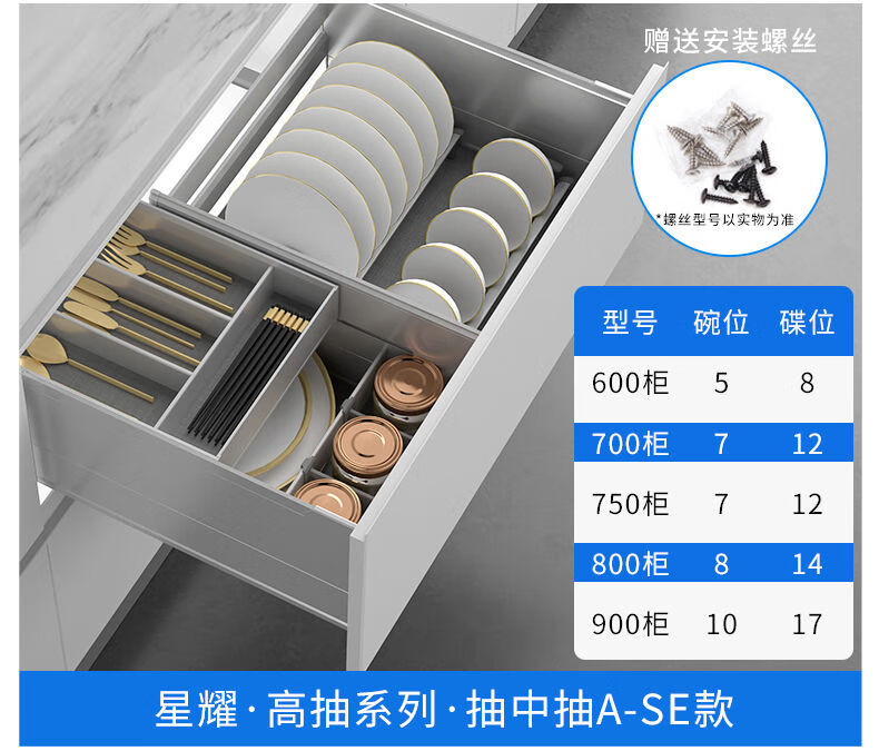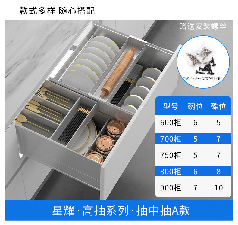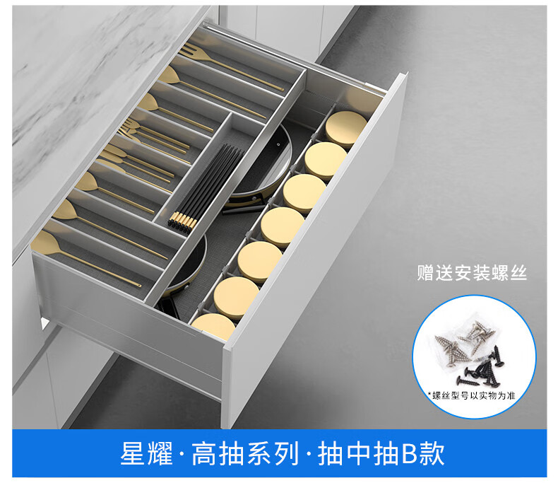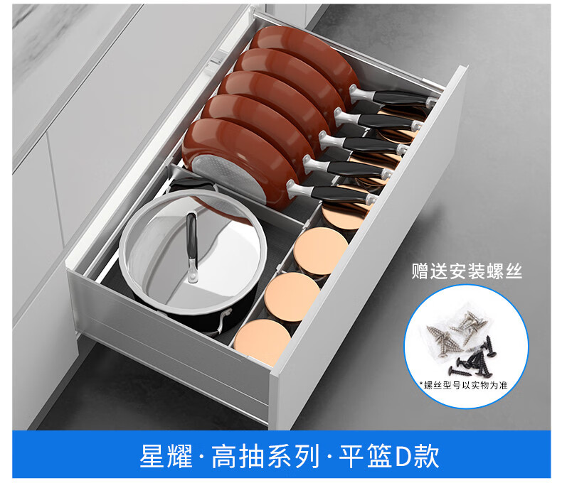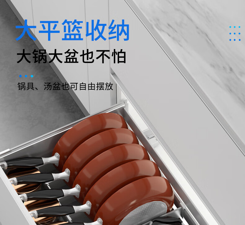 NISKO Kitchen Integrated Cabinet Space Aluminum Pull Basket Double-layer Drawer-type Pull-out Thickened GA07-A All-Aluminum Pull-out Basket Dishes Model 600