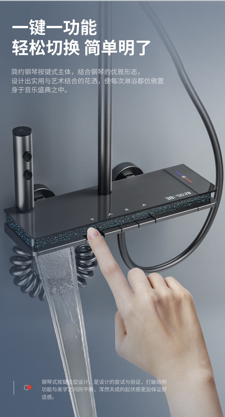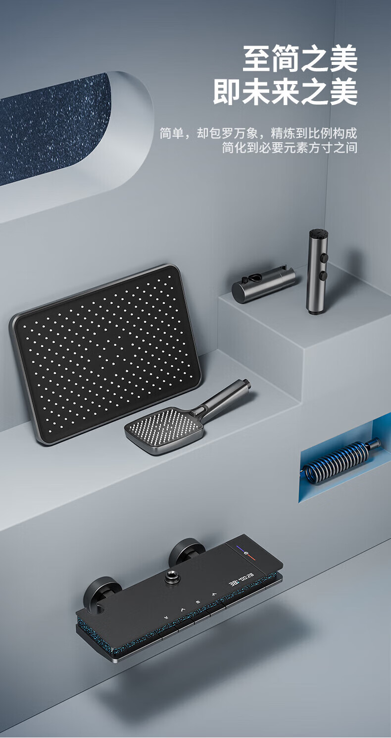 JOMOO shower head set all-copper intelligent constant temperature digital display supercharged home bathroom bath bath and bathroom complete set skateboard four-speed-round nozzle