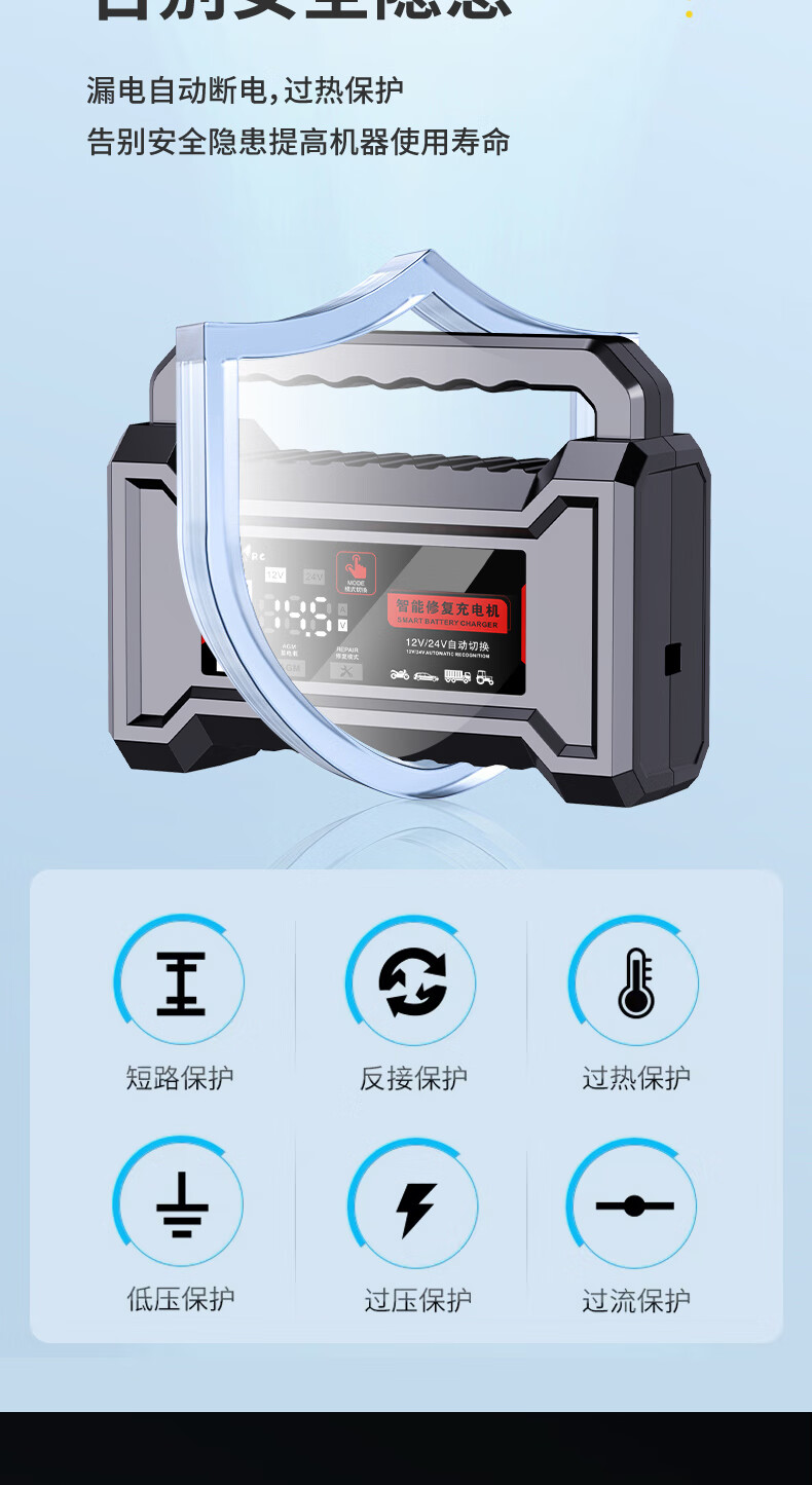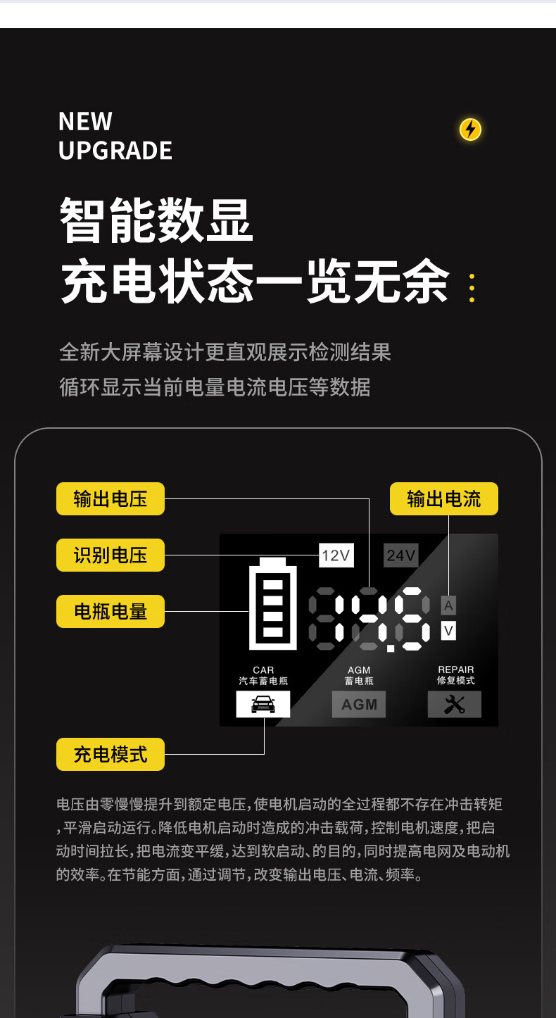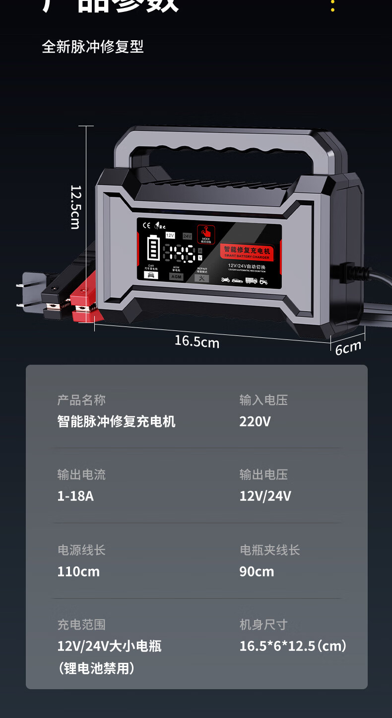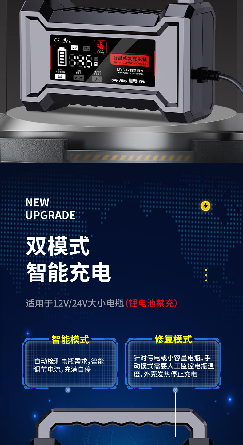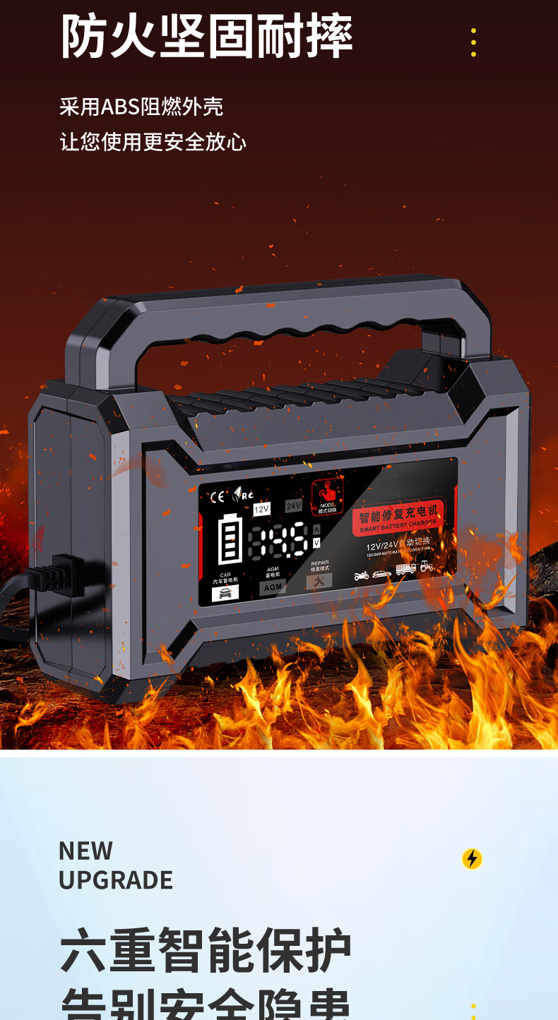 Car battery charger 12v24v universal pure copper fully automatic intelligent repair all-in-one machine fast full charge self-stop LED large screen display 200% improvement pulse repair + rapid activation