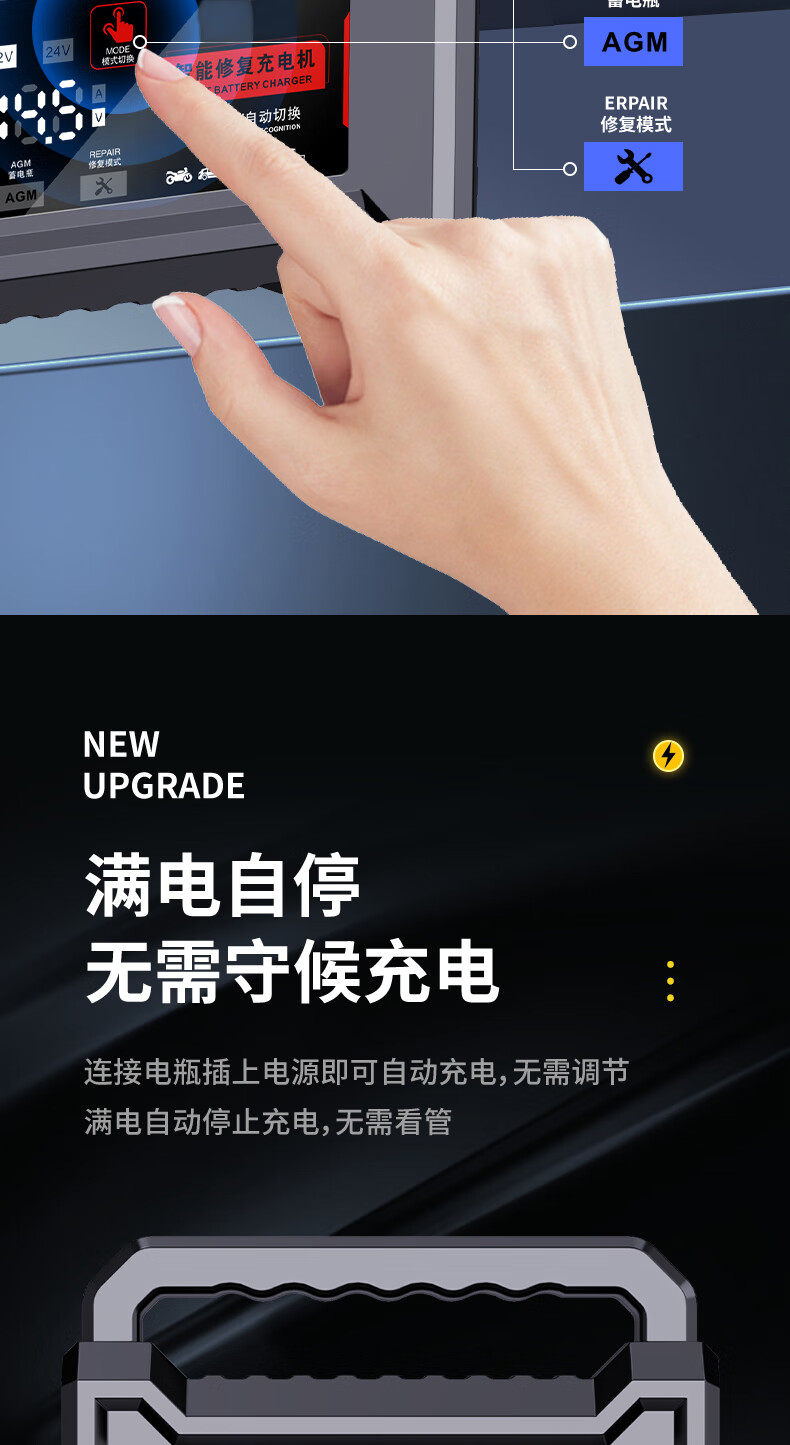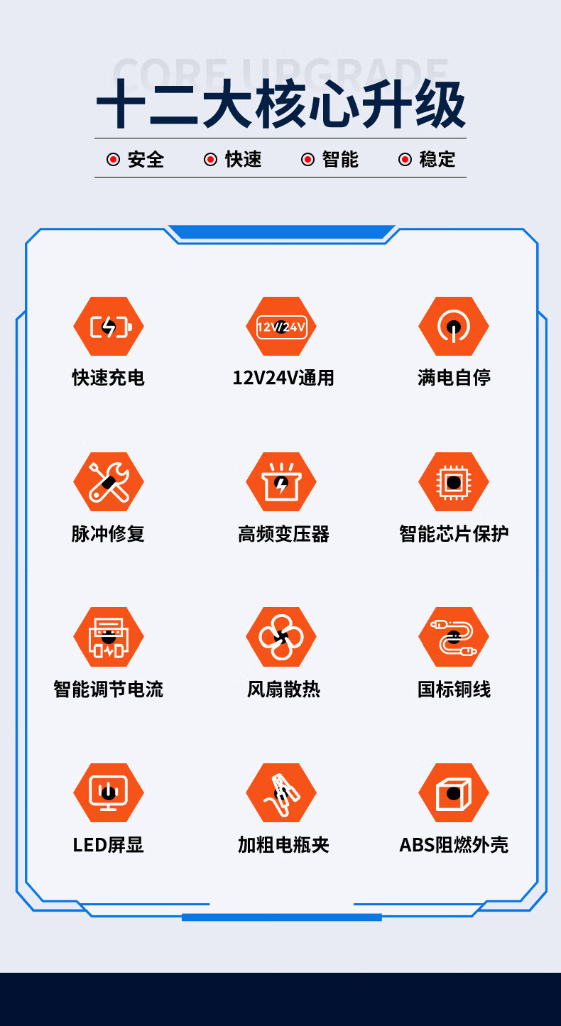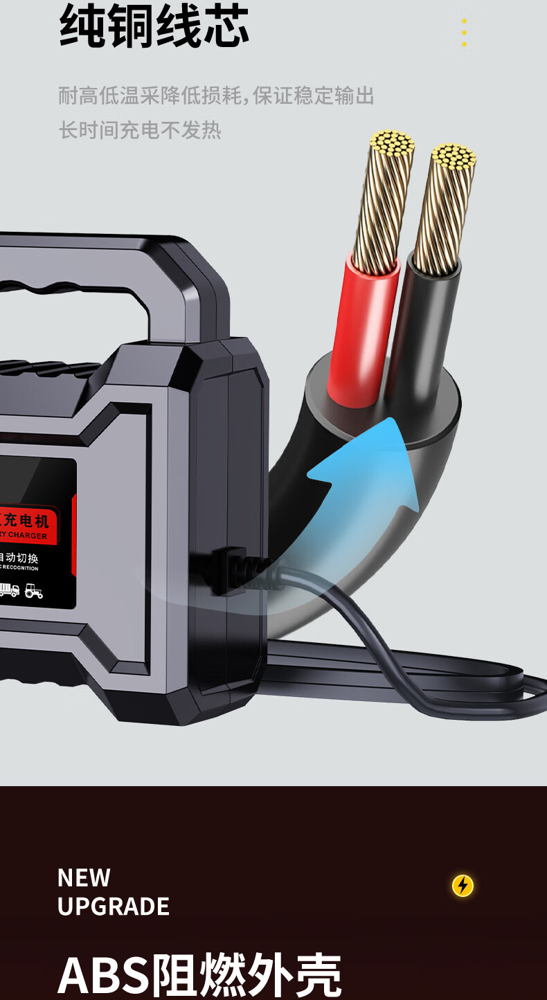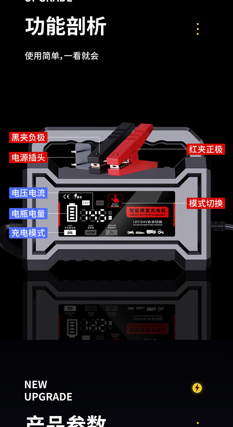 Car battery charger 12v24v universal pure copper fully automatic intelligent repair all-in-one machine fast full charge self-stop LED large screen display 200% improvement pulse repair + rapid activation