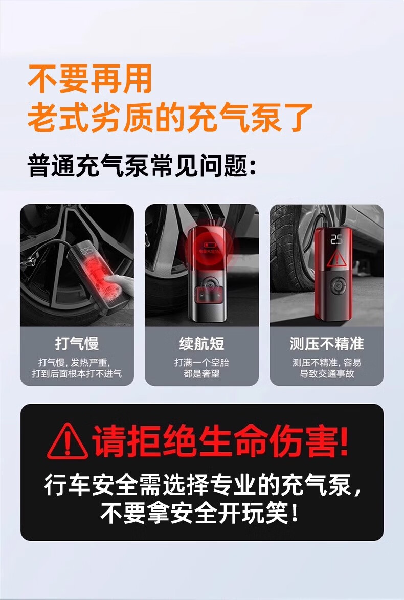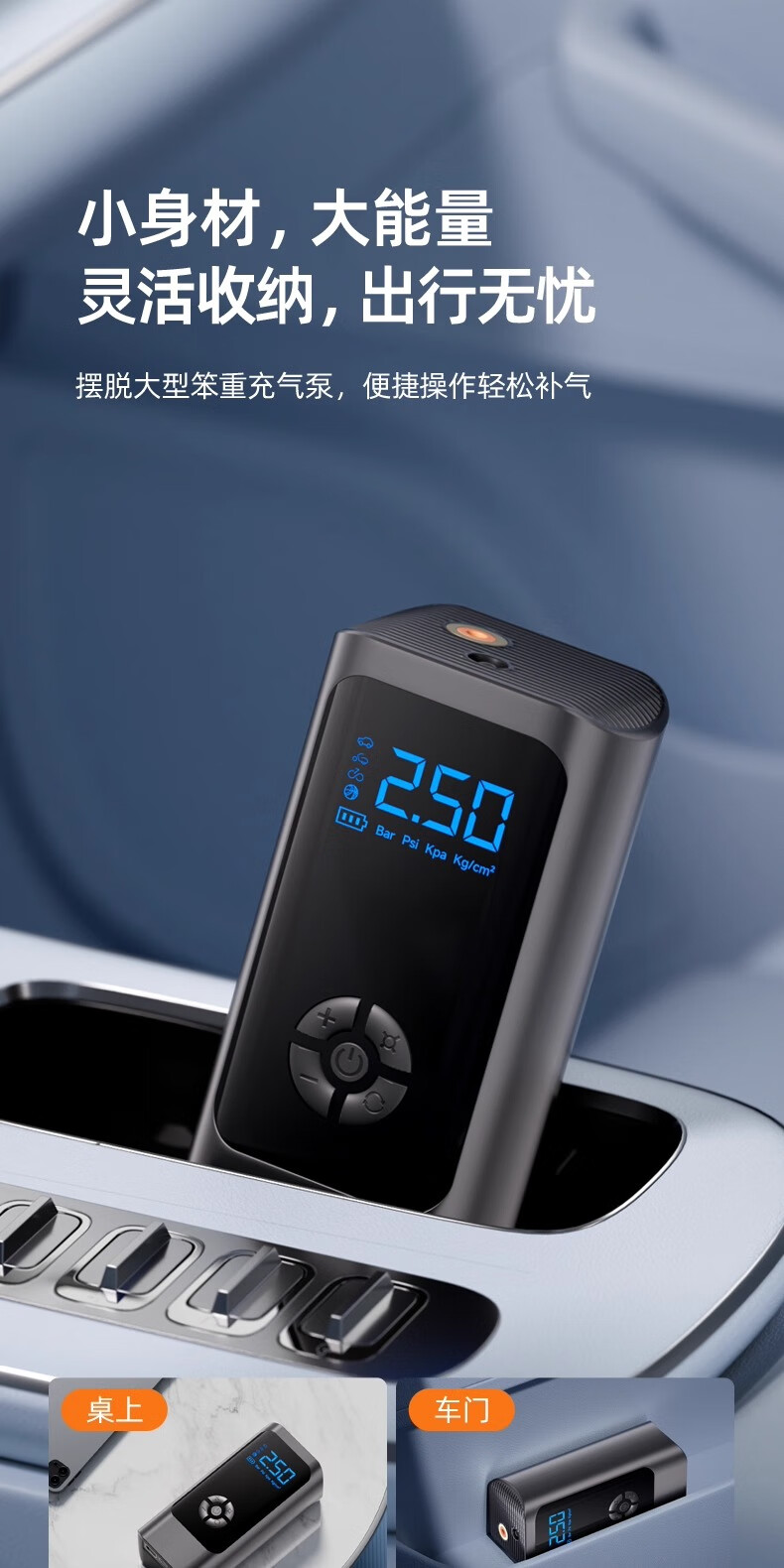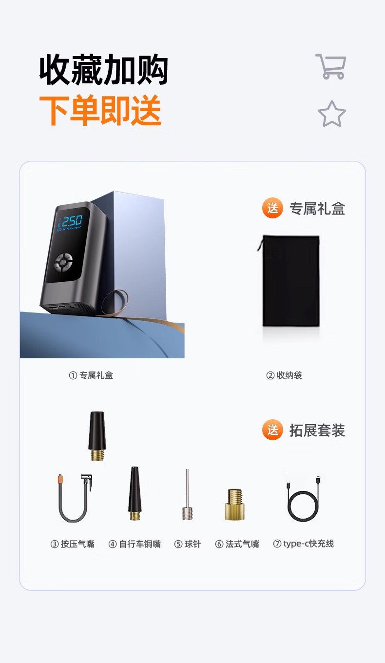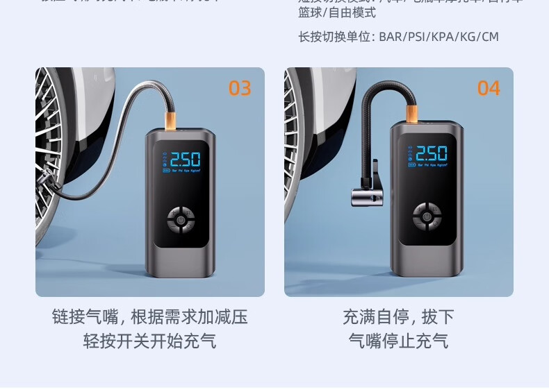 Car air pump, car electric car, tire pressure gauge, portable new air pump, three-use model, wired and wireless dual-use, power bank, preset tire pressure, storage bag
