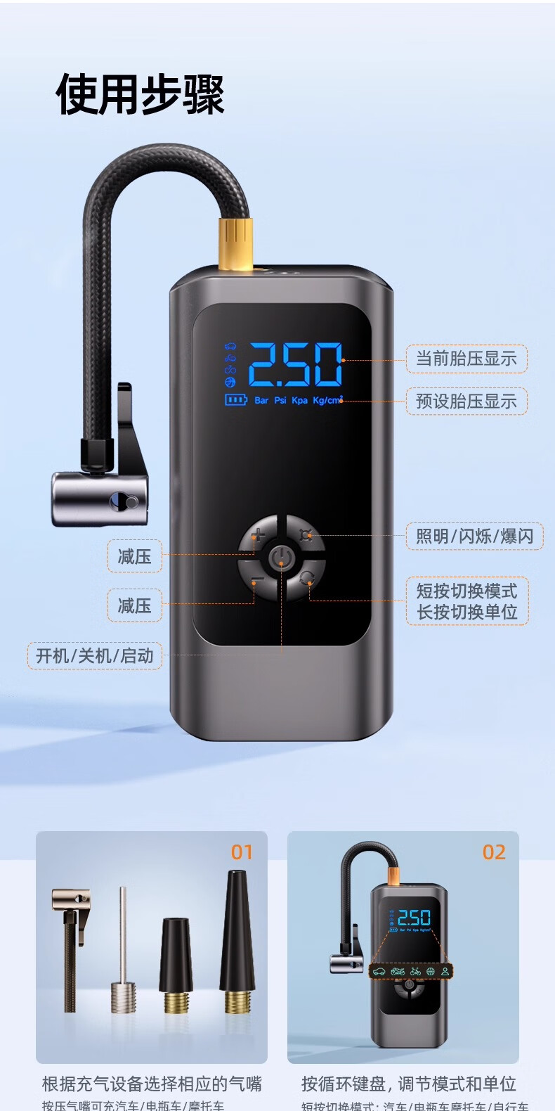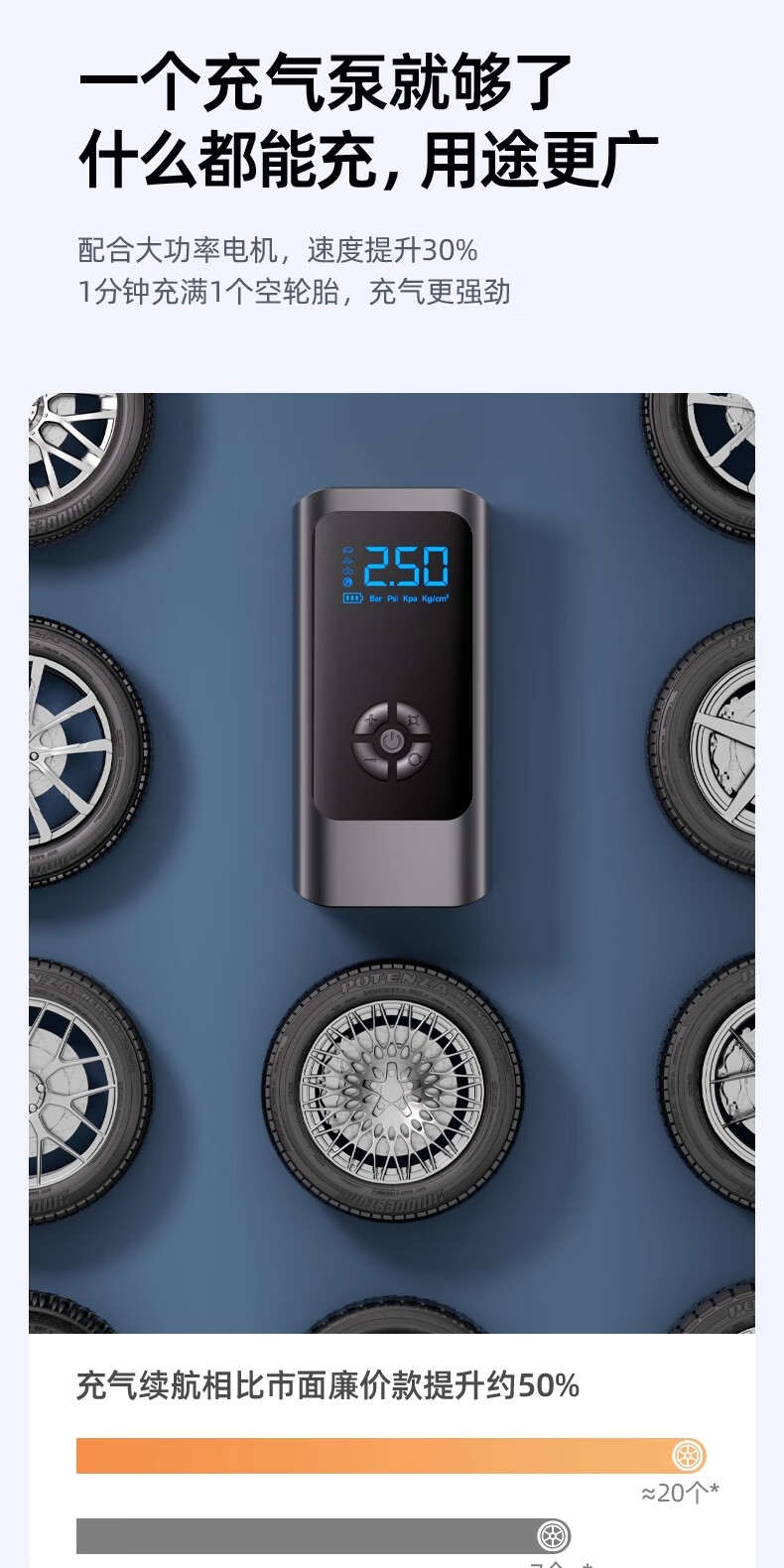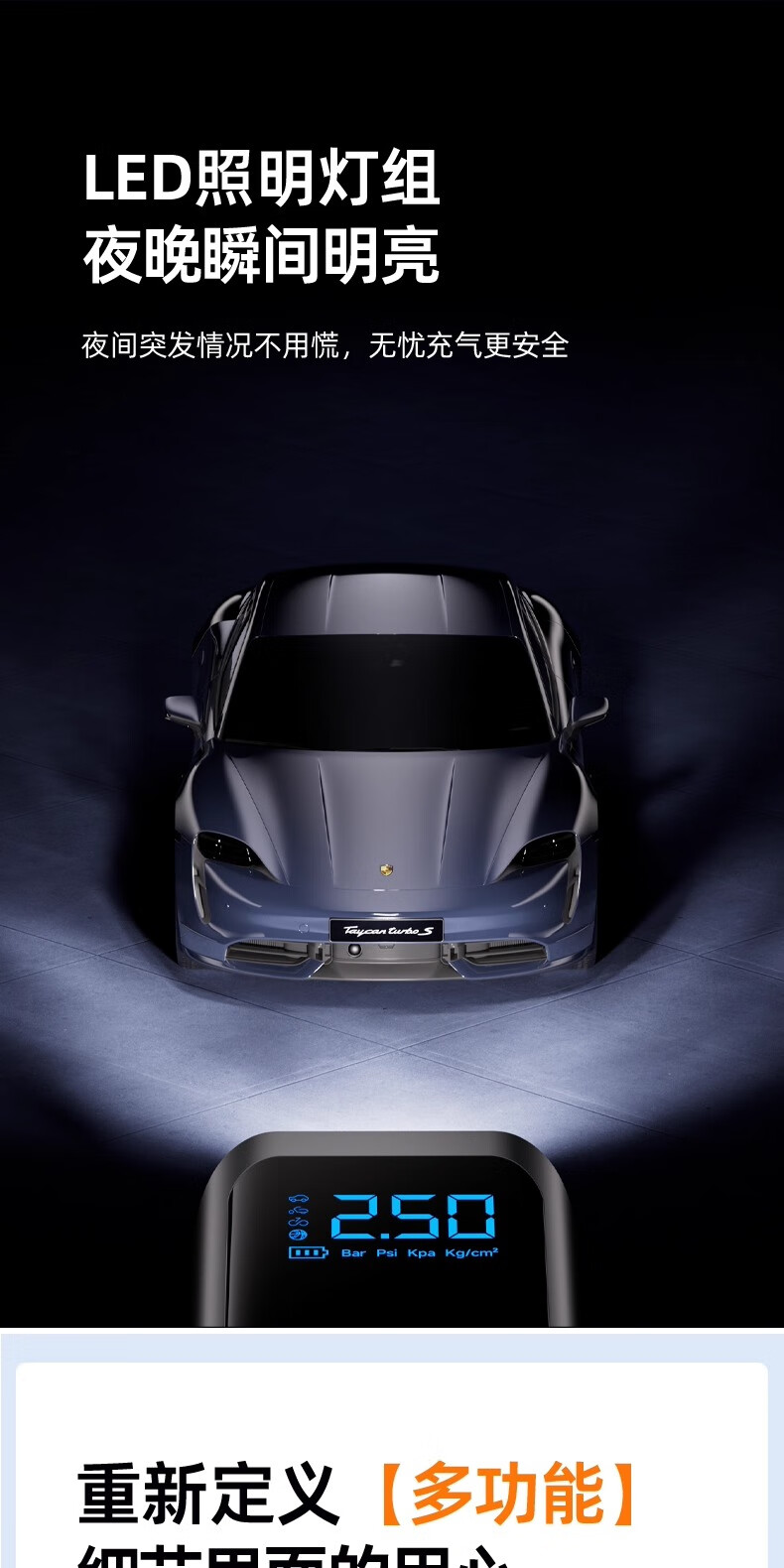 Car air pump, car electric car, tire pressure gauge, portable new air pump, three-use model, wired and wireless dual-use, power bank, preset tire pressure, storage bag