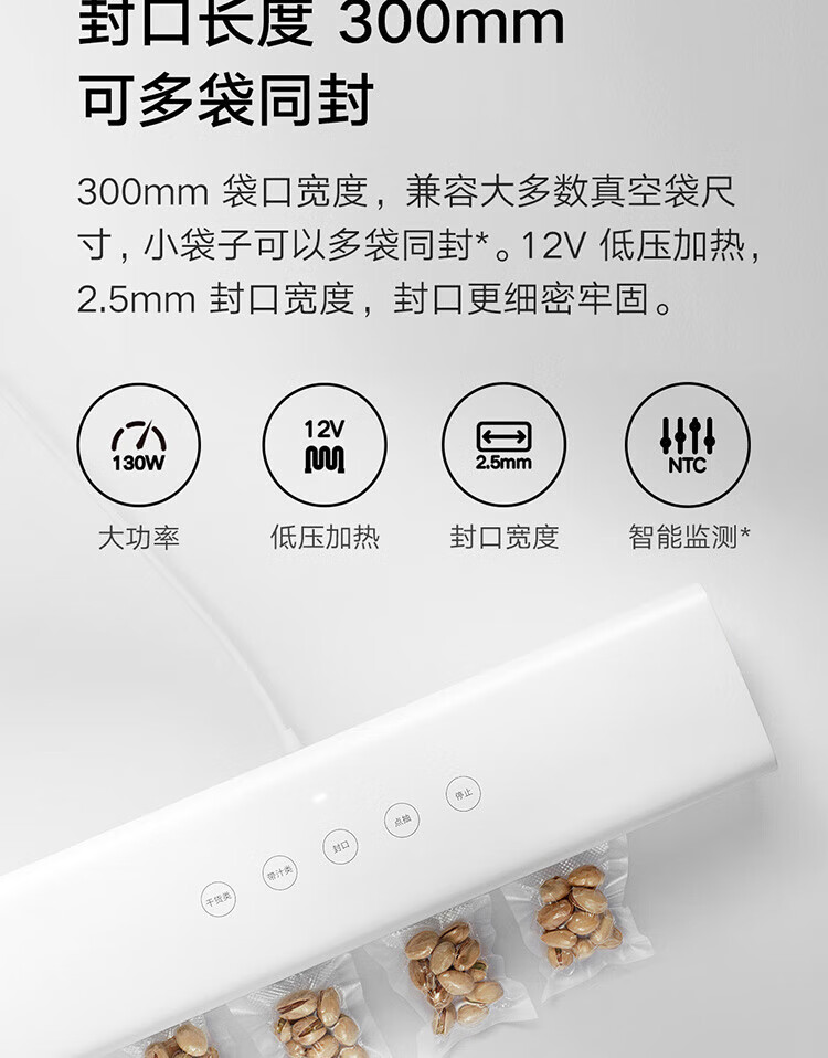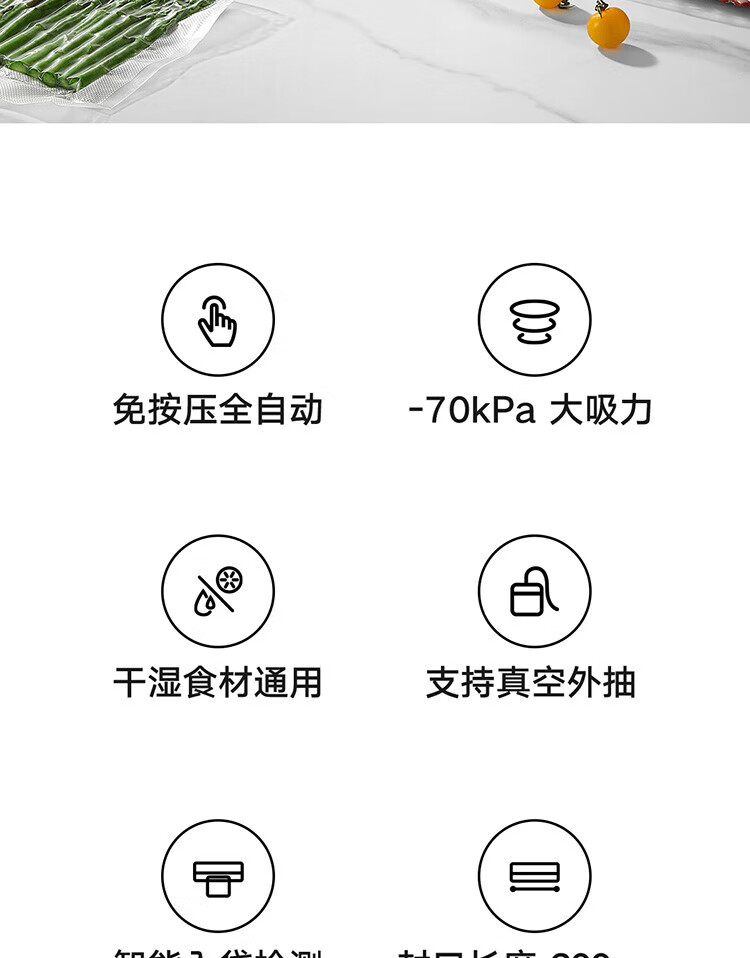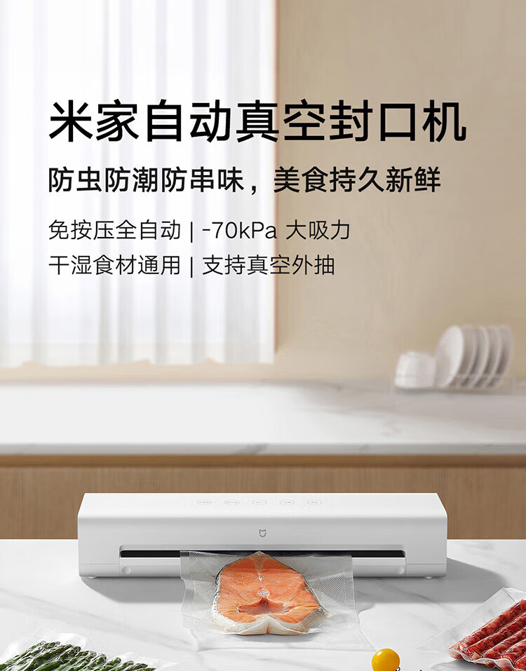 Xiaomi (MI) automatic vacuum sealing machine, pressure-free, fully automatic, universal for dry and wet ingredients, supports external vacuum extraction SN4477