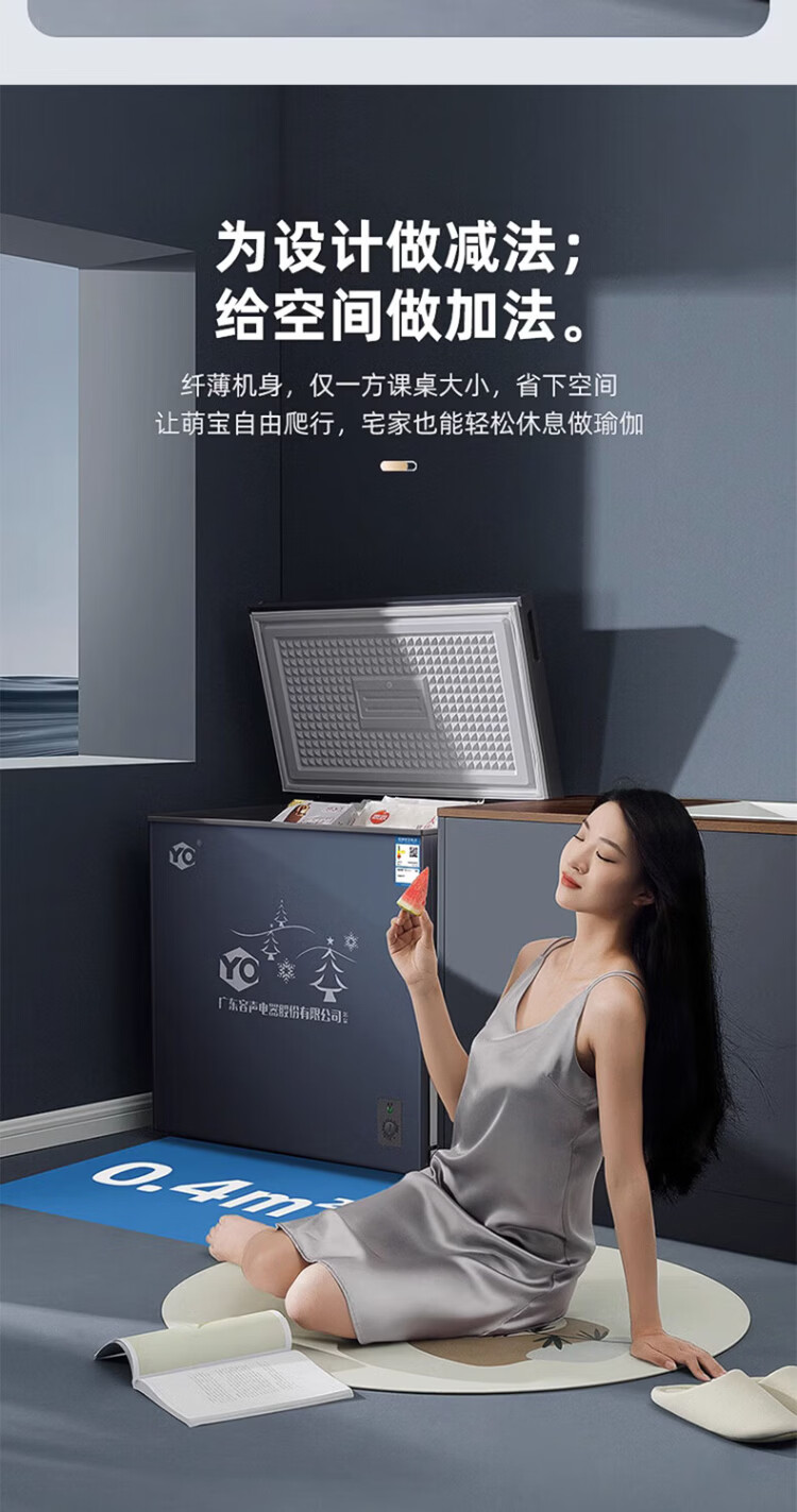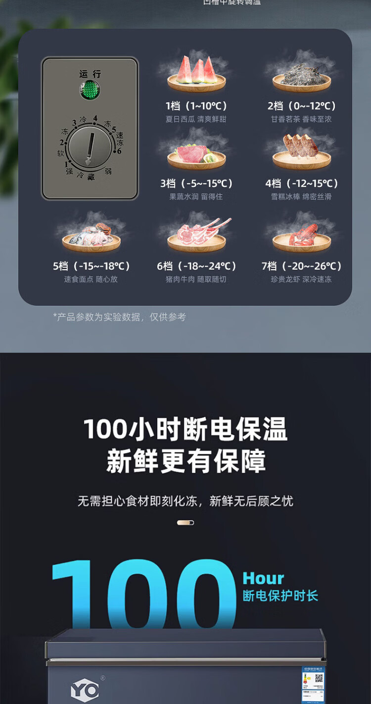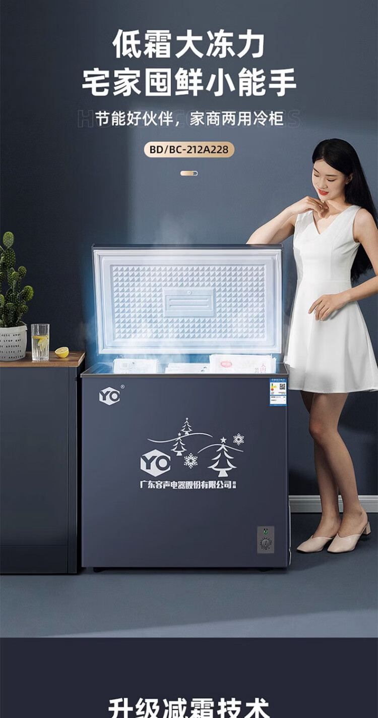 YO Freezer Frequency Conversion Horizontal Small Freezer Household Small Refrigerated Fresh Refrigeration Large Capacity Commercial Energy Saving Frost-Free 228 Upgrade Single Temperature Frost Reduction + Frequency Conversion丨Copper Tube丨First Class Energy Efficiency 160L